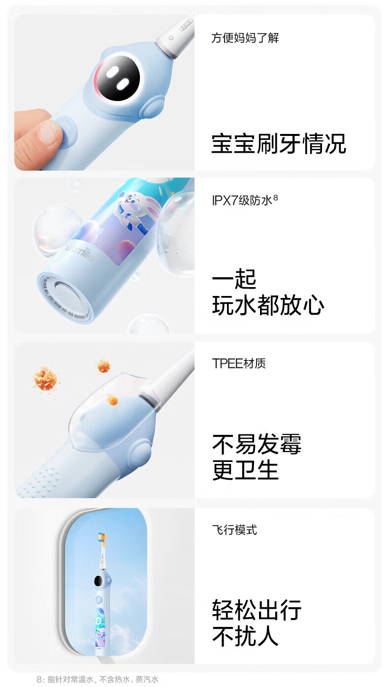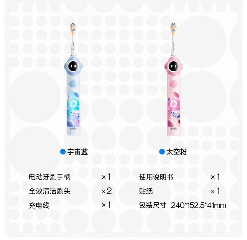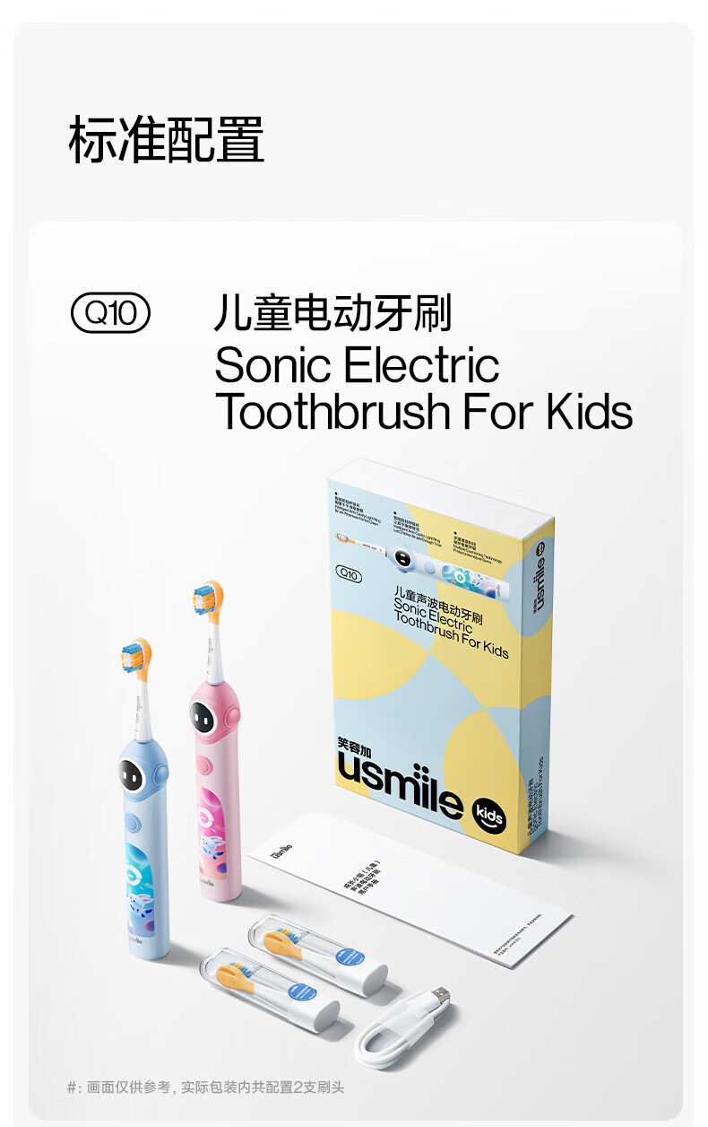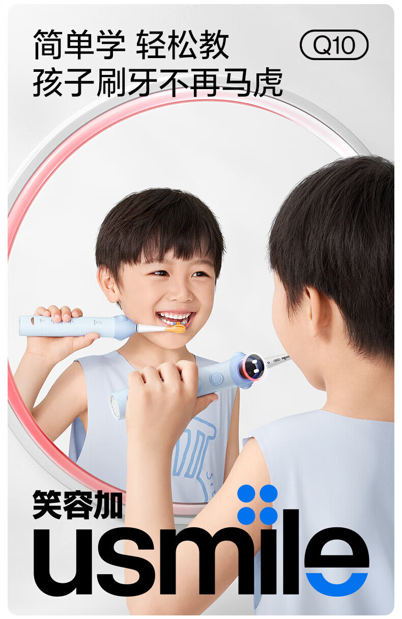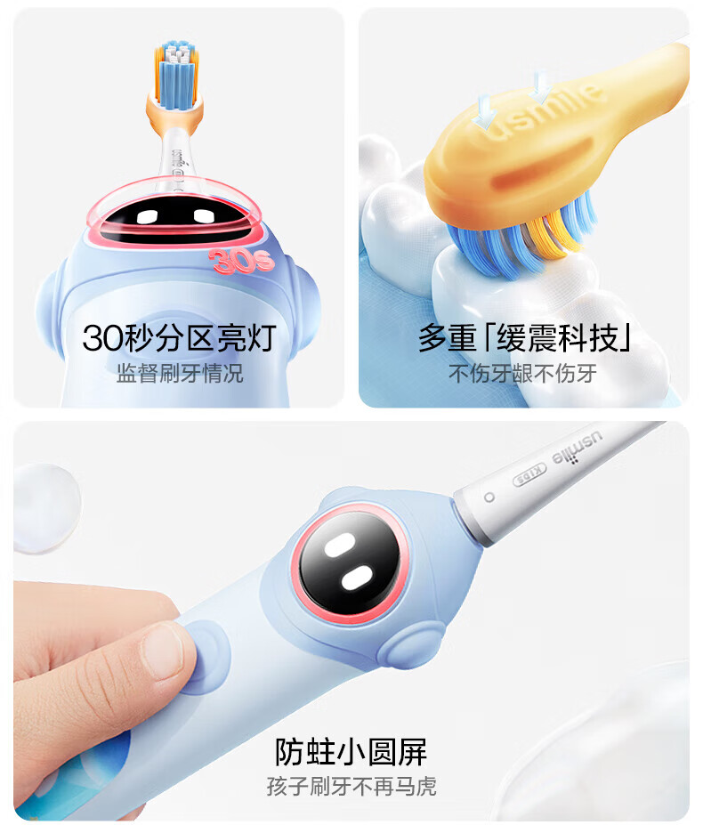Usmile Smile Plus children's electric toothbrush birthday gift smart anti-moth small round screen Q10 3-speed mode 3-12 years old student gift children's gift box 4 brush heads in total Q10 Nebula Powder