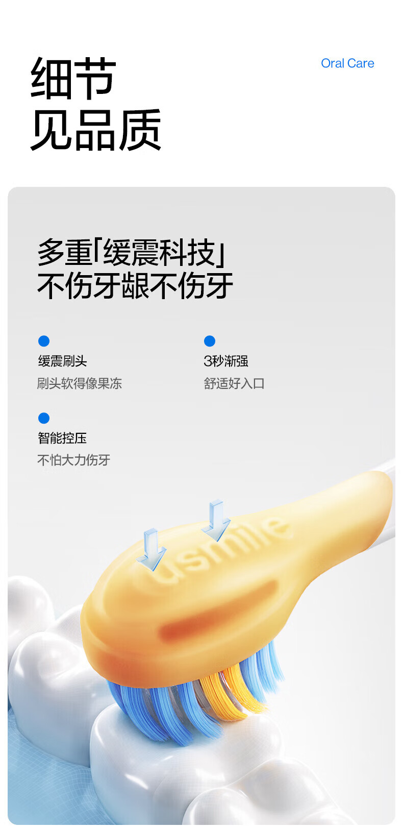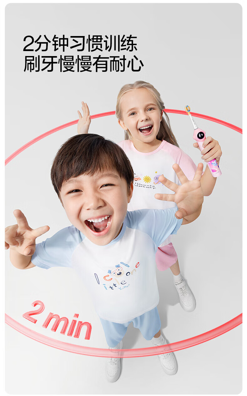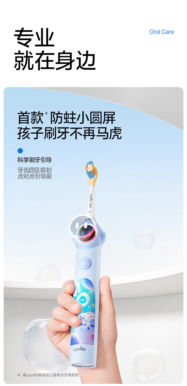 Usmile Smile Plus children's electric toothbrush birthday gift smart anti-moth small round screen Q10 3-speed mode 3-12 years old student gift children's gift box 4 brush heads in total Q10 Nebula Powder
