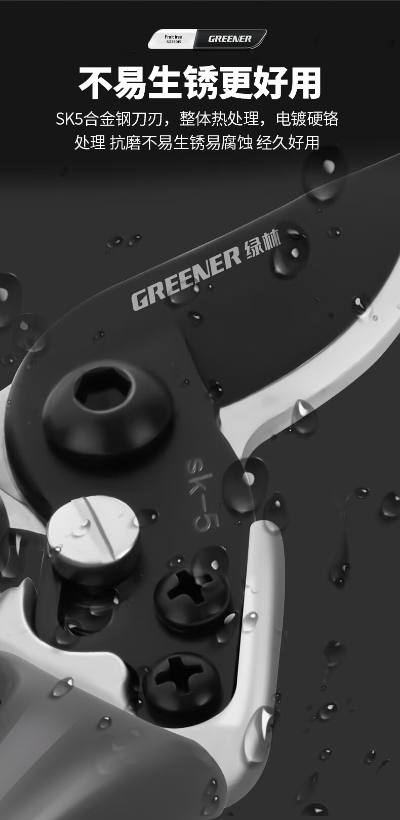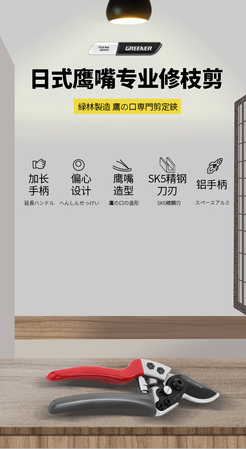 Green Forest Japan imported SK5 steel fruit tree gardening pruning shears, special scissors for cutting branches, flower shears, floral branch scissors, professional style SK5 steel + waist box_maintenance oil_elastic