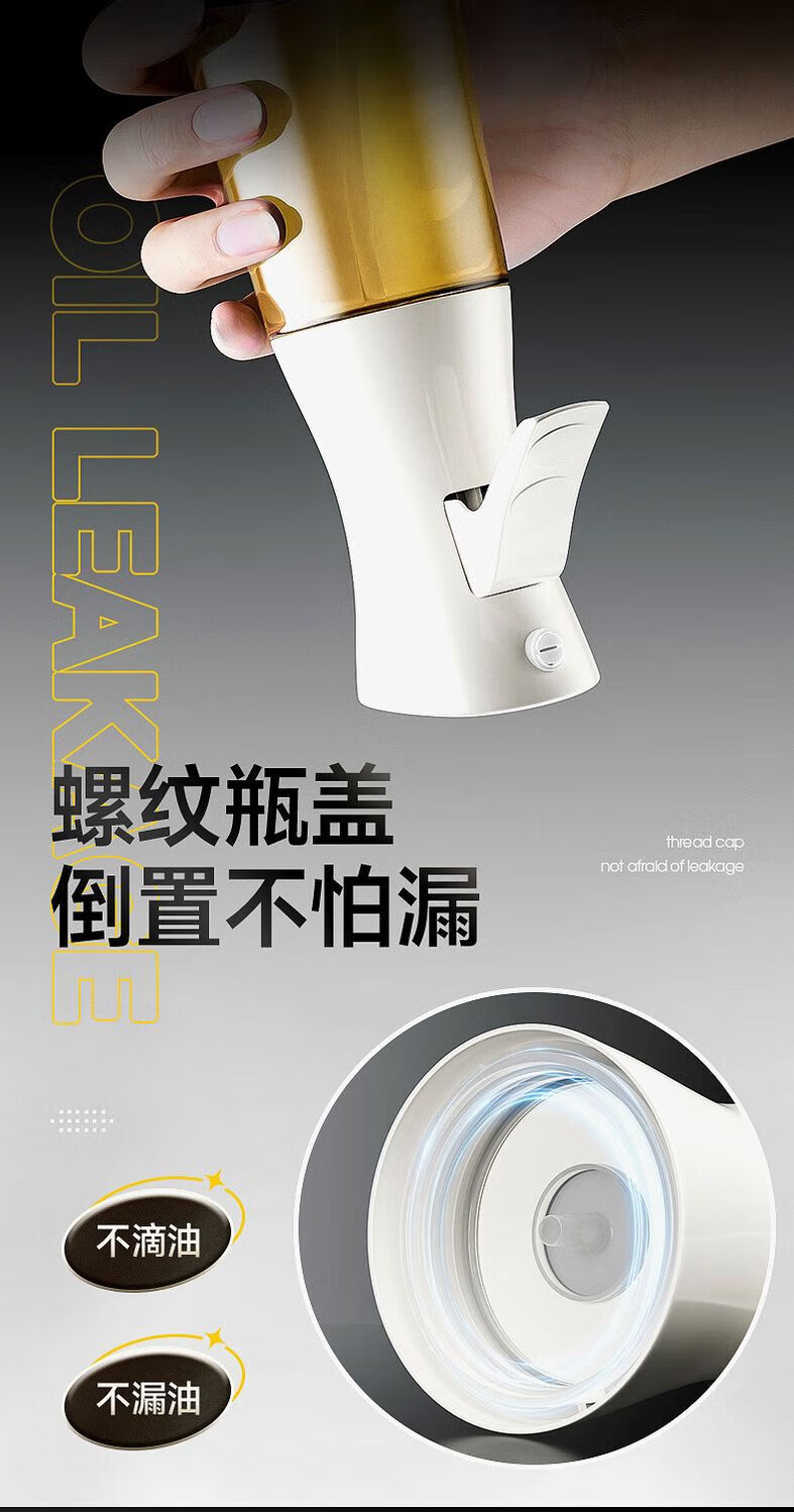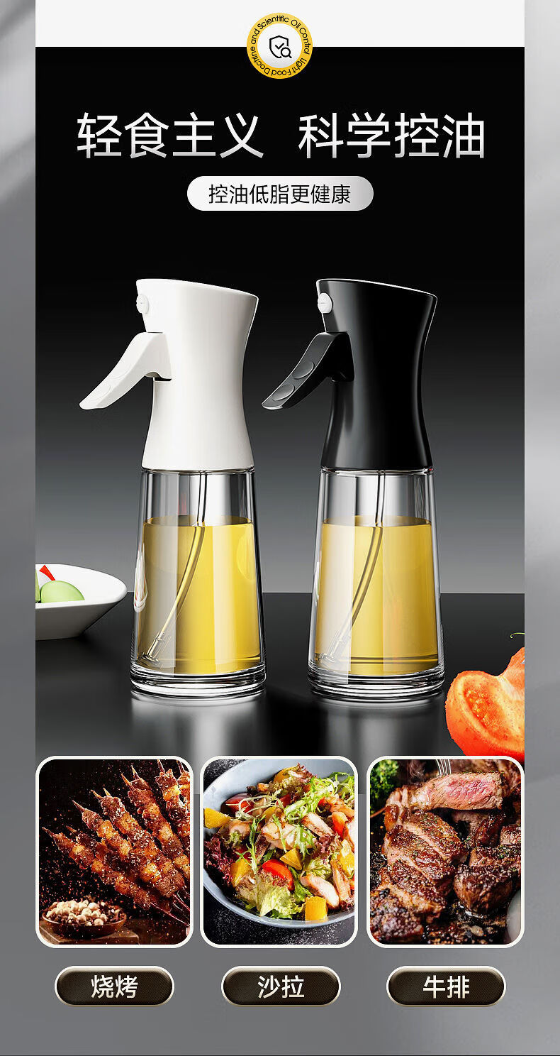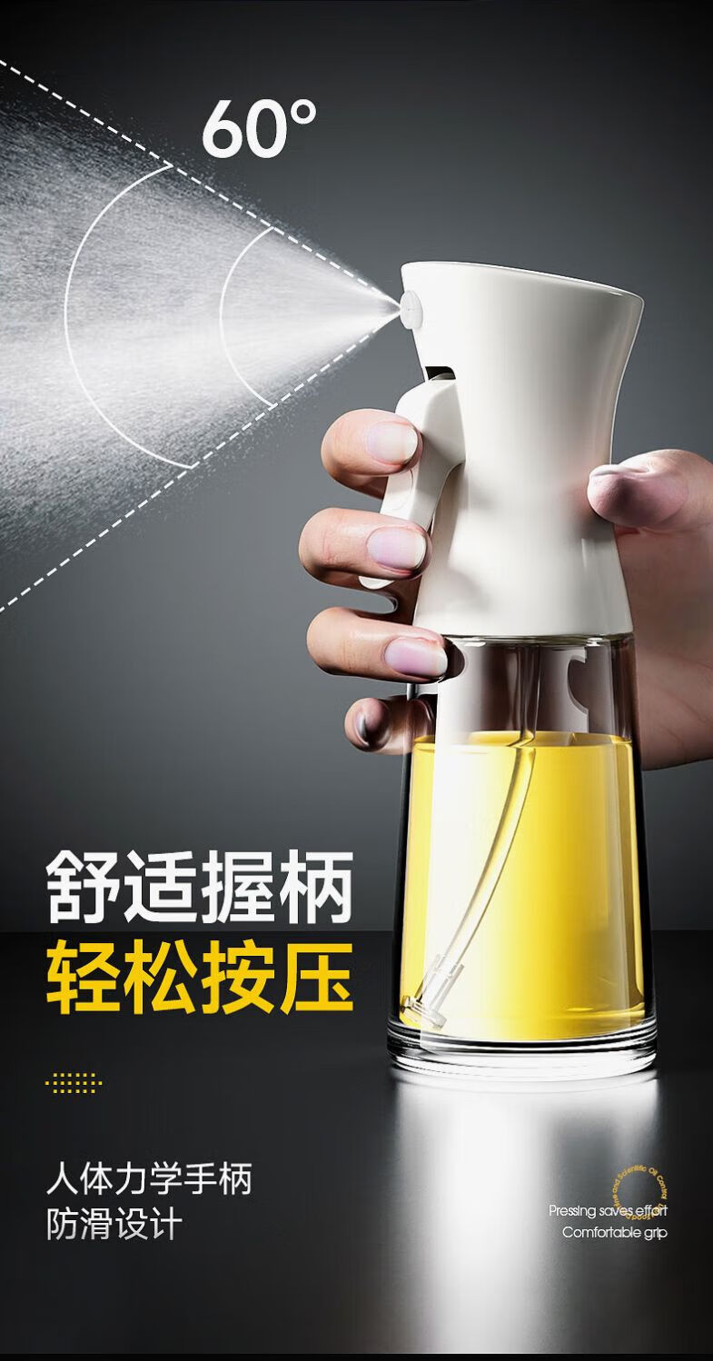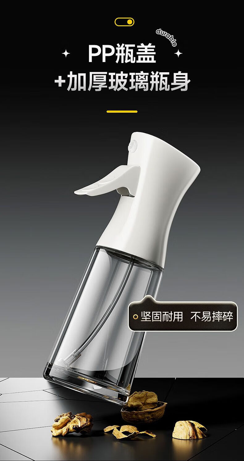 Spray bottle glass household kitchen air fryer spray bottle spray thickened spray bottle oil tank without oil mist white precise oil control 300ml