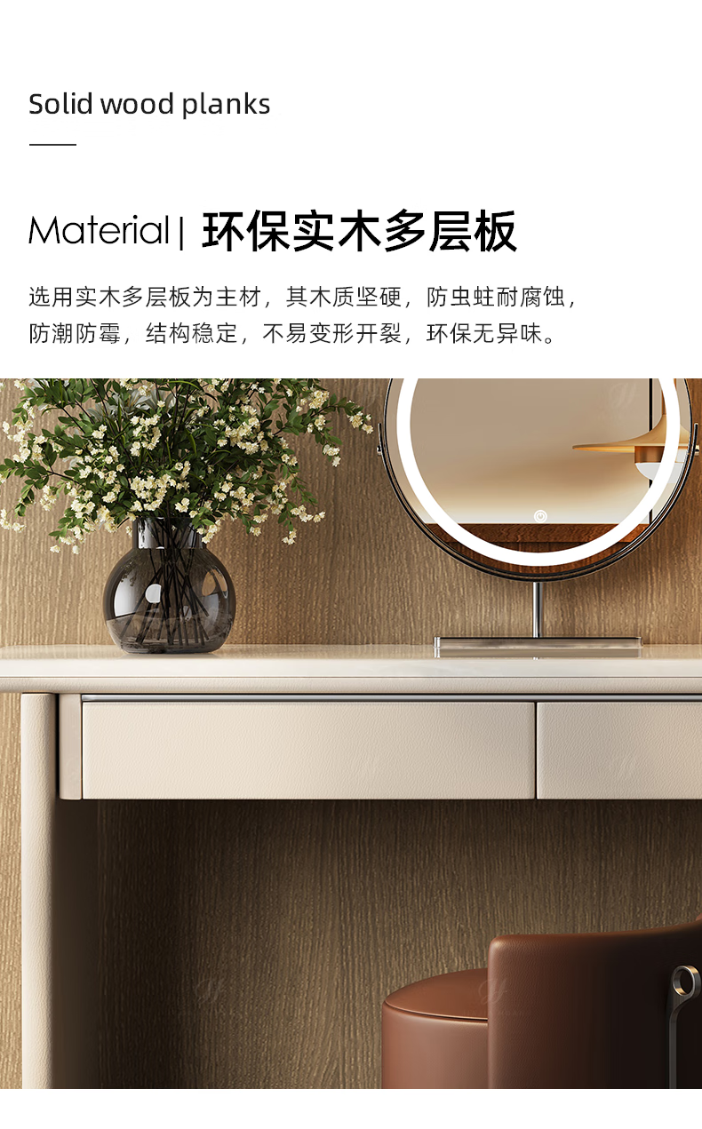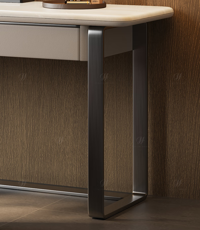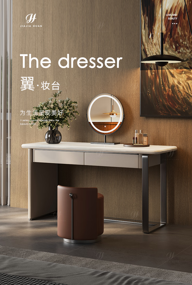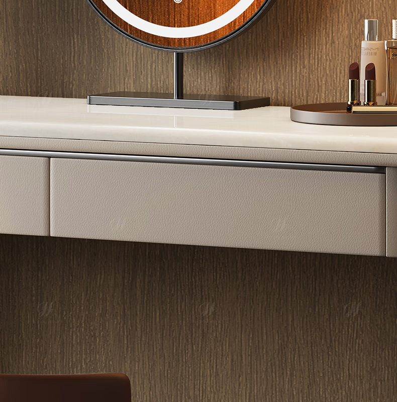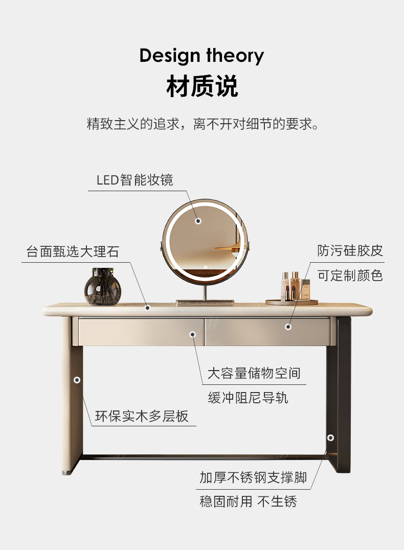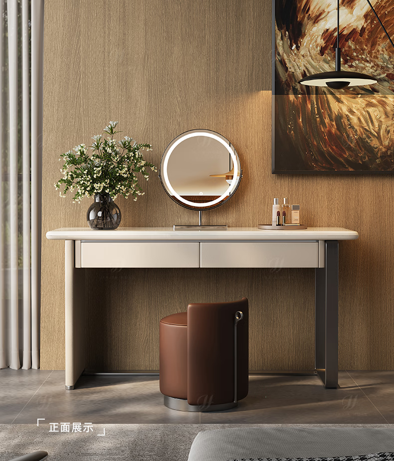 Jiajiahuan 2025 new Italian minimalist master bedroom dressing table with mirror marble bedroom high-end light luxury dressing table 0.8 meter dressing table + stool + mirror / Kari ice jade / gray titanium