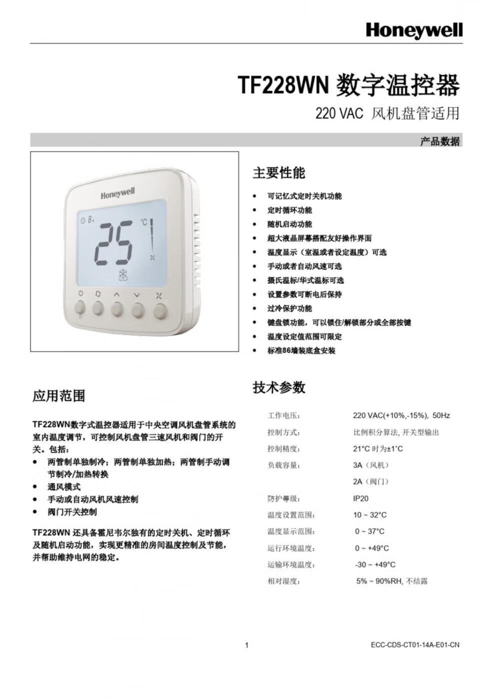 Honeywell/TF428WN/S/TF243WN/M/U networked air conditioner digital display thermostat panel WL8B2WB/B (replaces TF228WN)