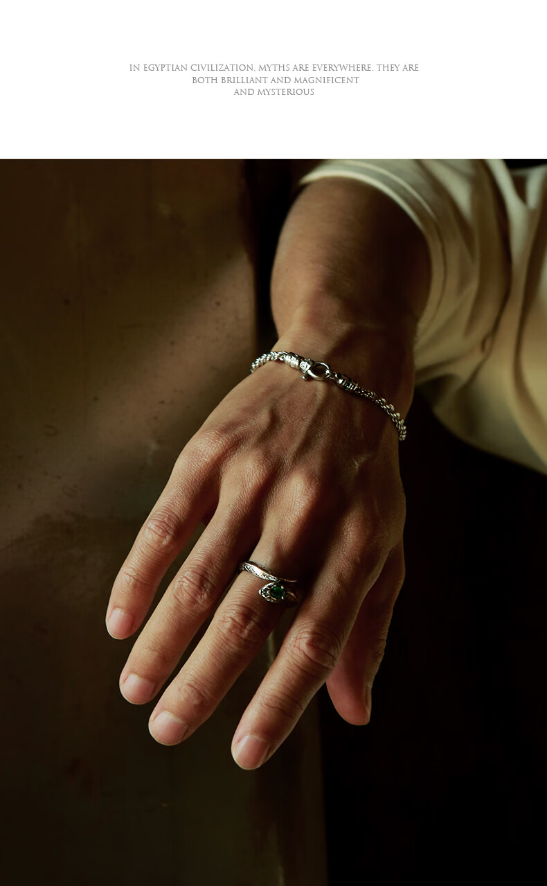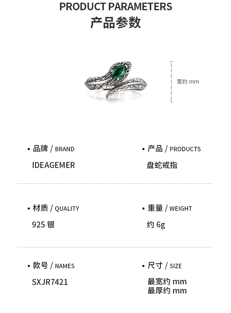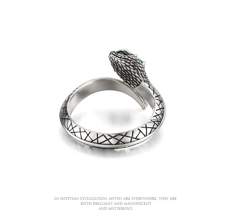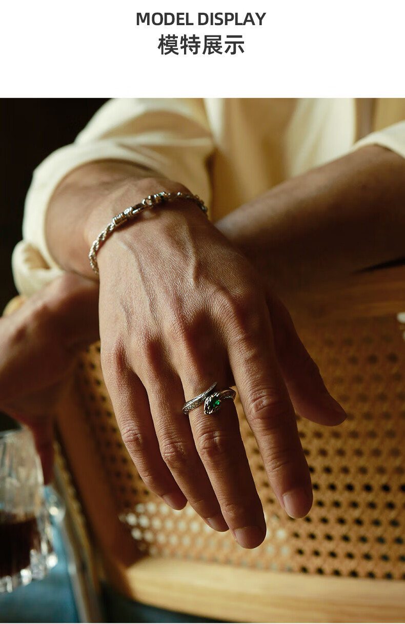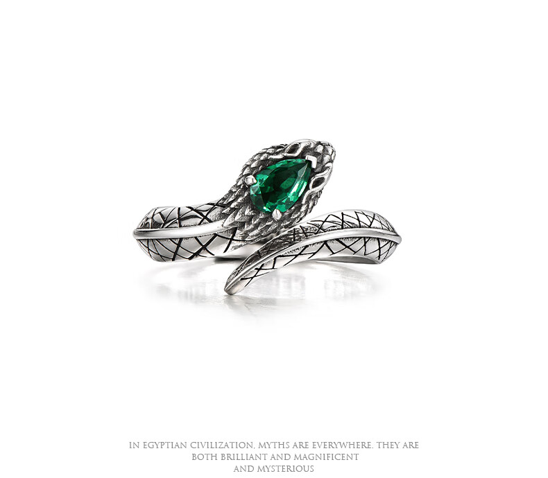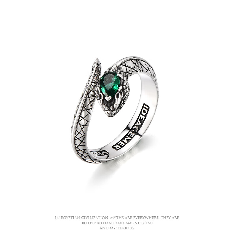 IDEAGEMERS 925 silver emerald snake ring for men and women, high-end niche fashion ring for couples, single layer emerald snake ring, No. 20