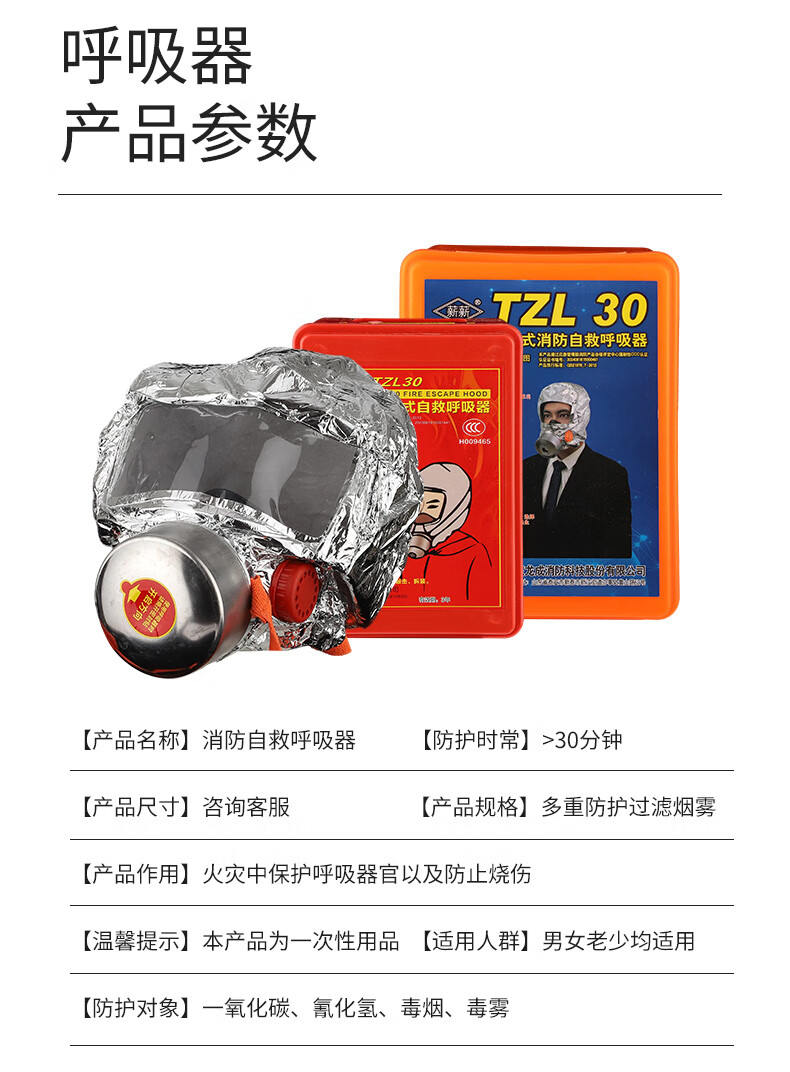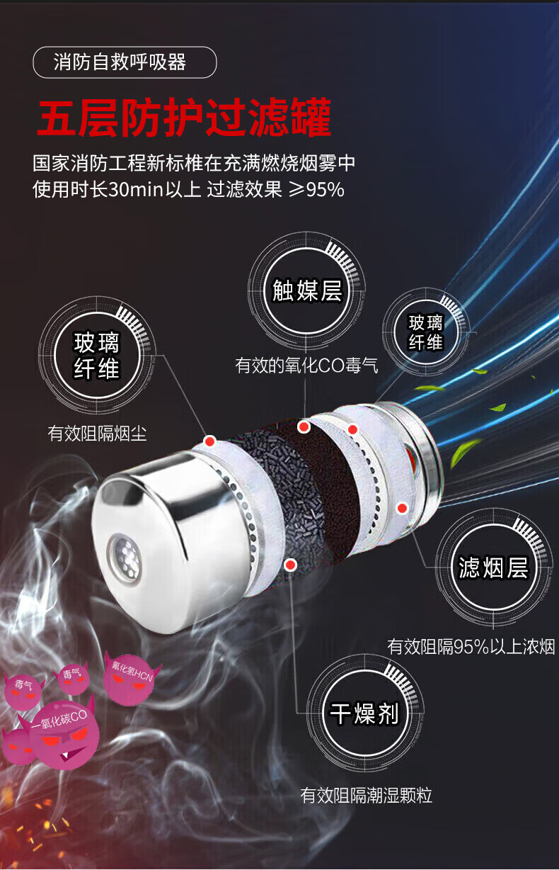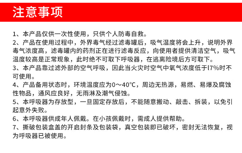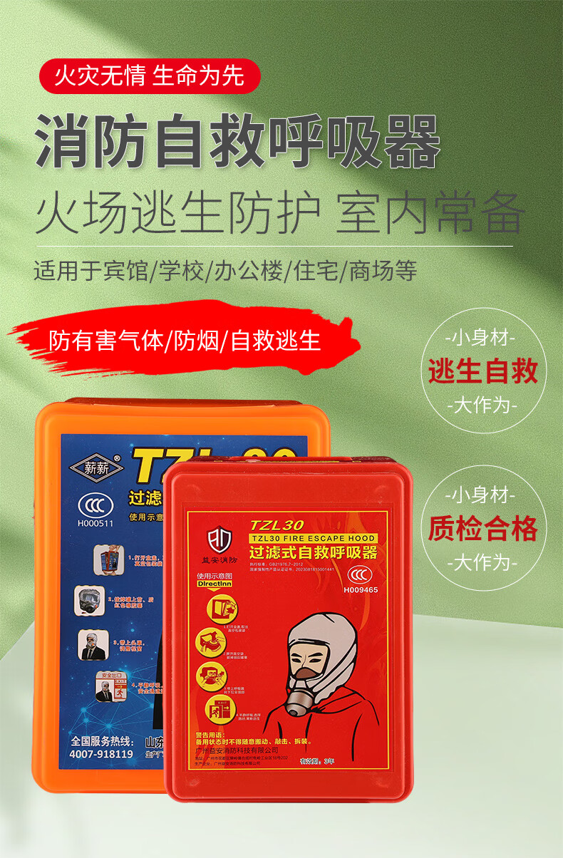 Self-rescuing respirator set hotel rental room smoke and fire mask fire escape fire gas mask