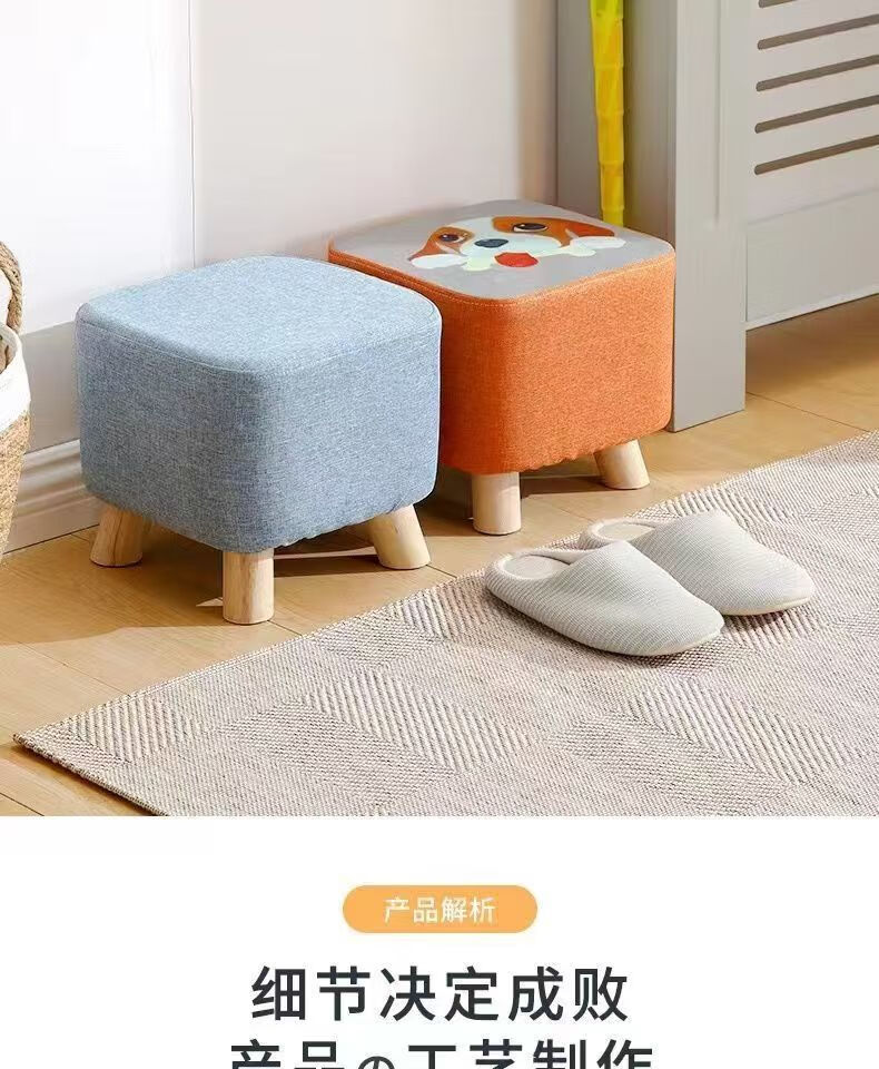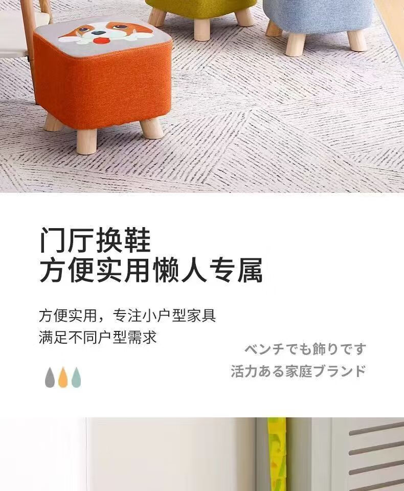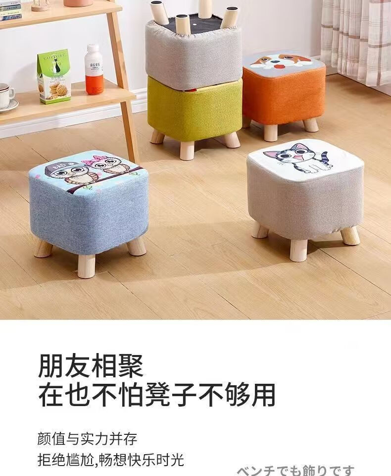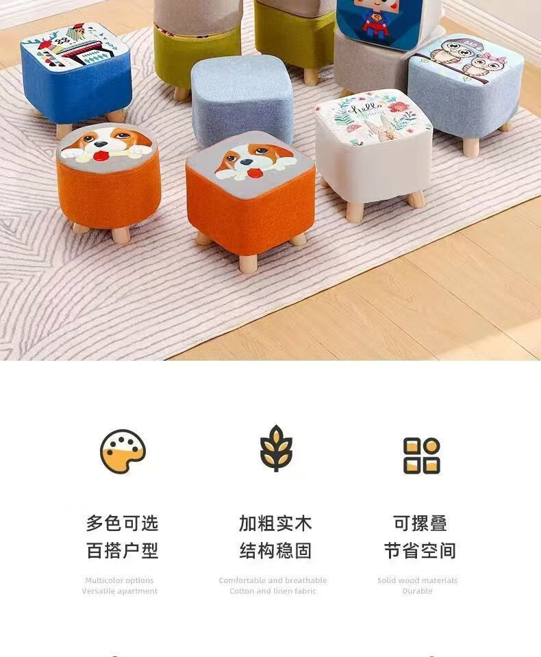 Children's Cartoon Stool Solid Wood Square Stool Changing Shoes Living Room Porch Living Room Coffee Table Low Stool Small Stool Entry Bedside Stool Random Color