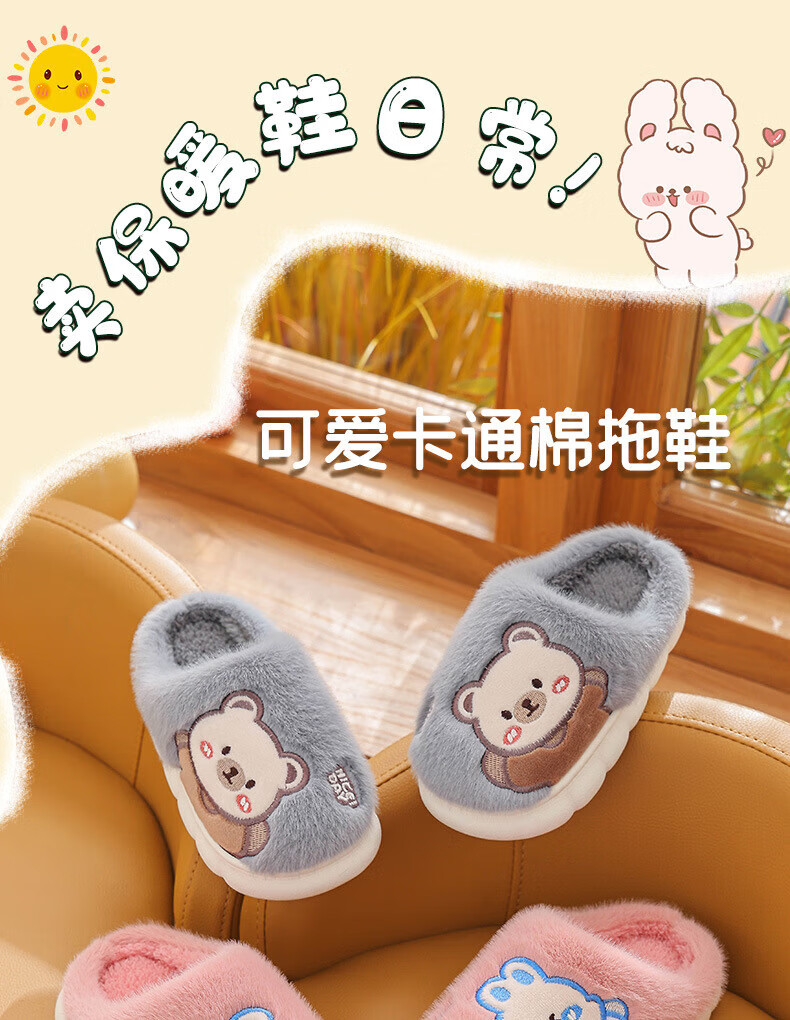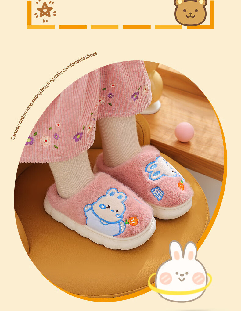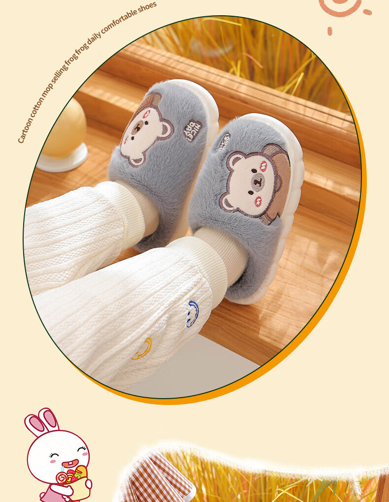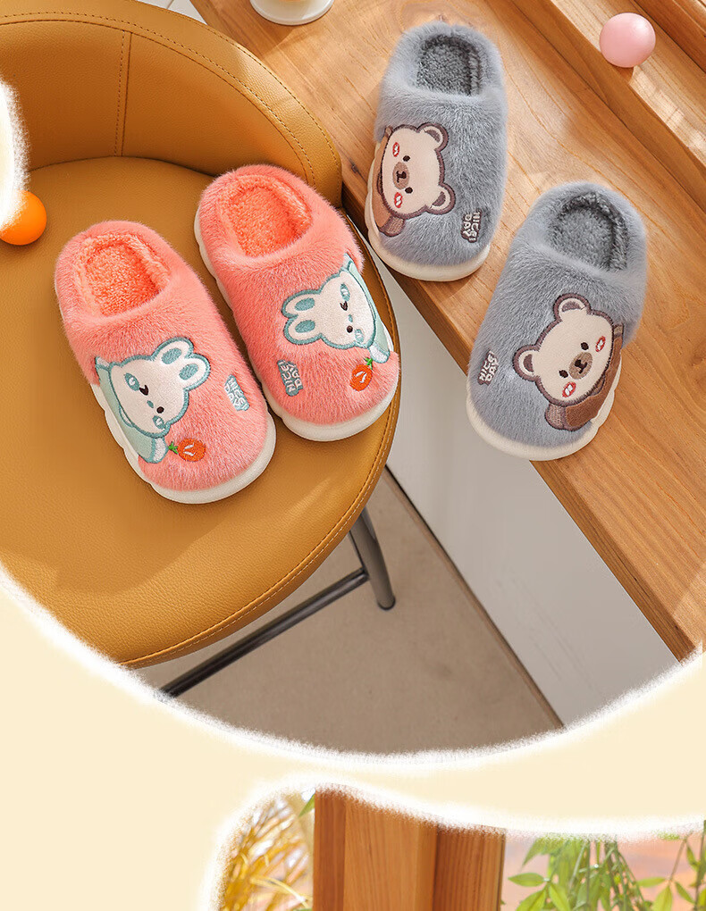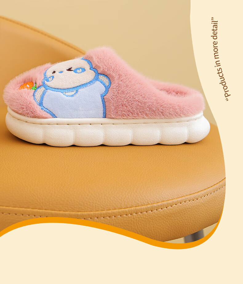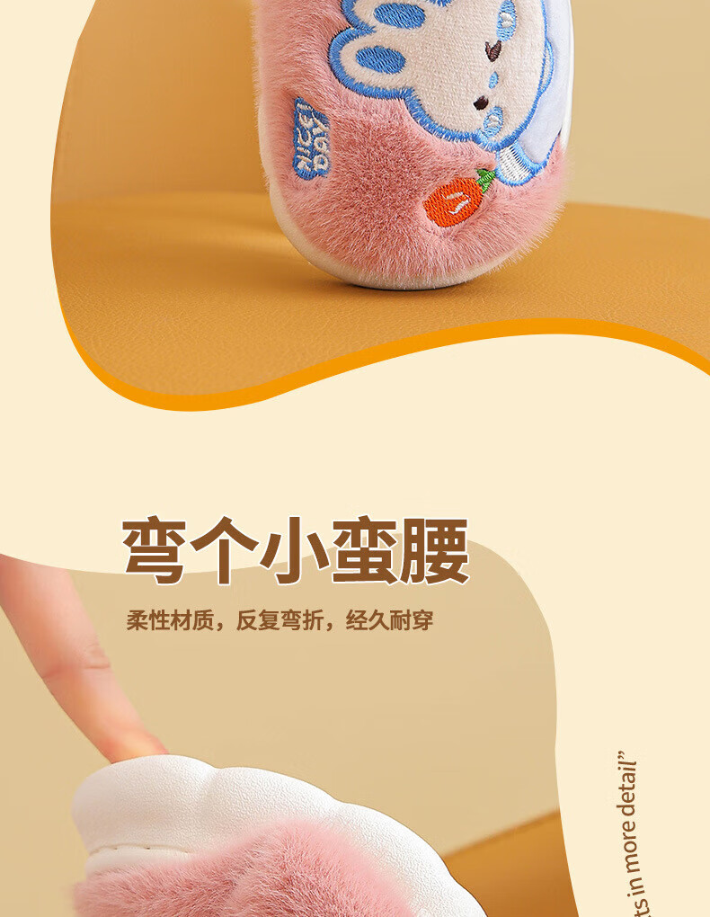 Ormenwe children's cotton slippers for boys and girls winter indoor cartoon non-slip home shoes for middle and large children YL-LAP3 Rabbit Pink 28 (28-29)