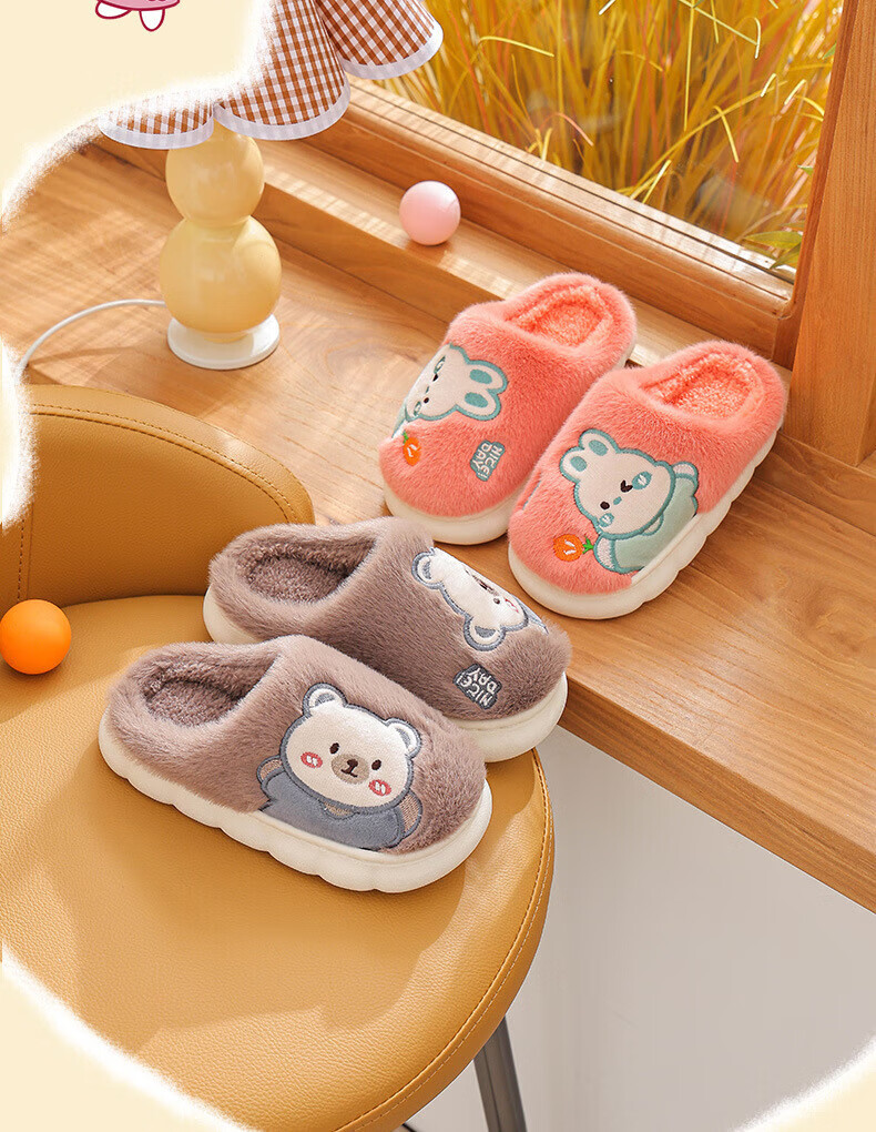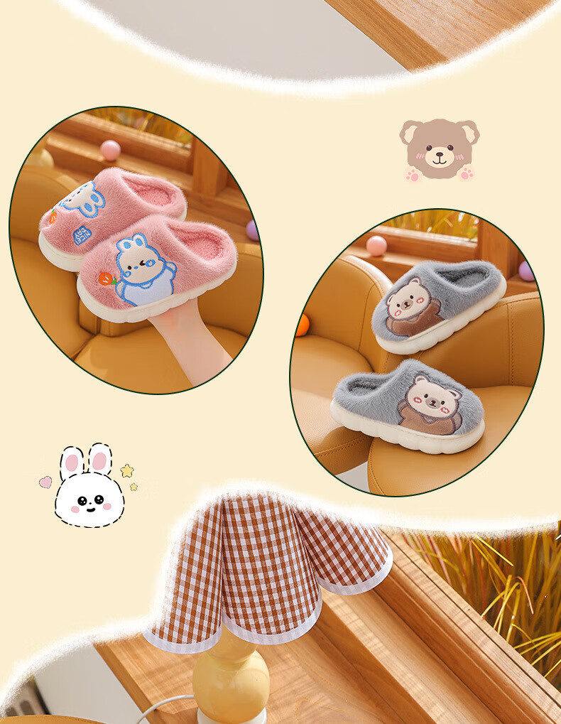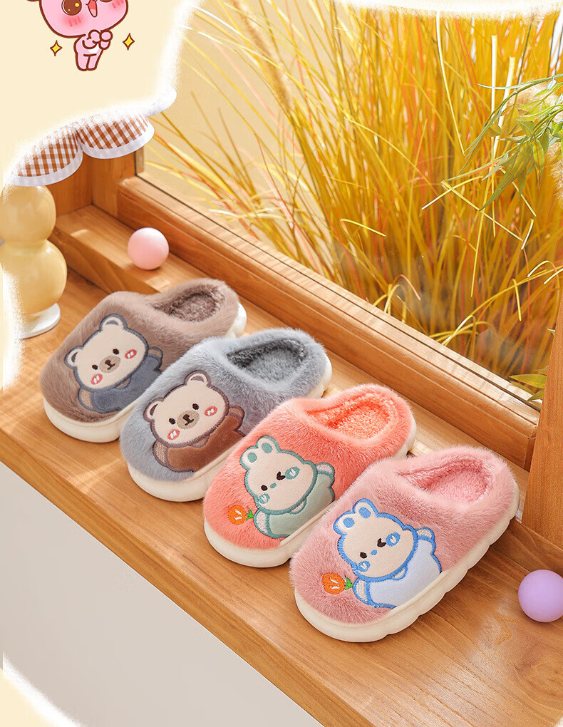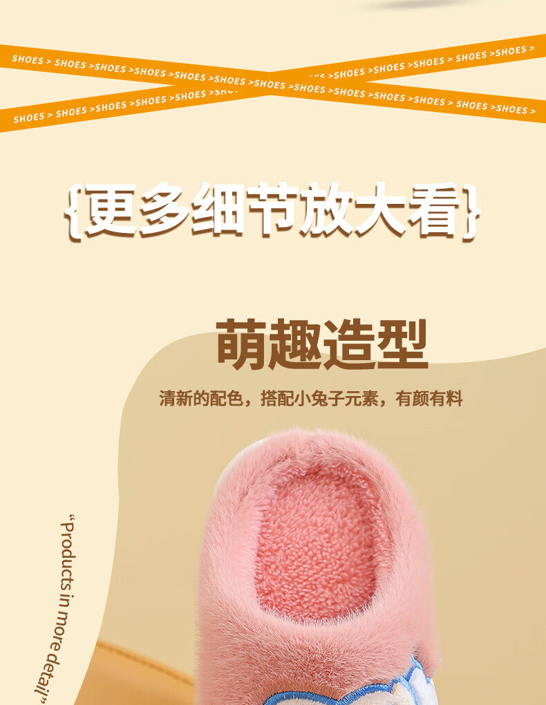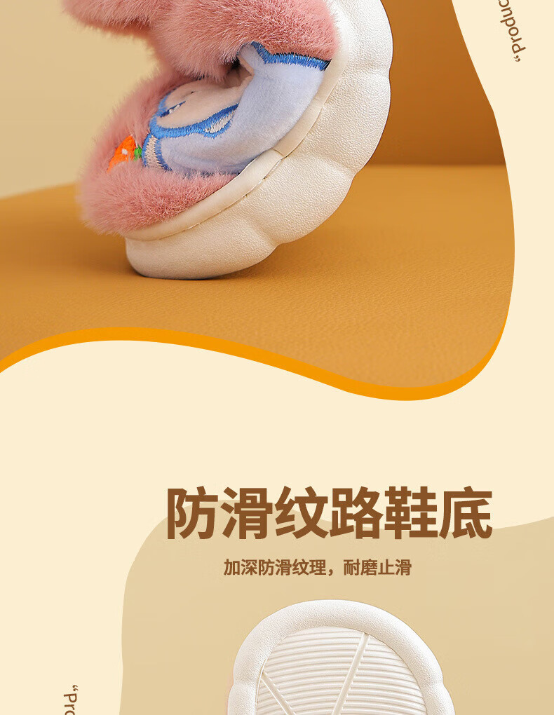 Ormenwe children's cotton slippers for boys and girls winter indoor cartoon non-slip home shoes for middle and large children YL-LAP3 Rabbit Pink 28 (28-29)