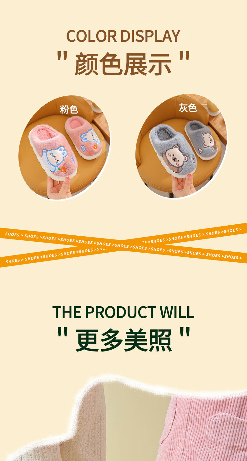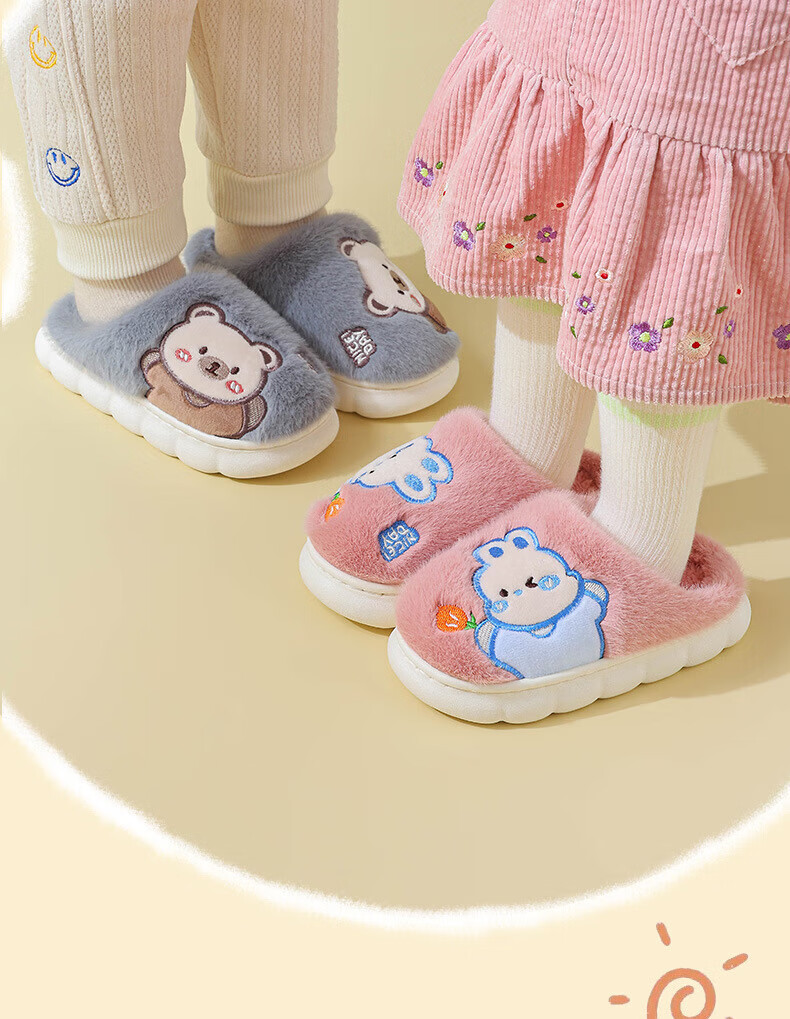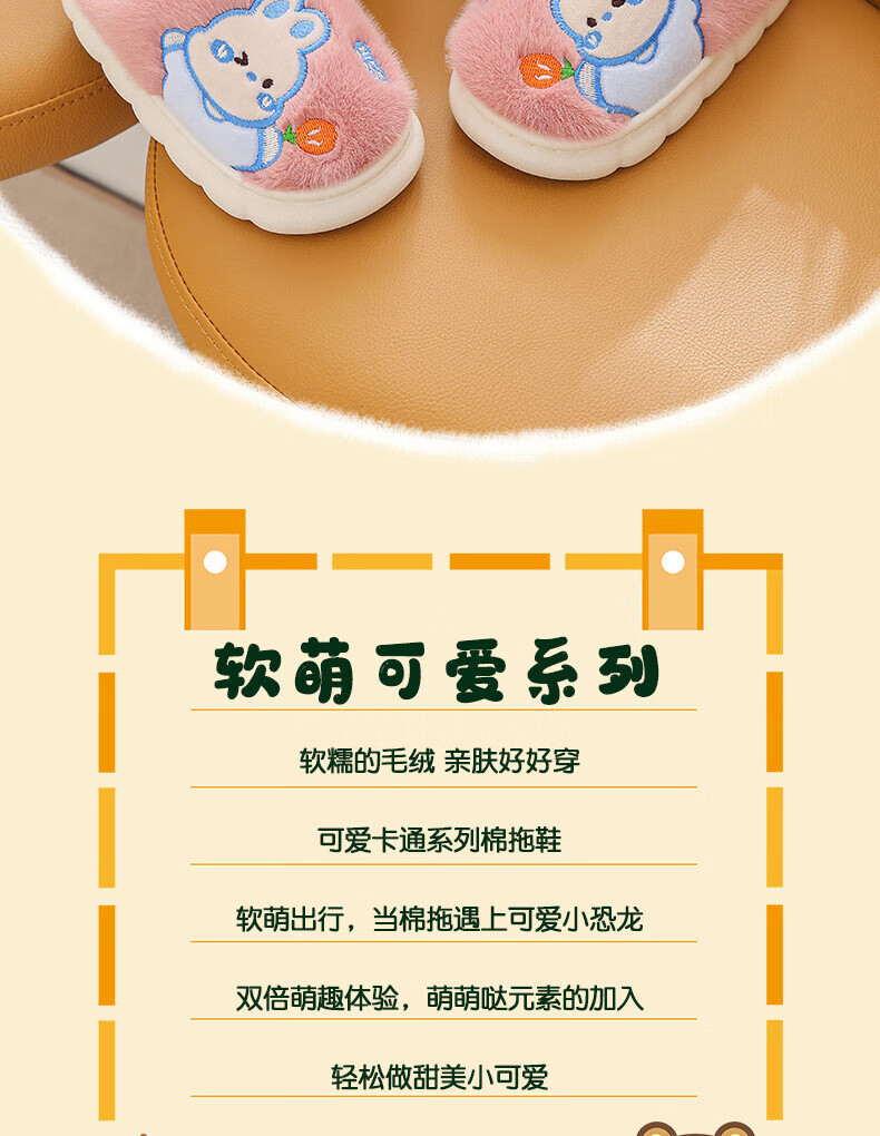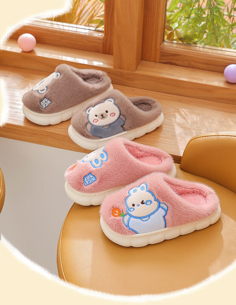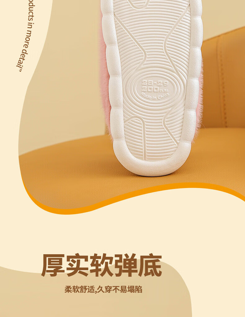 Ormenwe children's cotton slippers for boys and girls winter indoor cartoon non-slip home shoes for middle and large children YL-LAP3 Rabbit Pink 28 (28-29)