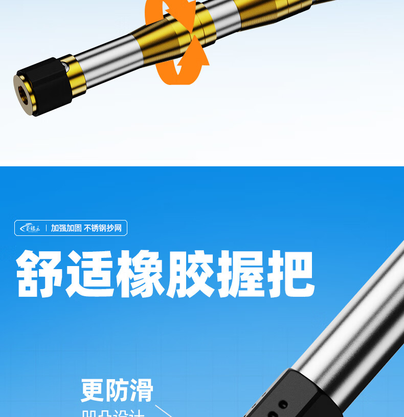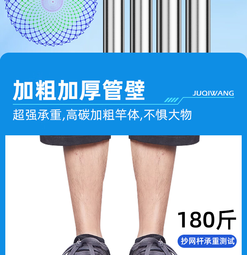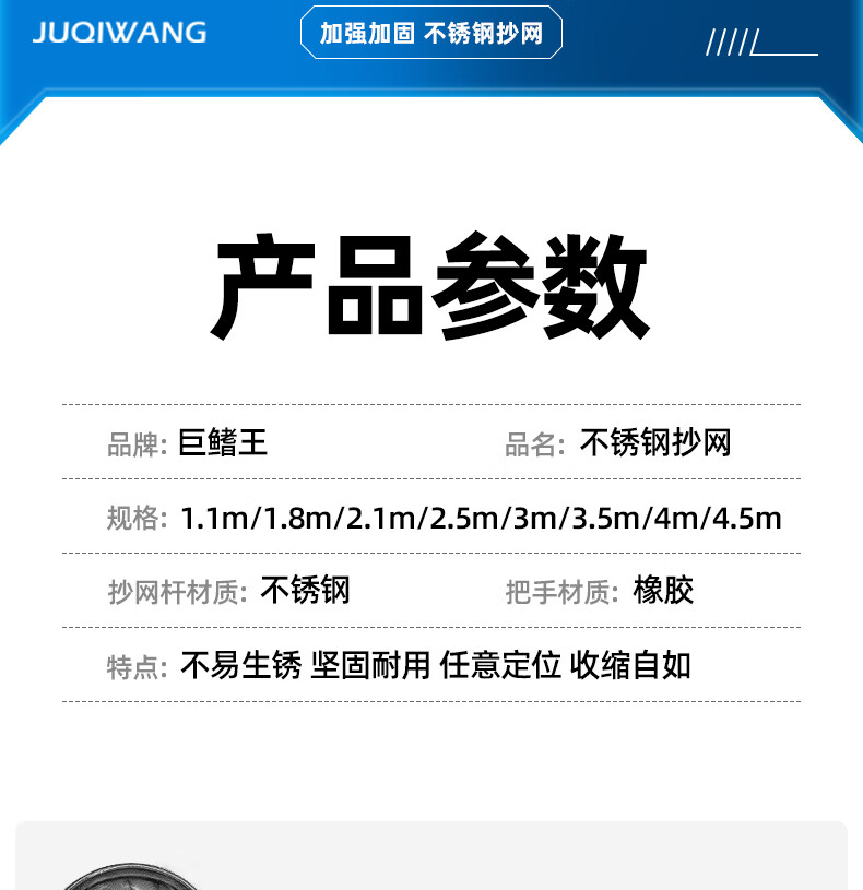 New stainless steel fishing net telescopic pole fishing net folding net head anti-hanging thick super hard large object fishing gear ultra thick super solid super hard fishing net large and small eye double net 3m