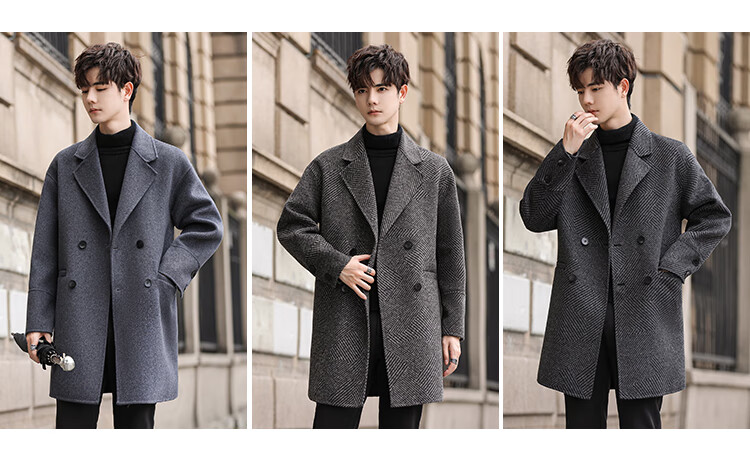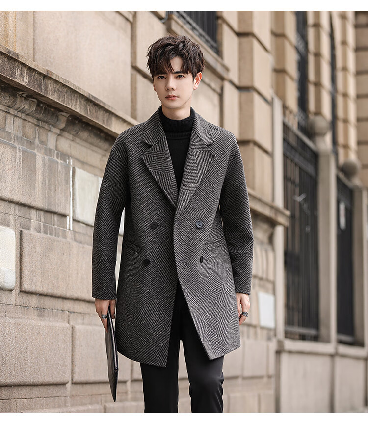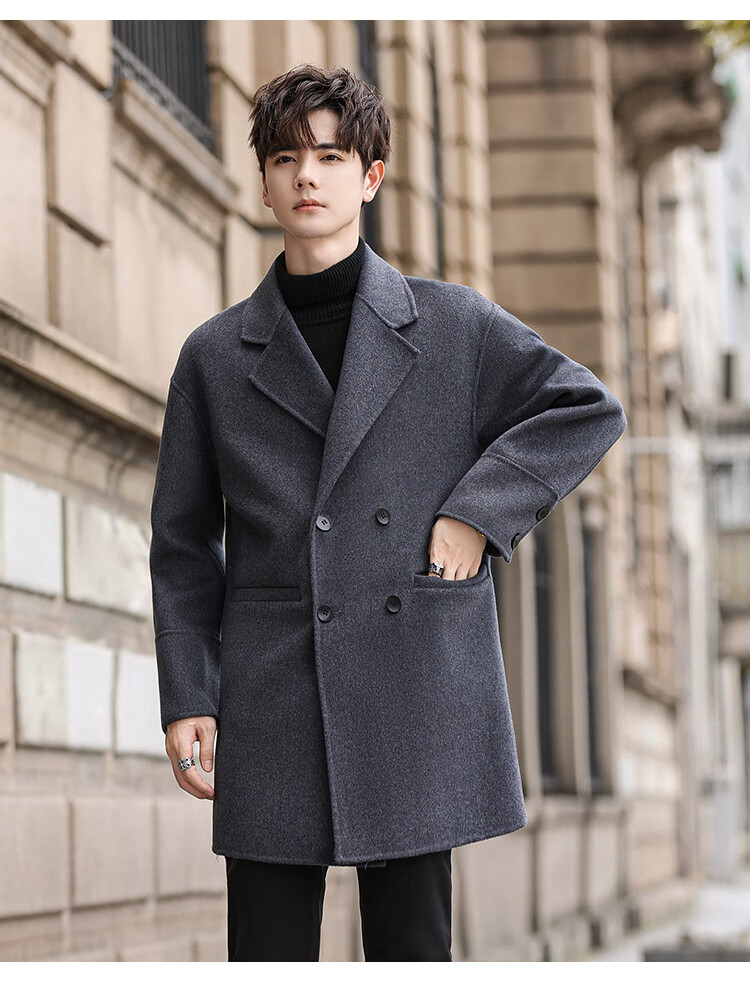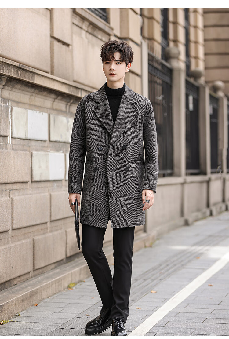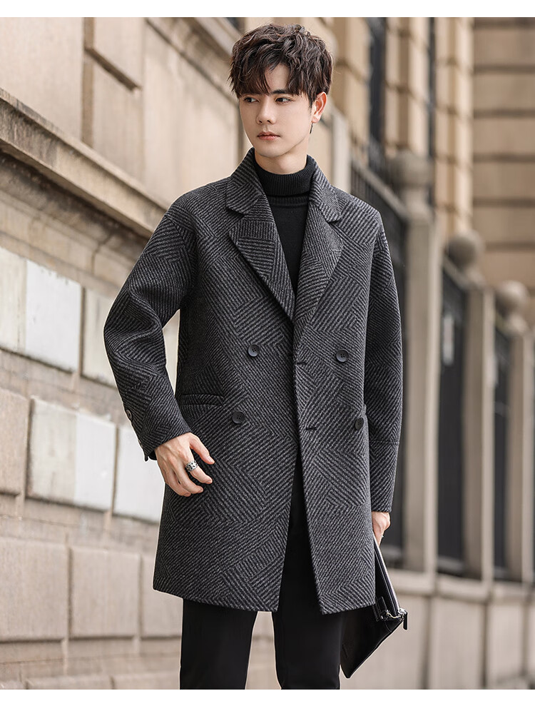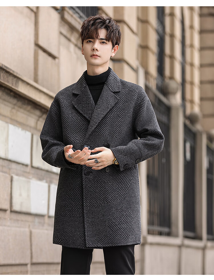 ROMON men's double-sided woolen coat 2025 mid-length autumn and winter woolen coat woolen windbreaker men's rhombus gray XL 180 recommended 140-155 Jin Jin equals 0.5 kg