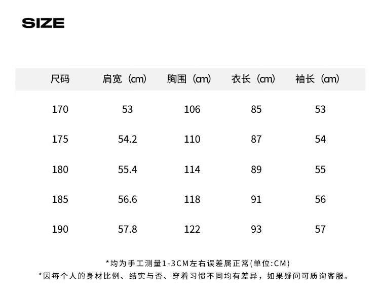 China (cm) 165 / 88-90 170 / 96-98 175 / 108-110 180 / 118-122 185 / 126-130