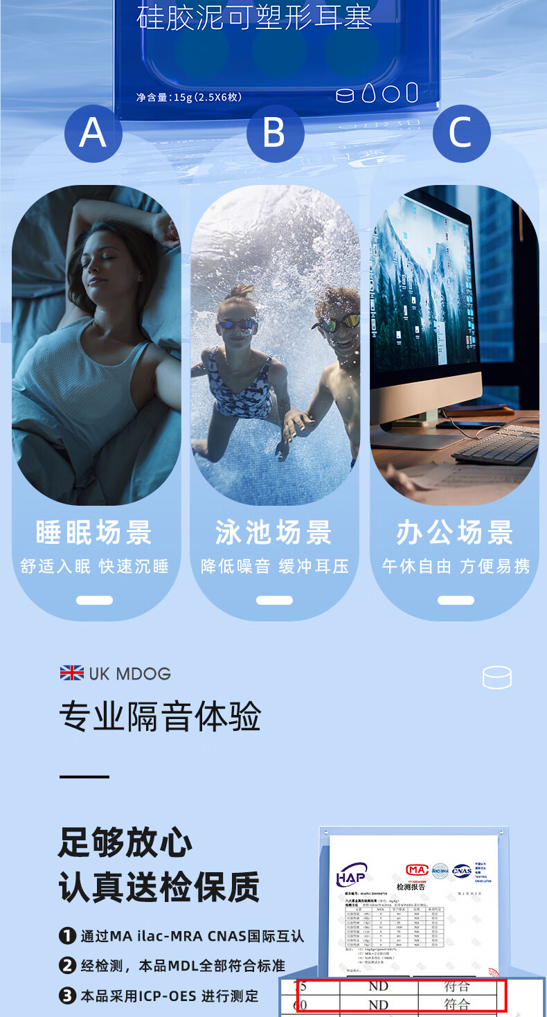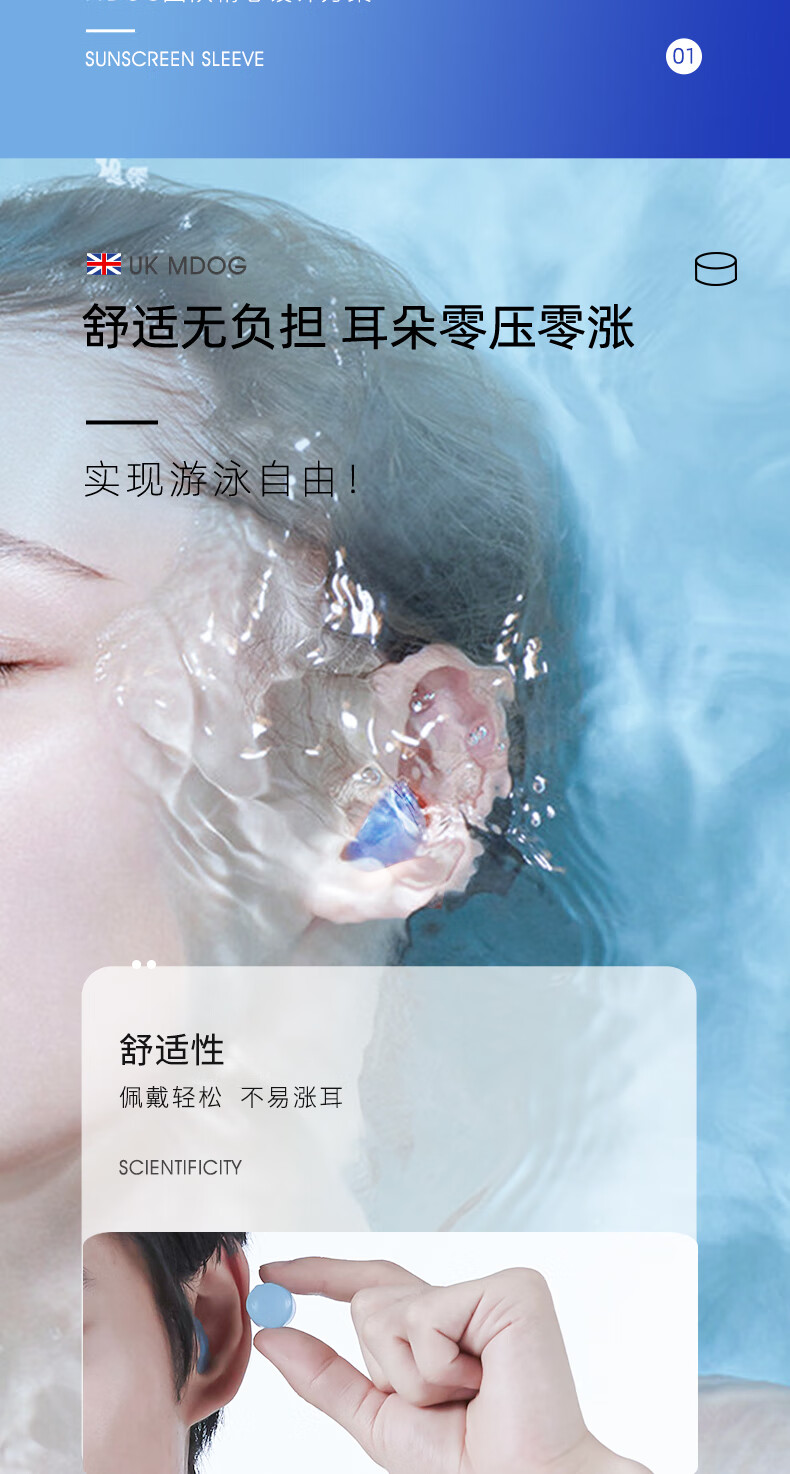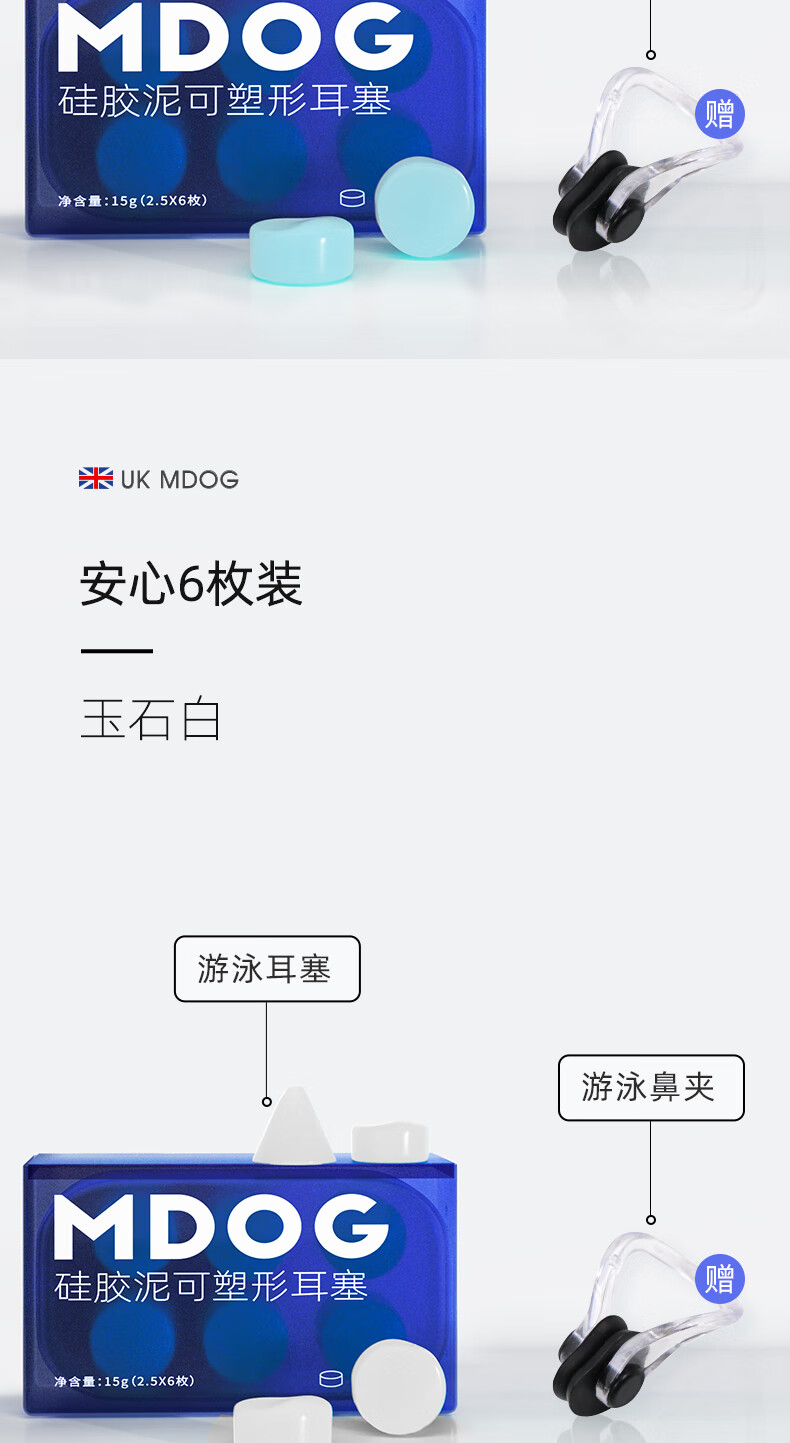 Silicone swimming earplugs waterproof and anti-choking nose clip set for men and women to prevent water from entering the ears when bathing Sapphire blue 4 pieces silicone waterproof earplugs + nose clip