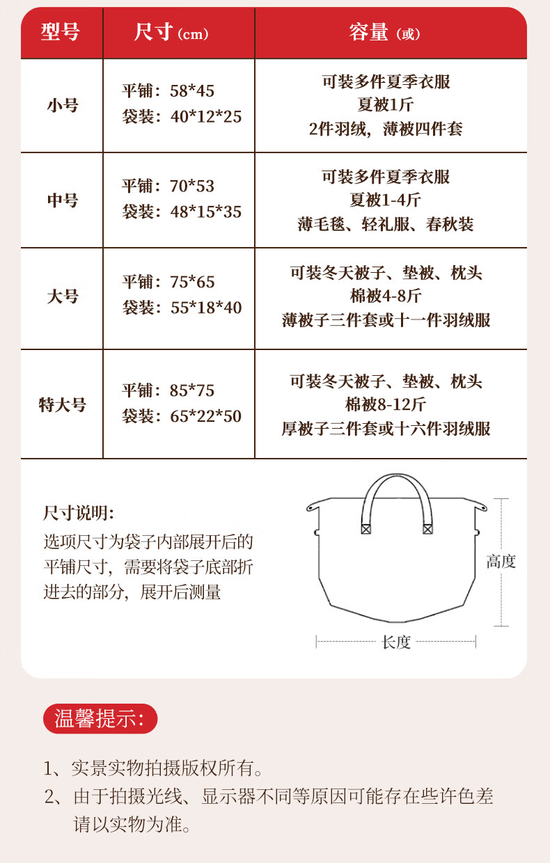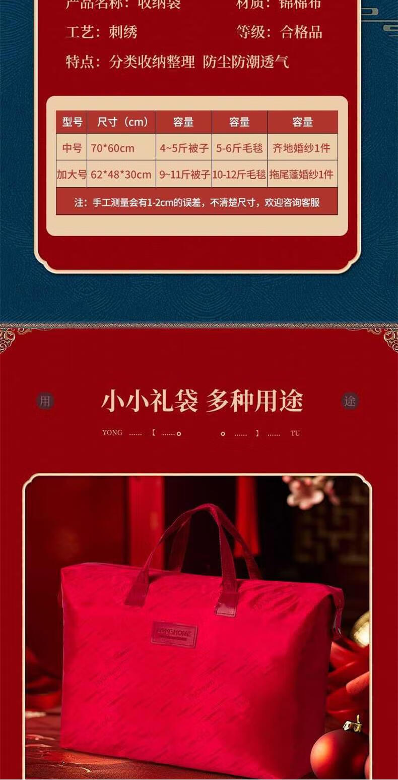 Ke Zhen thickened Oxford cloth storage bag handbag strong and durable large capacity wedding quilt storage bag wedding quilt bag red medium size 55X70 silk quilt 5-6 Jin Jin equals 0.5 kg, soybean quilt 5-6 Jin Jin equals 0.5 kg