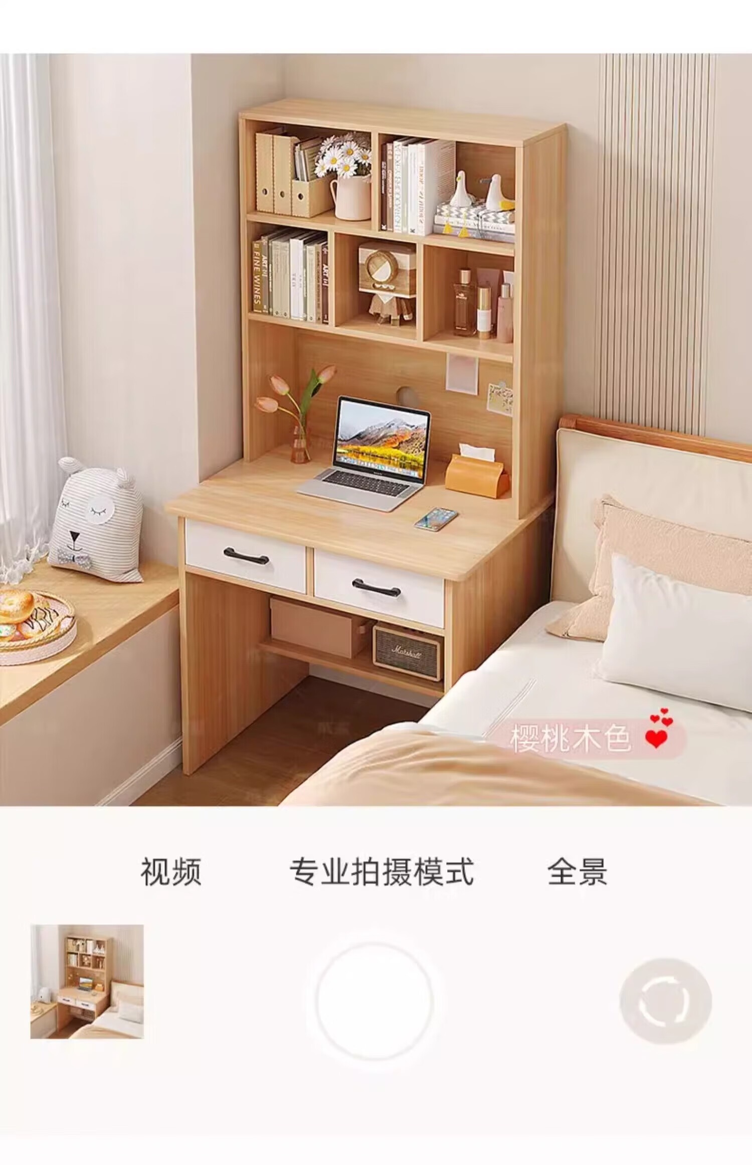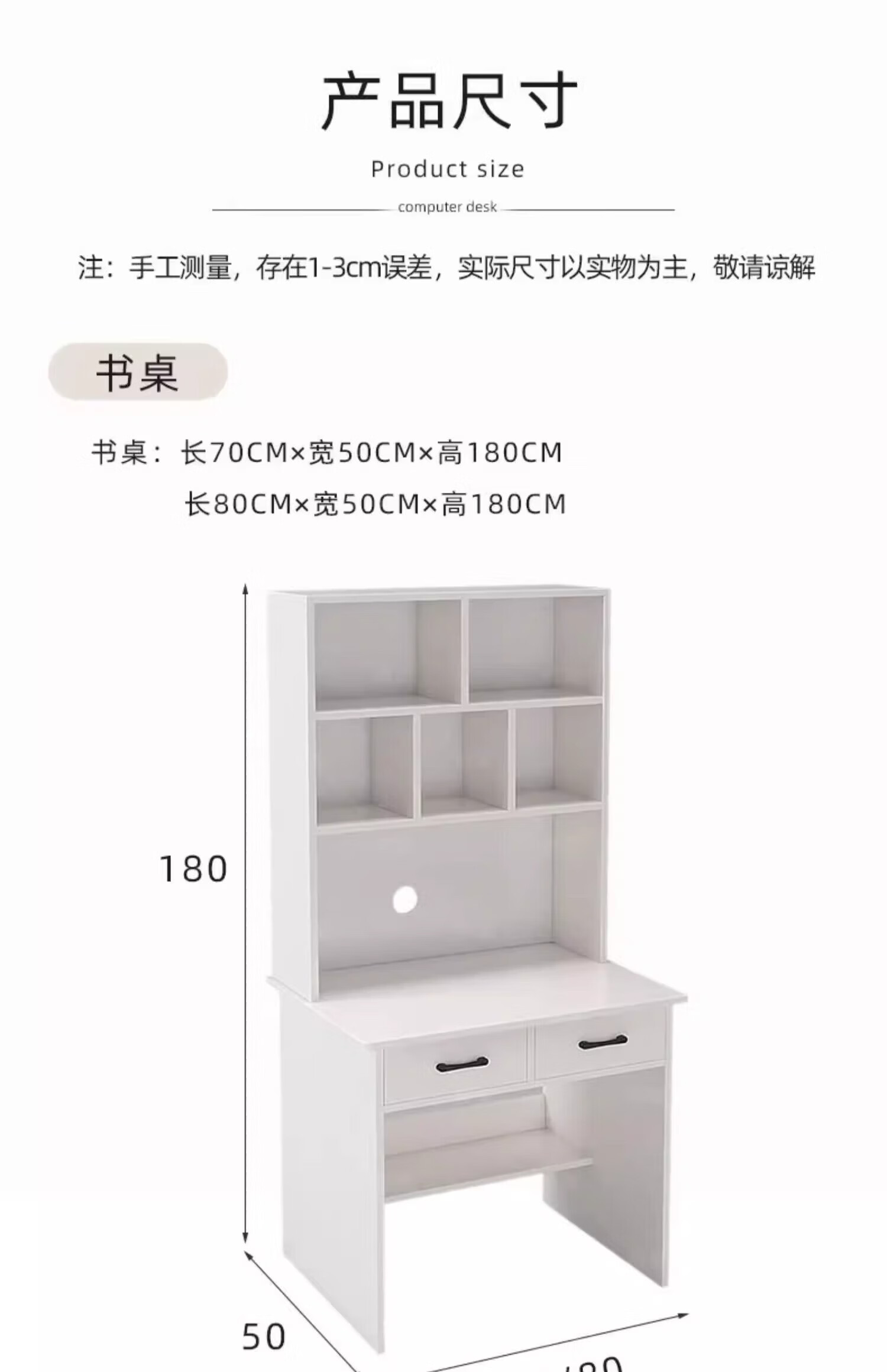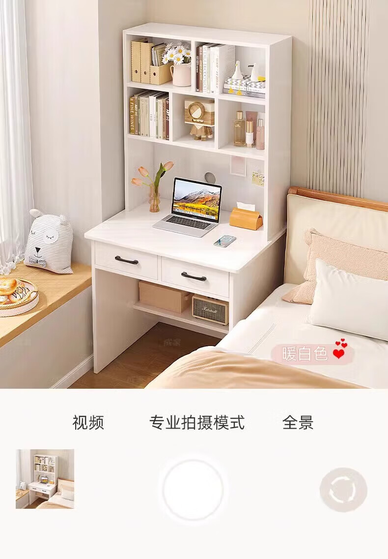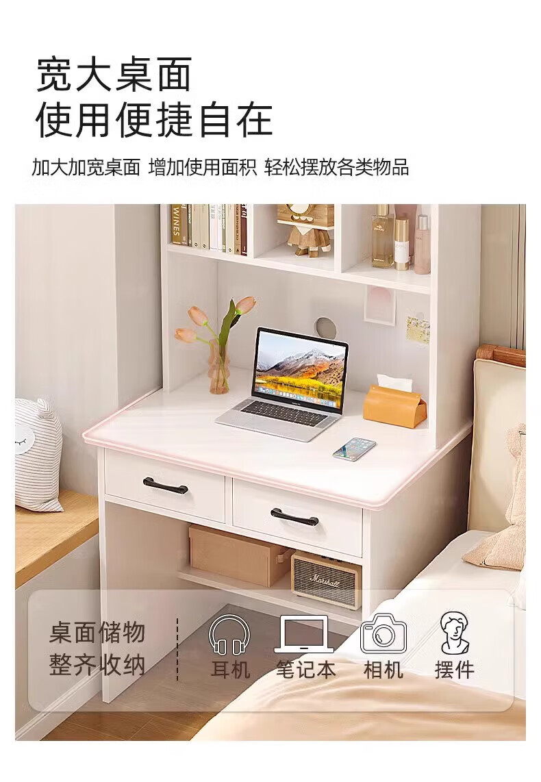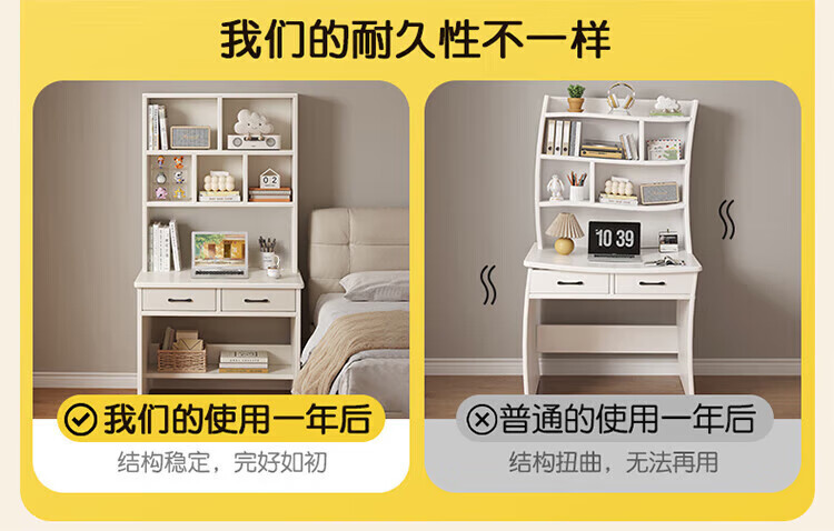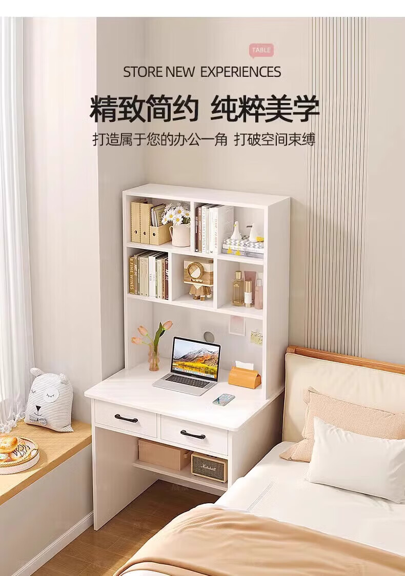 Zuodu small apartment desk study table simple desk bookcase bookshelf integrated home bedroom writing desk desktop computer table classic model wood color 80*50*180cm 15MM thickened table single desk