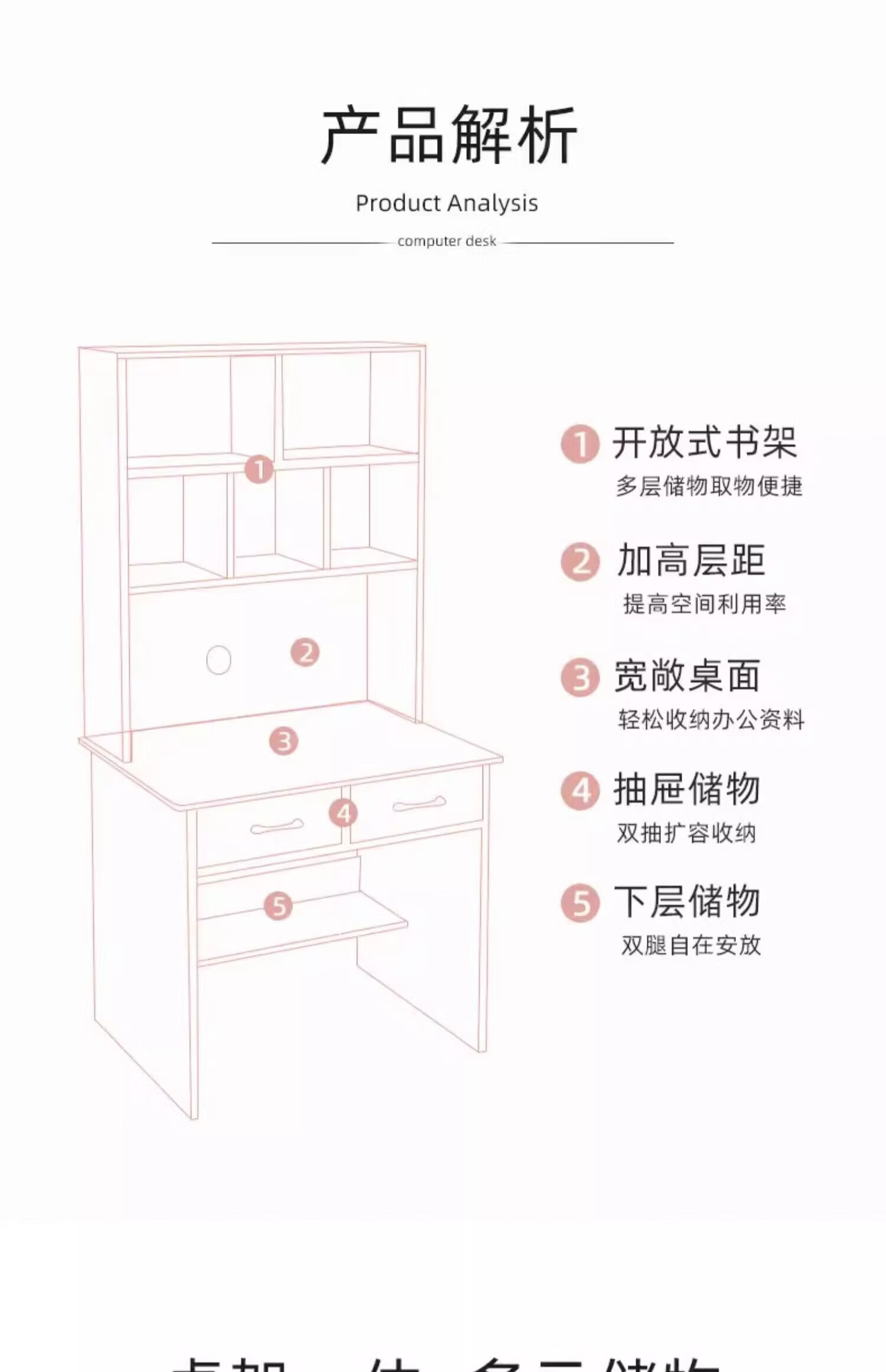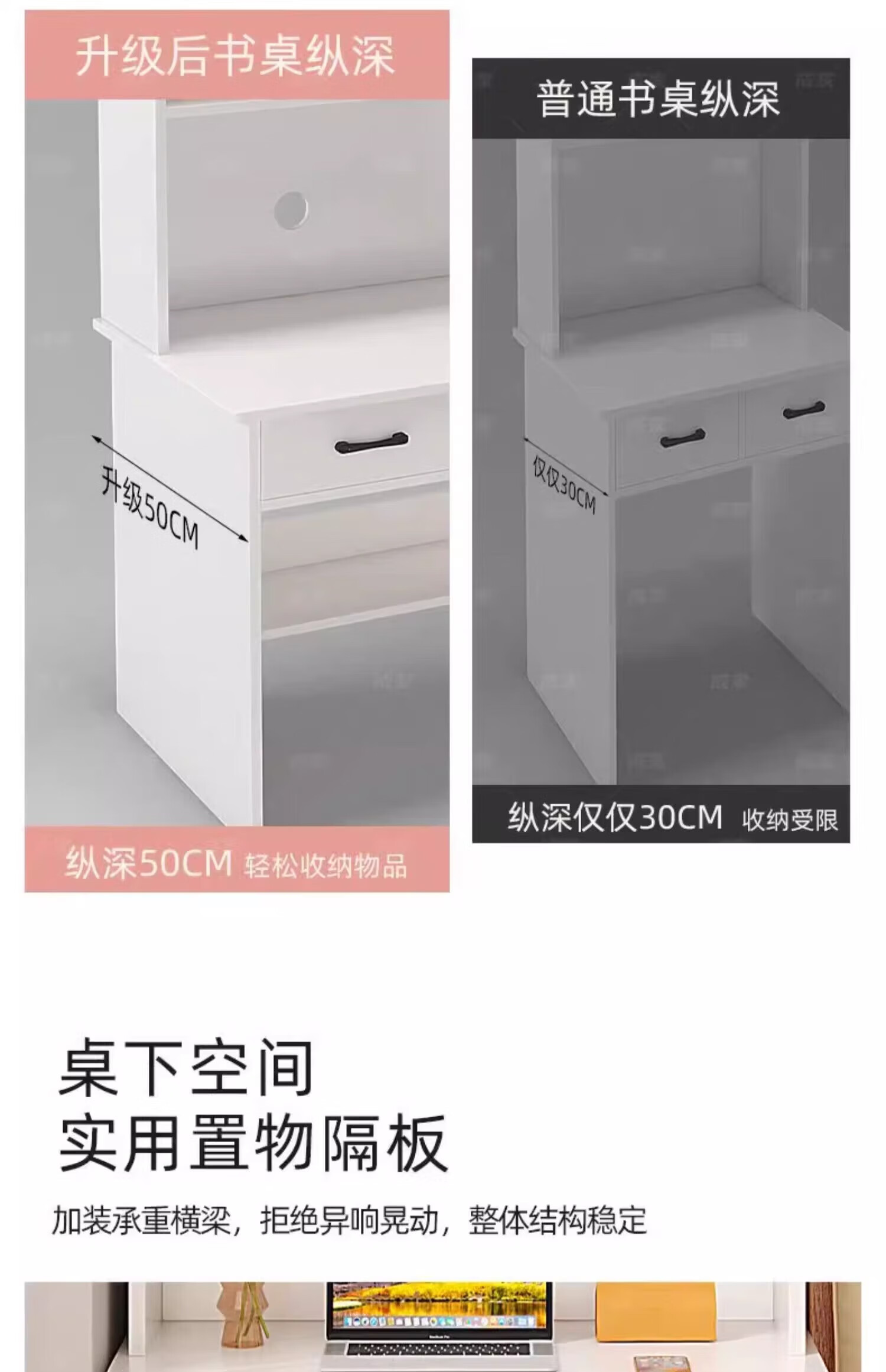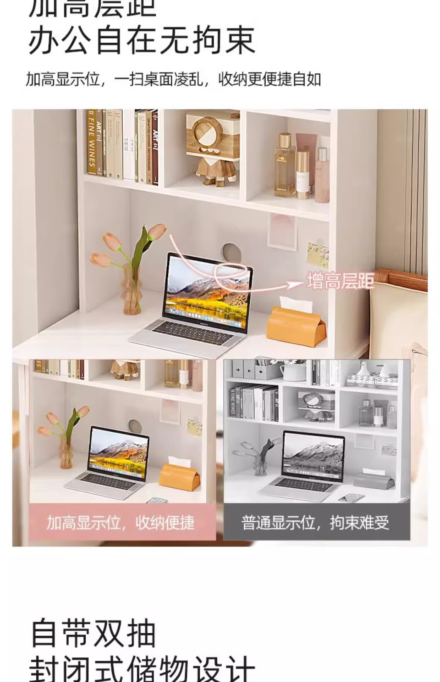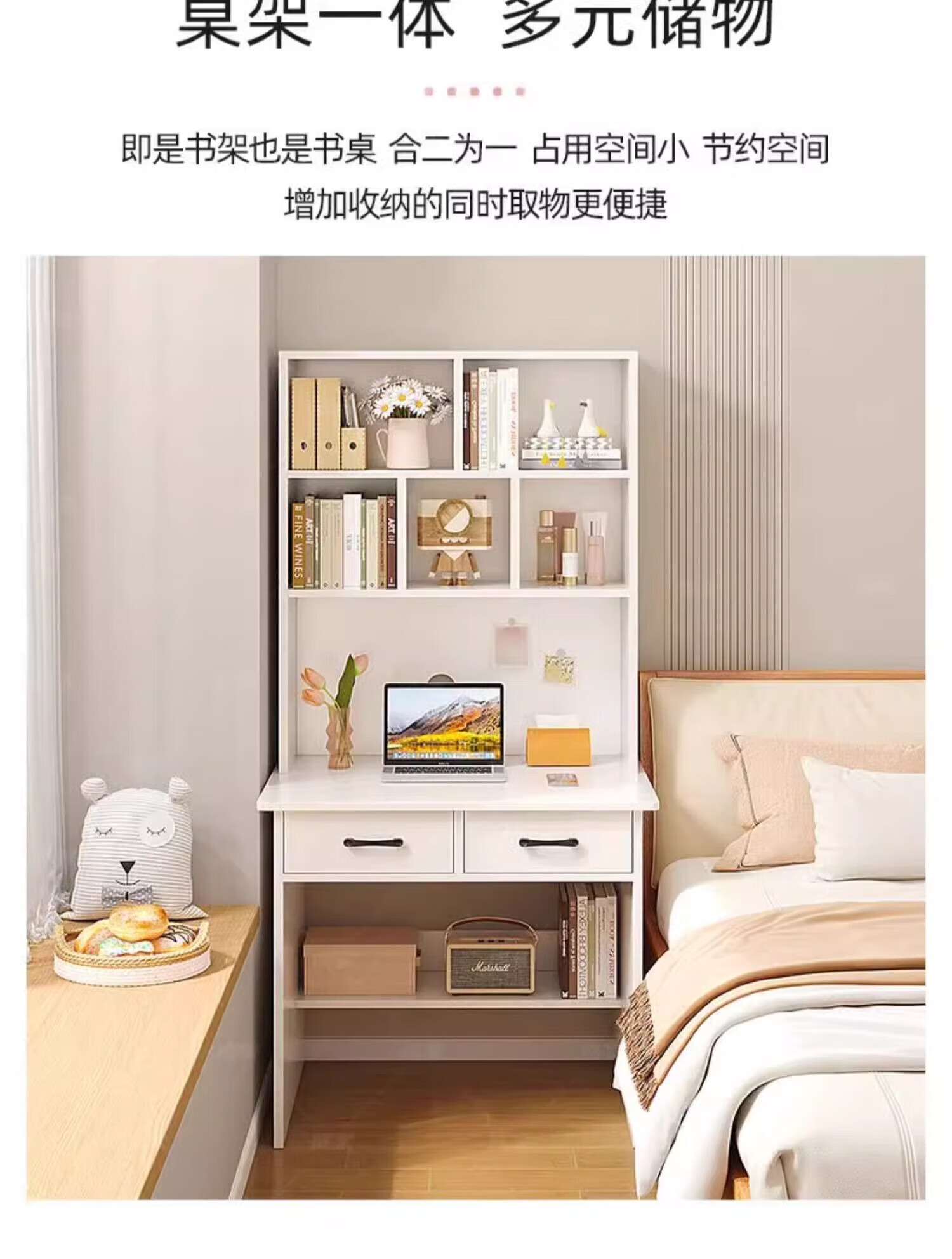 Zuodu small apartment desk study table simple desk bookcase bookshelf integrated home bedroom writing desk desktop computer table classic model wood color 80*50*180cm 15MM thickened table single desk