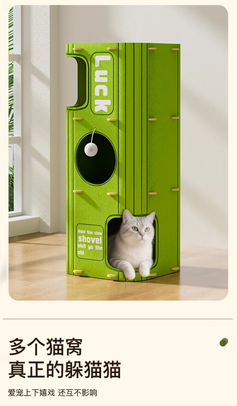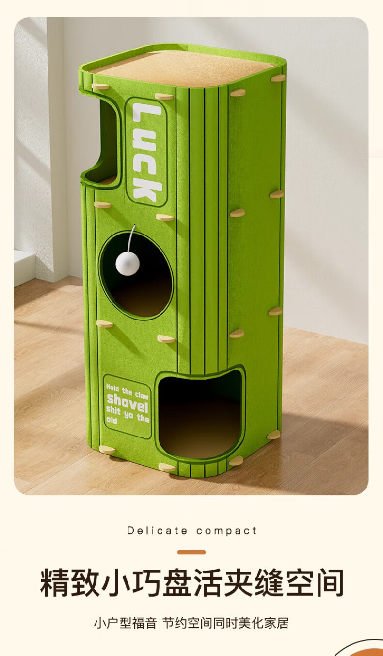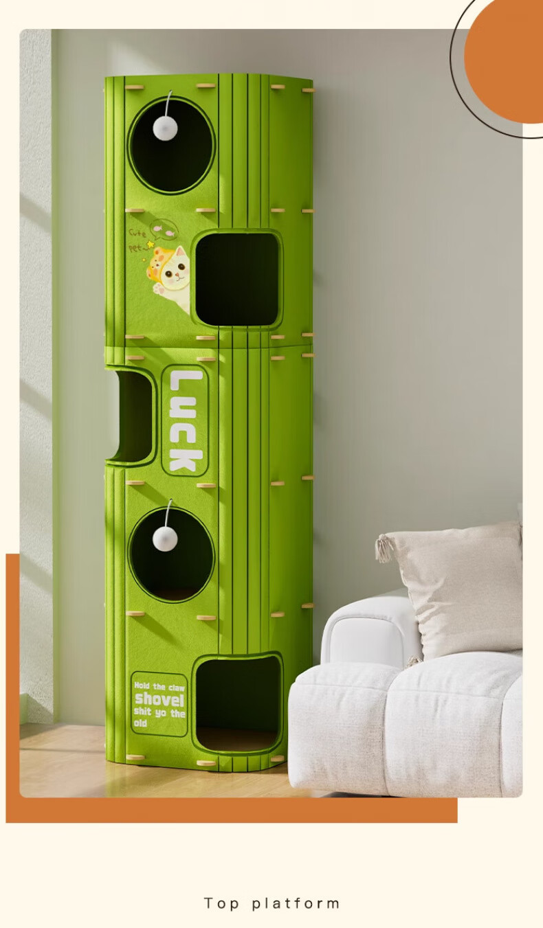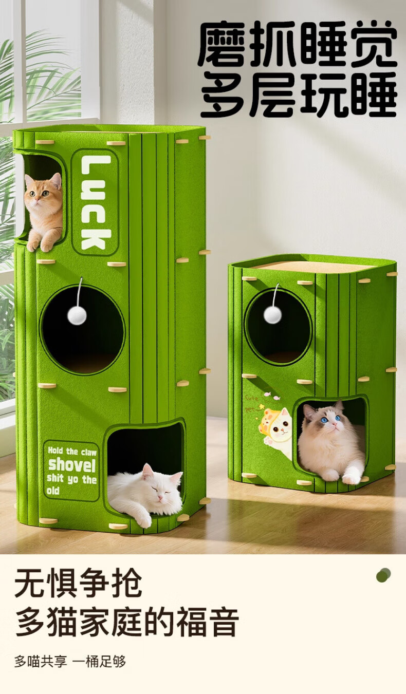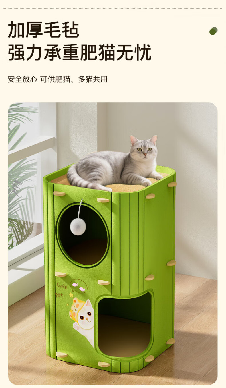 Bei Chuzhong Cat Nest Play and Sleep Integrated Cat Scratching Board All-season Double-layer Cat Nest Cat Climbing Frame Cat House Tree Hole Cat Nest Villa Toy Four-layer Olive Green Upgraded Thickening and Reinforcement Multi-cat Family Gospel/Toy Furniture Integrated