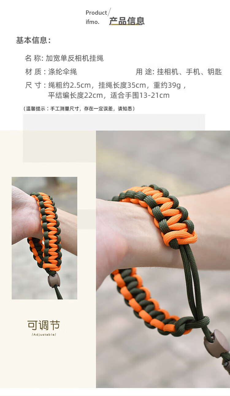 UOSO camera wrist strap wrist strap woven suitable for Fuji hand rope lanyard Canon Sony Leica Ricoh quick release accessories quick-install mobile phone lanyard woven camera wrist strap military green orange