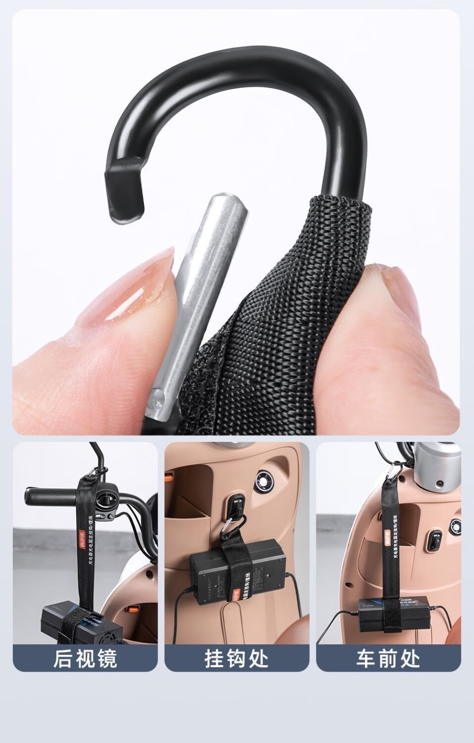 Electric vehicle charger storage hook, convenient battery vehicle universal fixed sticky hook, non-slip plug, strong cable management, electric vehicle charger widened and thickened Velcro binding + metal hook 1 piece