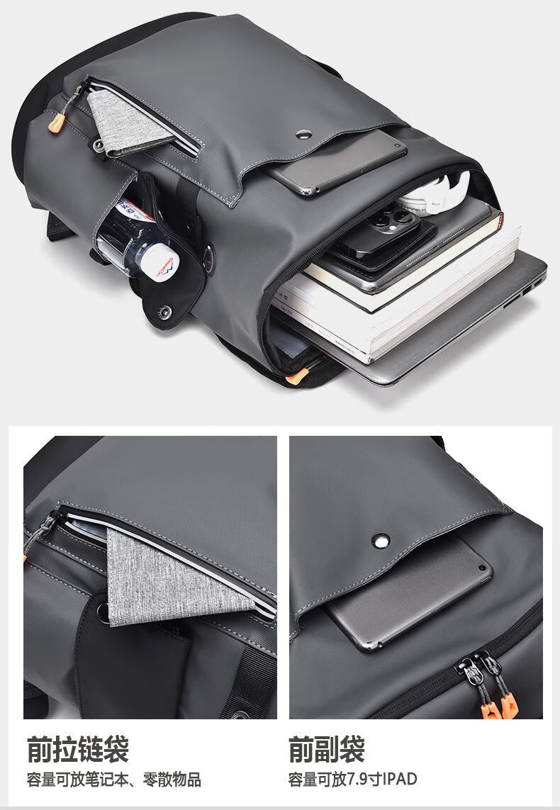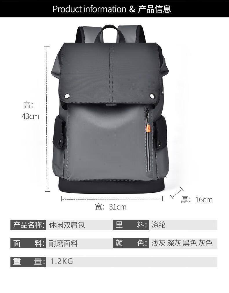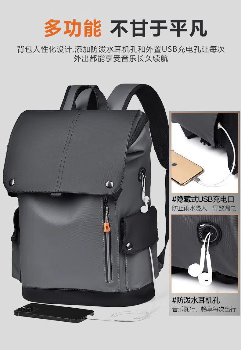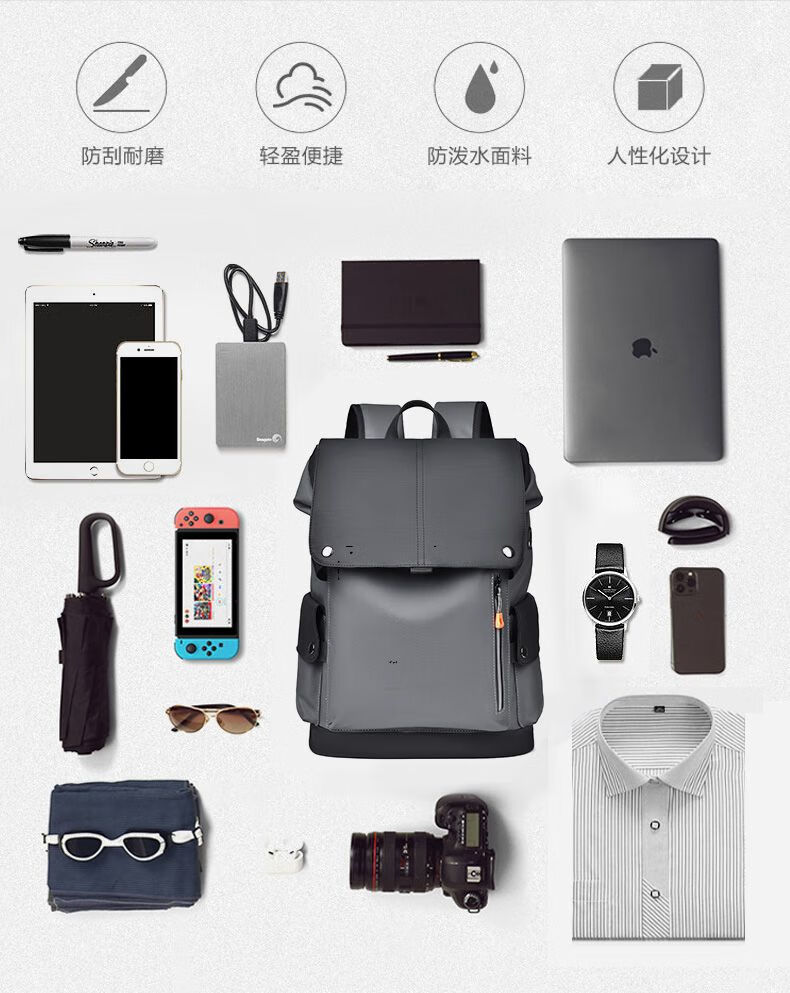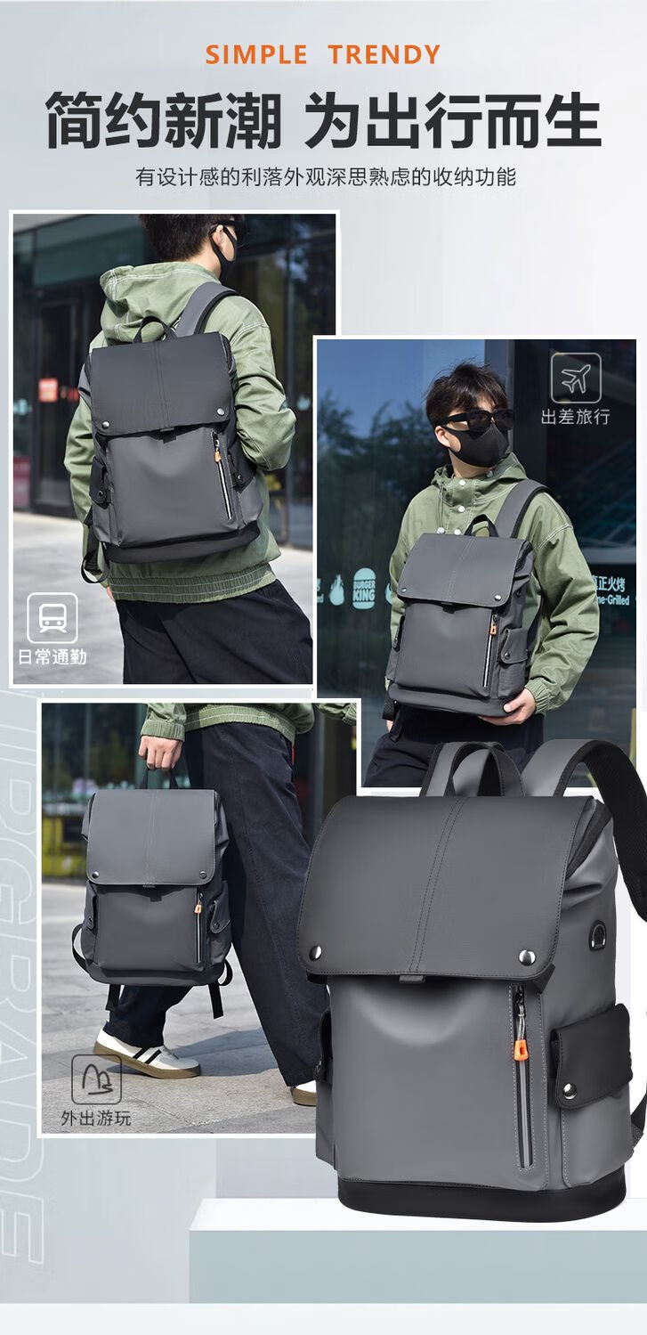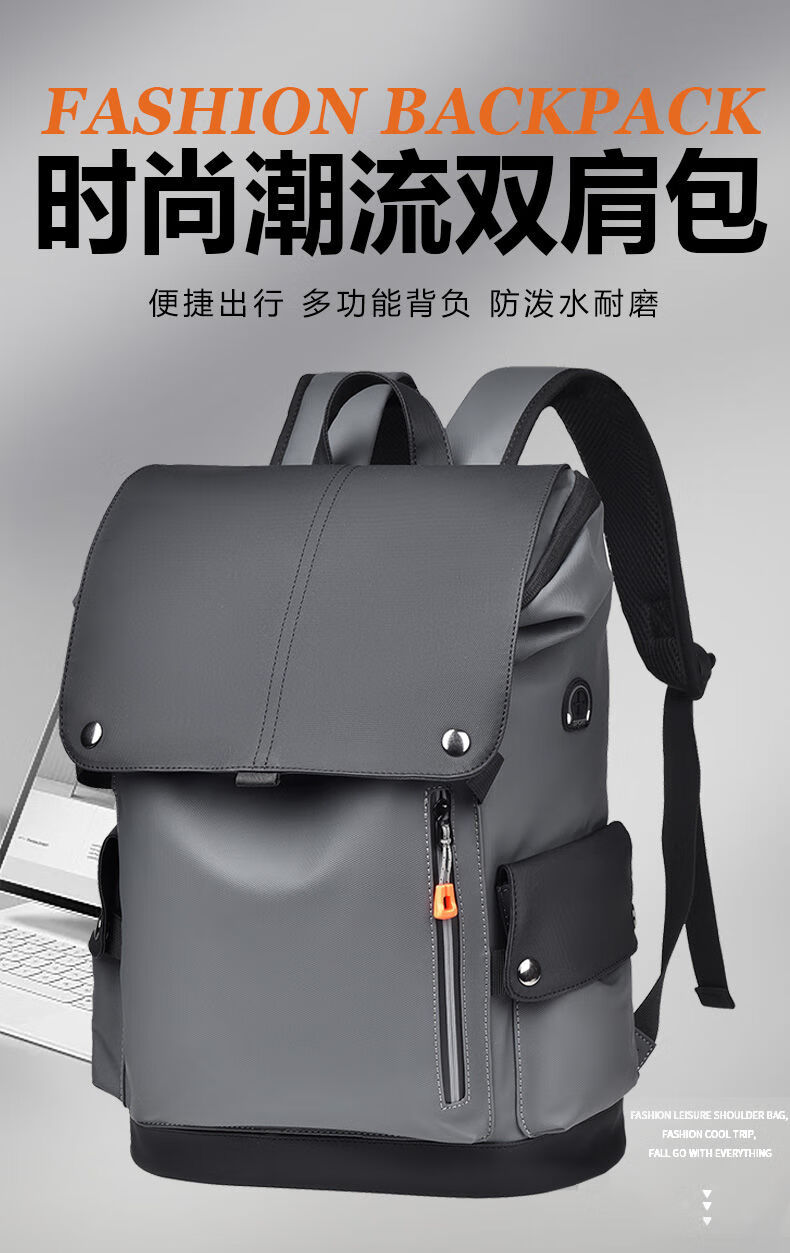 First conception of new waterproof backpack for men, student casual large capacity laptop bag, fashionable business backpack QH041 black gray