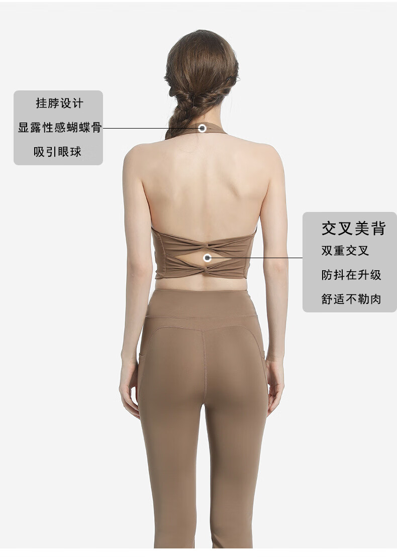 Yoga clothing set for women new training Pilates fitness boot-cut pants outdoor sports running tight halter bra gray lake blue bra + whale blue bell-bottom pants M recommended 100-115 Jin Jin equals 0.5 kg