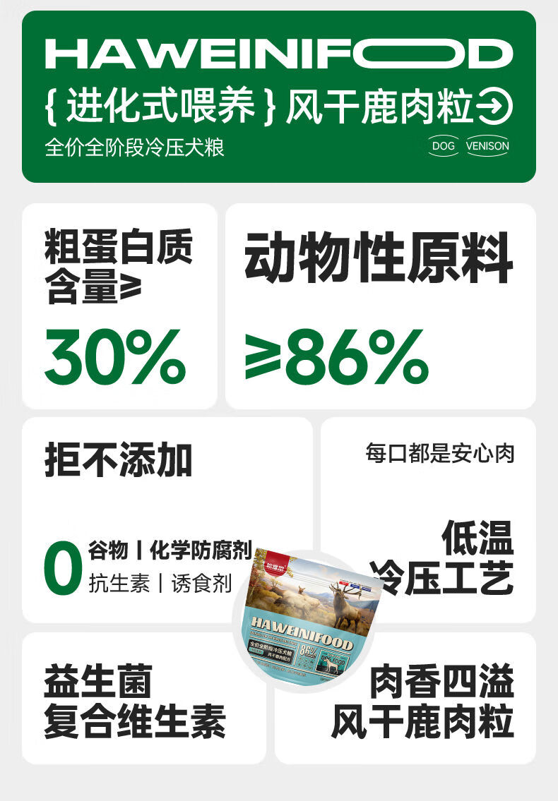 HAWEINI dog food air-dried venison fresh meat puppy dog food adult dog fattening and meat growing grain-free cold-pressed general food venison 5 pounds 2.27kg 2.27kg fattening and meat growing