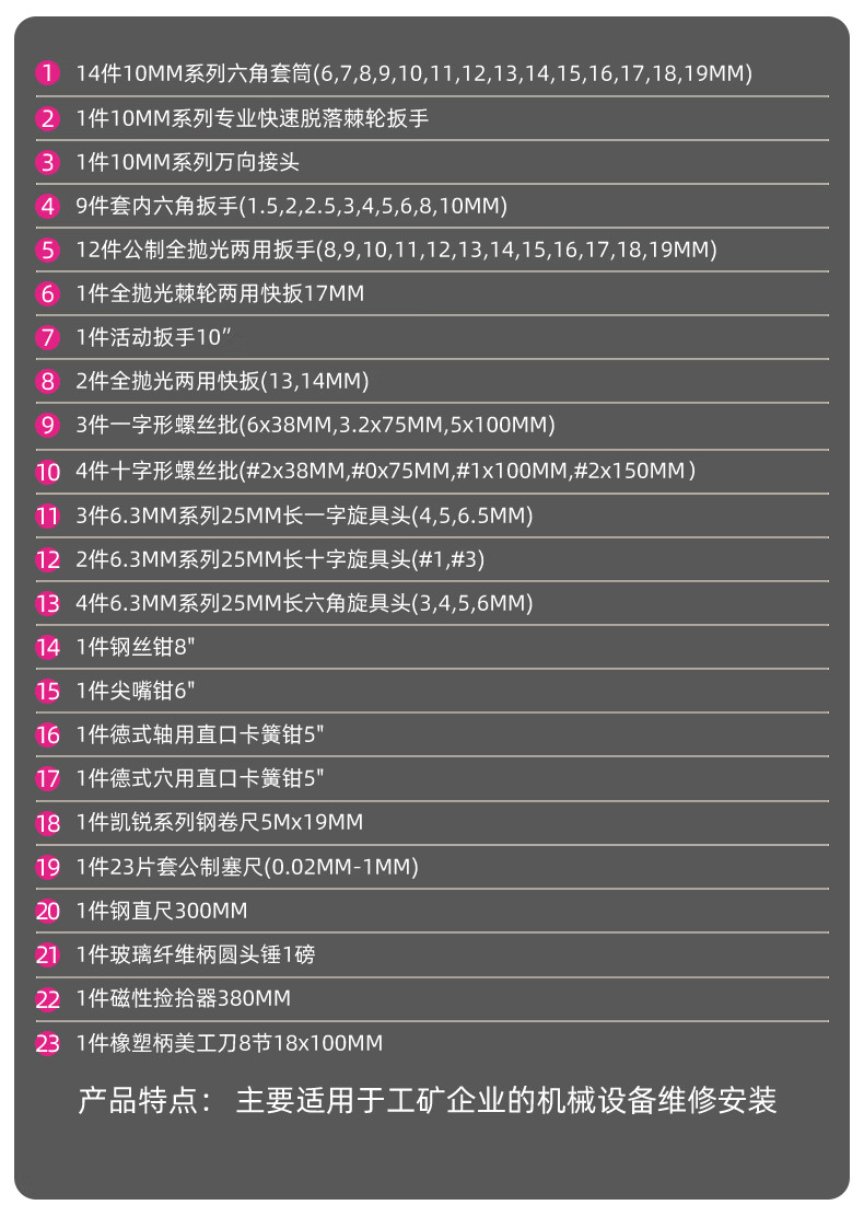 Shida tool set 58-piece mechanical equipment repair socket wrench combination machine repair hardware set 09516 09516 Lifetime warranty 58-piece mechanical repair