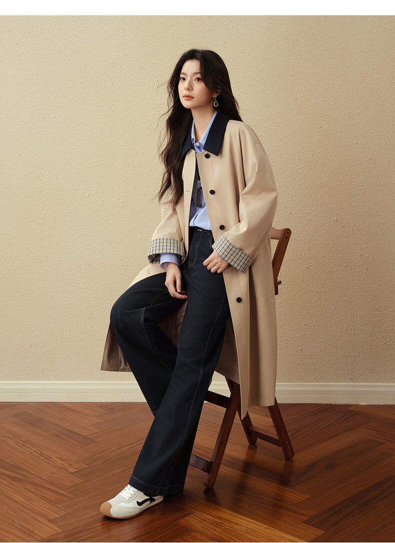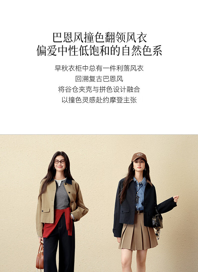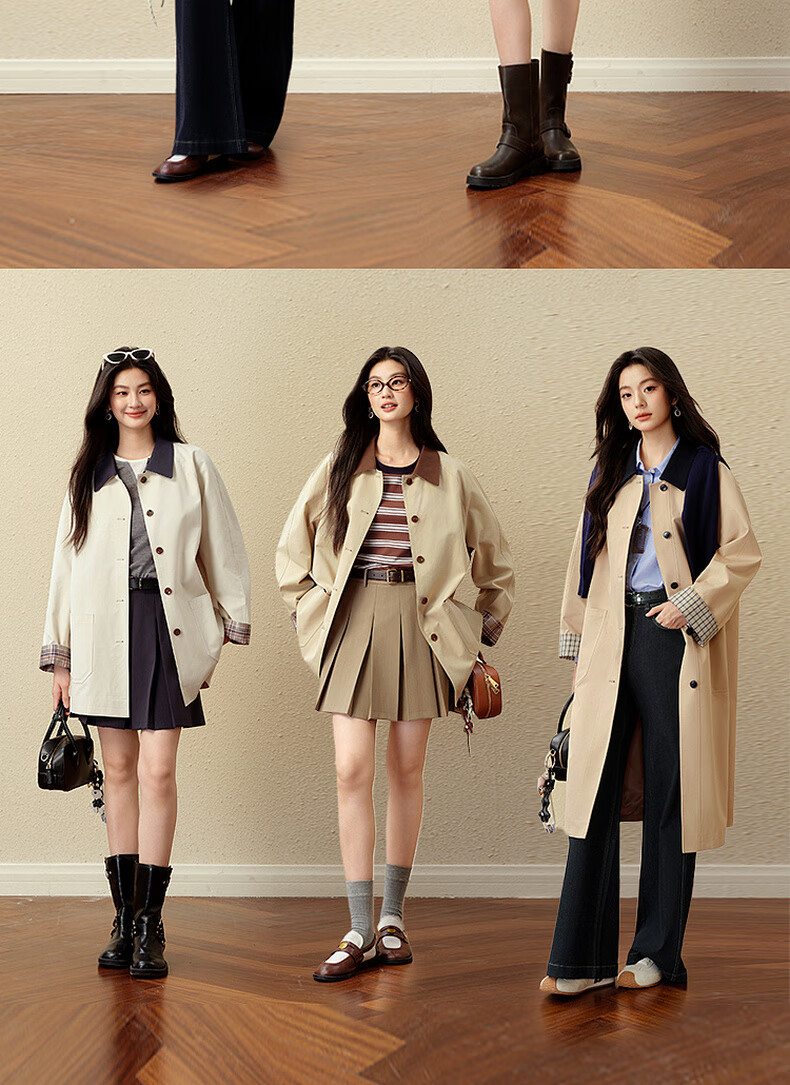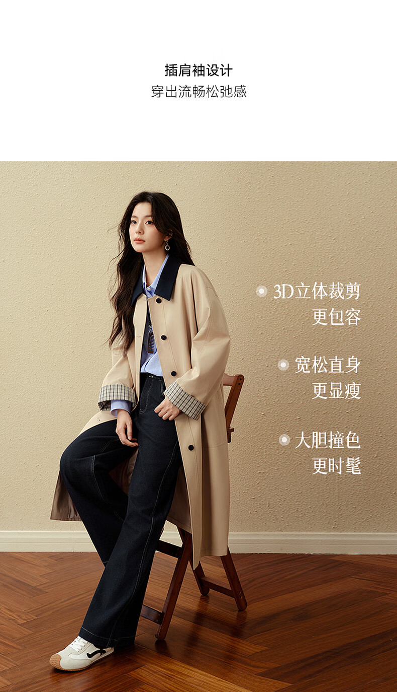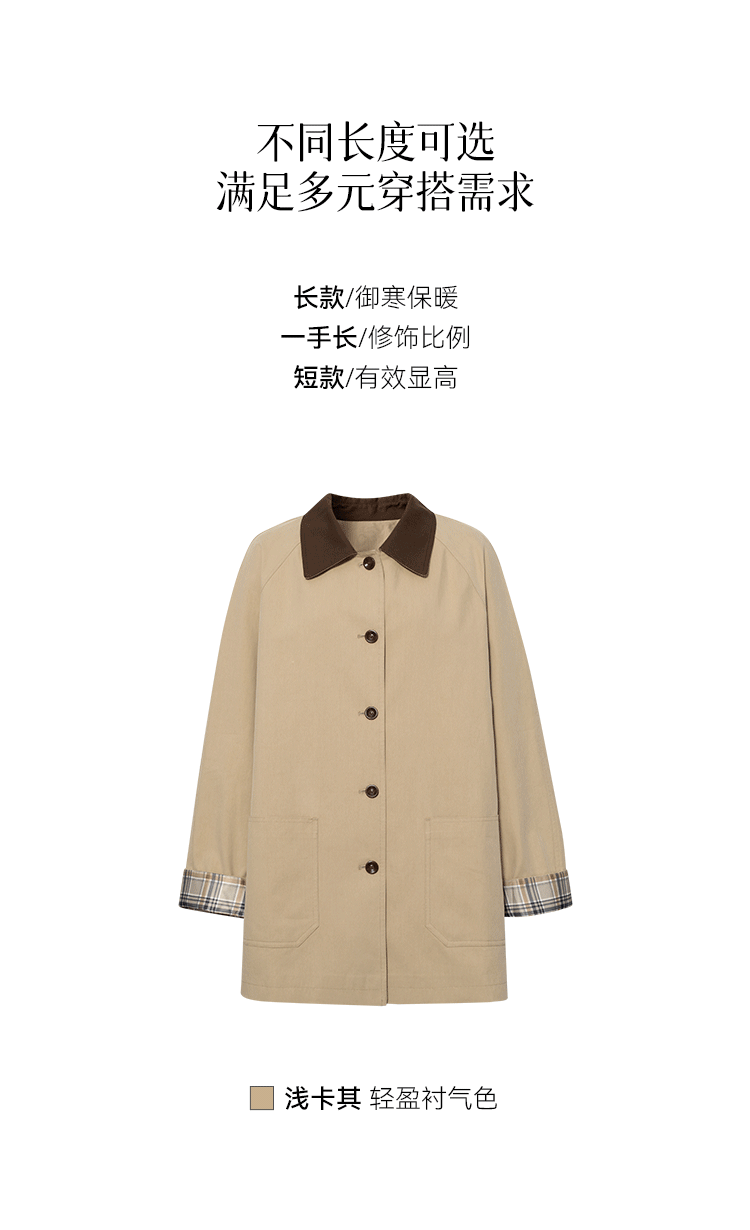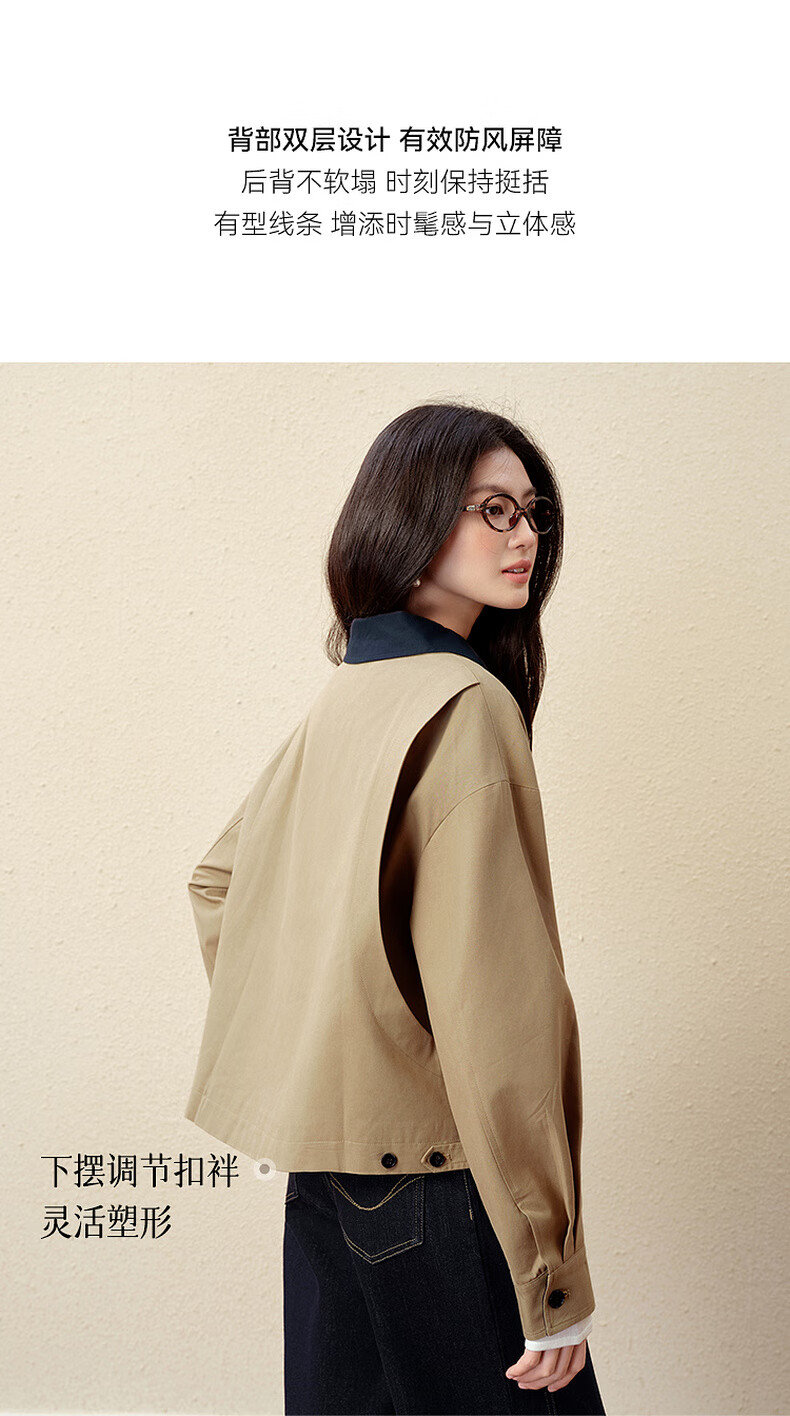 Shifanli Classic Barn Style Contrast Color Lapel Windbreaker 2025 Autumn New Style British Style Loose Casual Jacket Women Light Khaki M