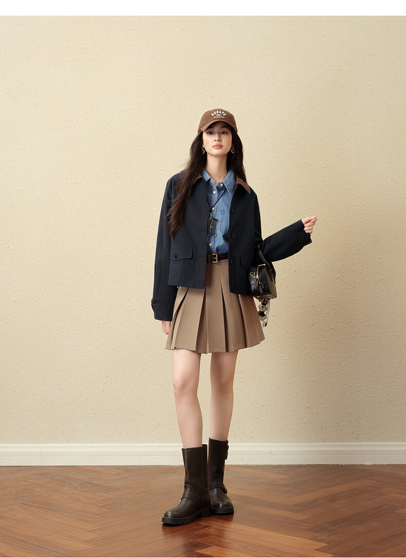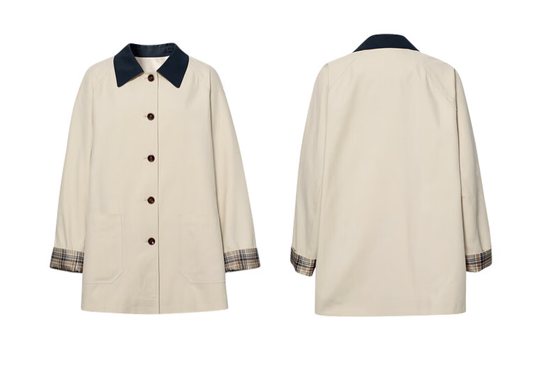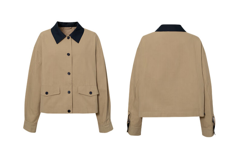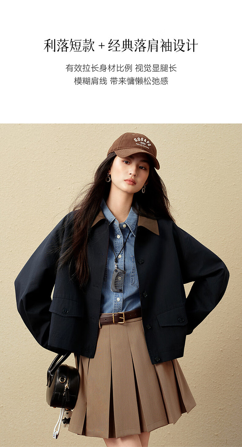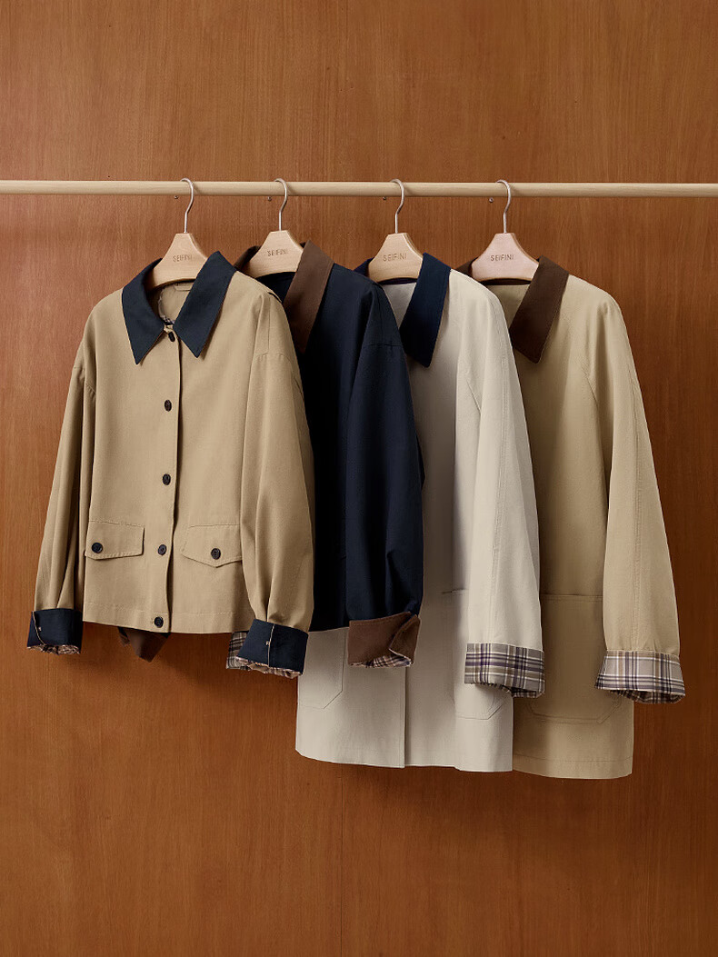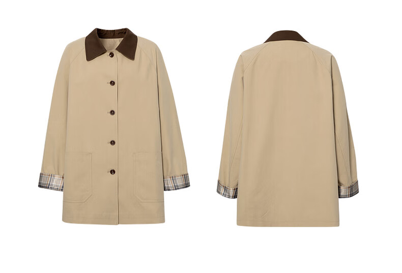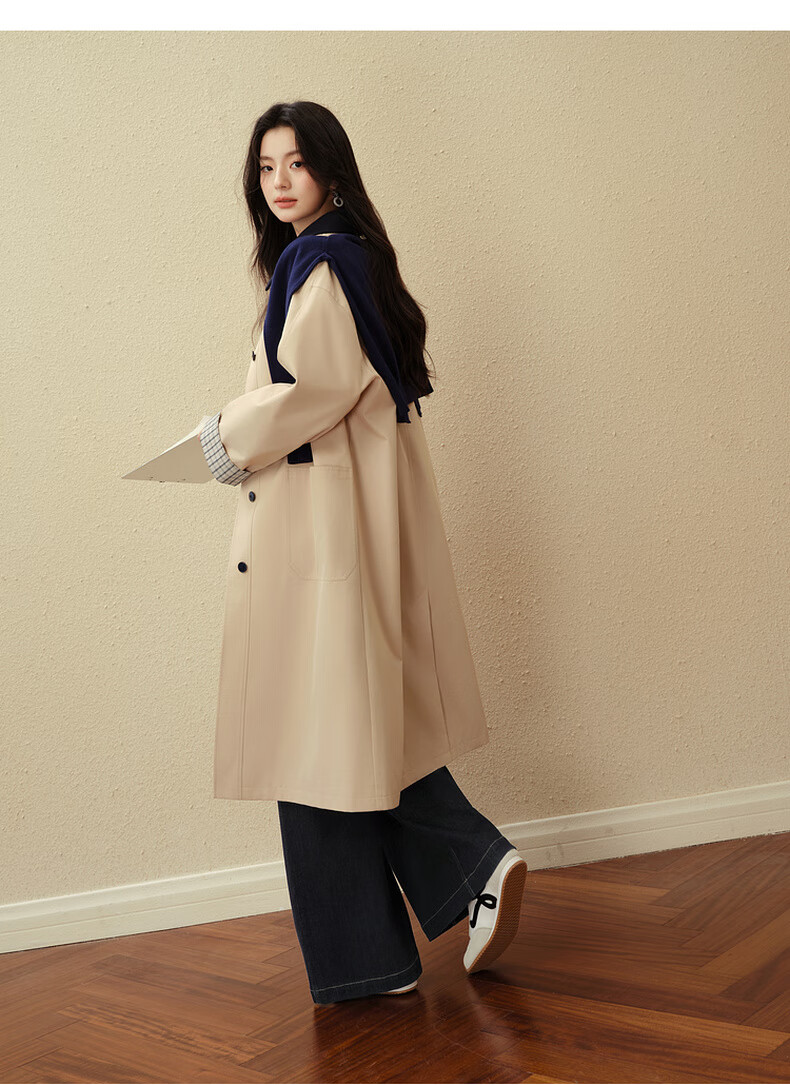 Shifanli Classic Barn Style Contrast Color Lapel Windbreaker 2025 Autumn New Style British Style Loose Casual Jacket Women Light Khaki M