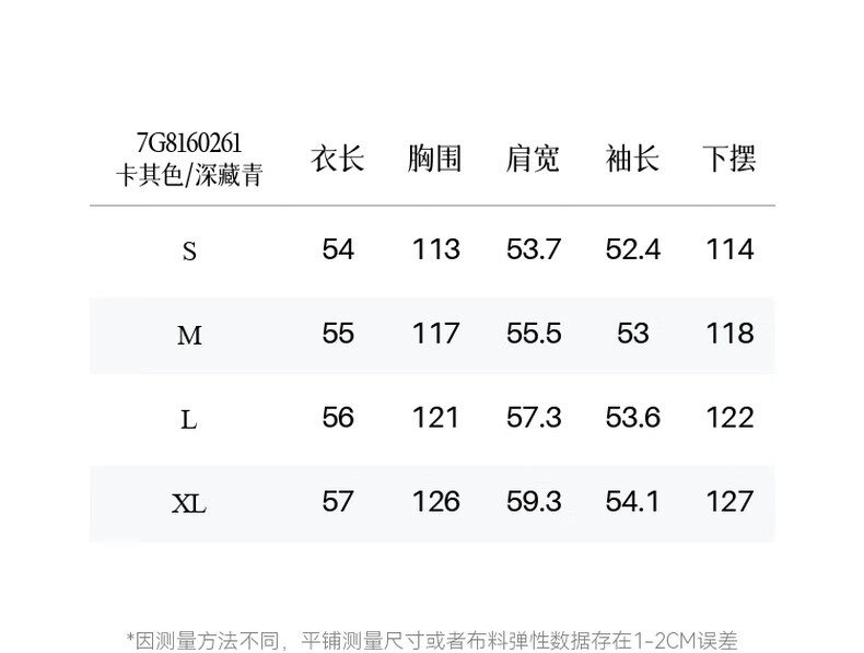 China (cm) 165 / 88-90 170 / 96-98 175 / 108-110 180 / 118-122 185 / 126-130