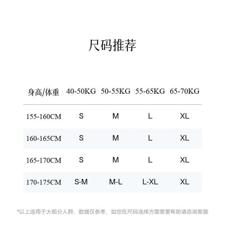 China (cm) 160-165/84-86 165-170 / 88-90 167-172 / 92-96 168-173 / 98-102 170-176 / 106-110