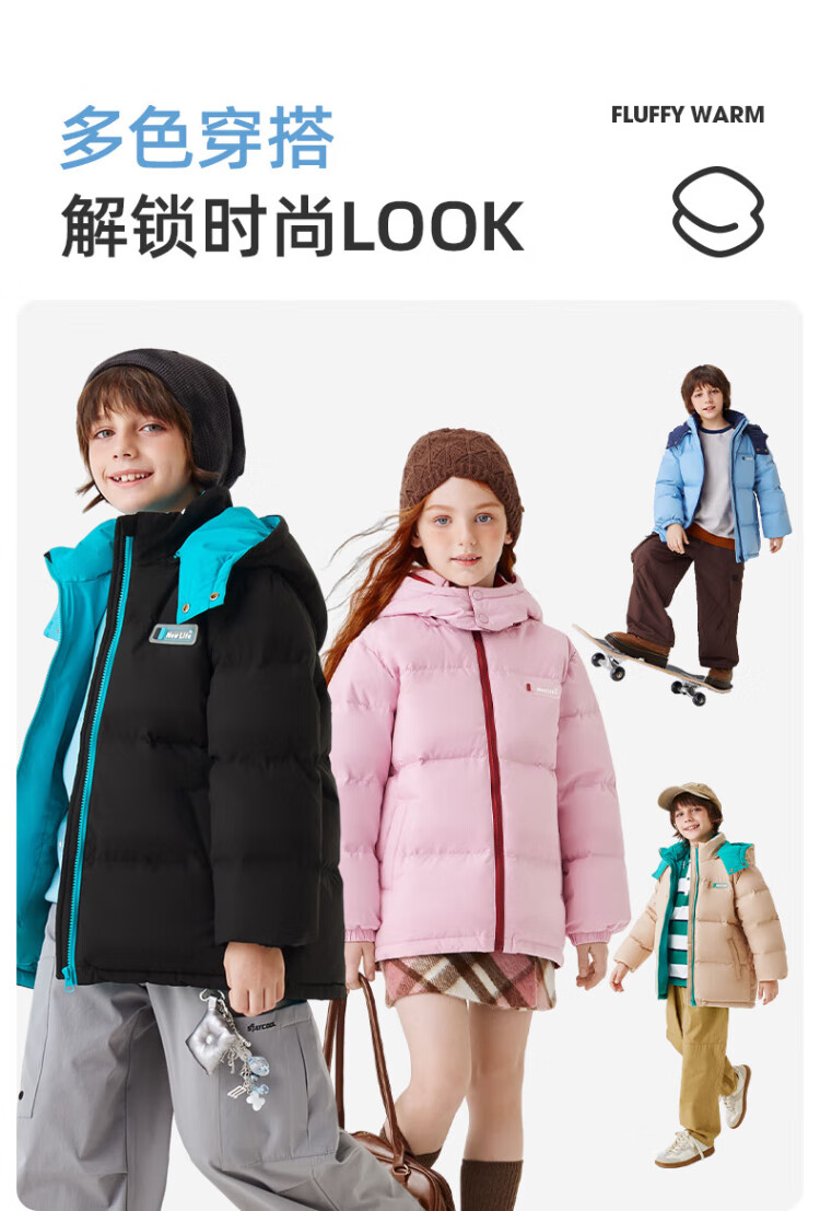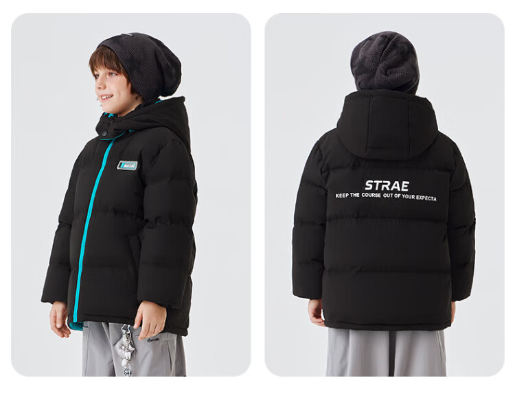 Flying in the Snow Children's Clothing Children's Down Jacket Boys Winter New Style Girls Medium and Large Children's Clothing Bread Down Jacket Black 170