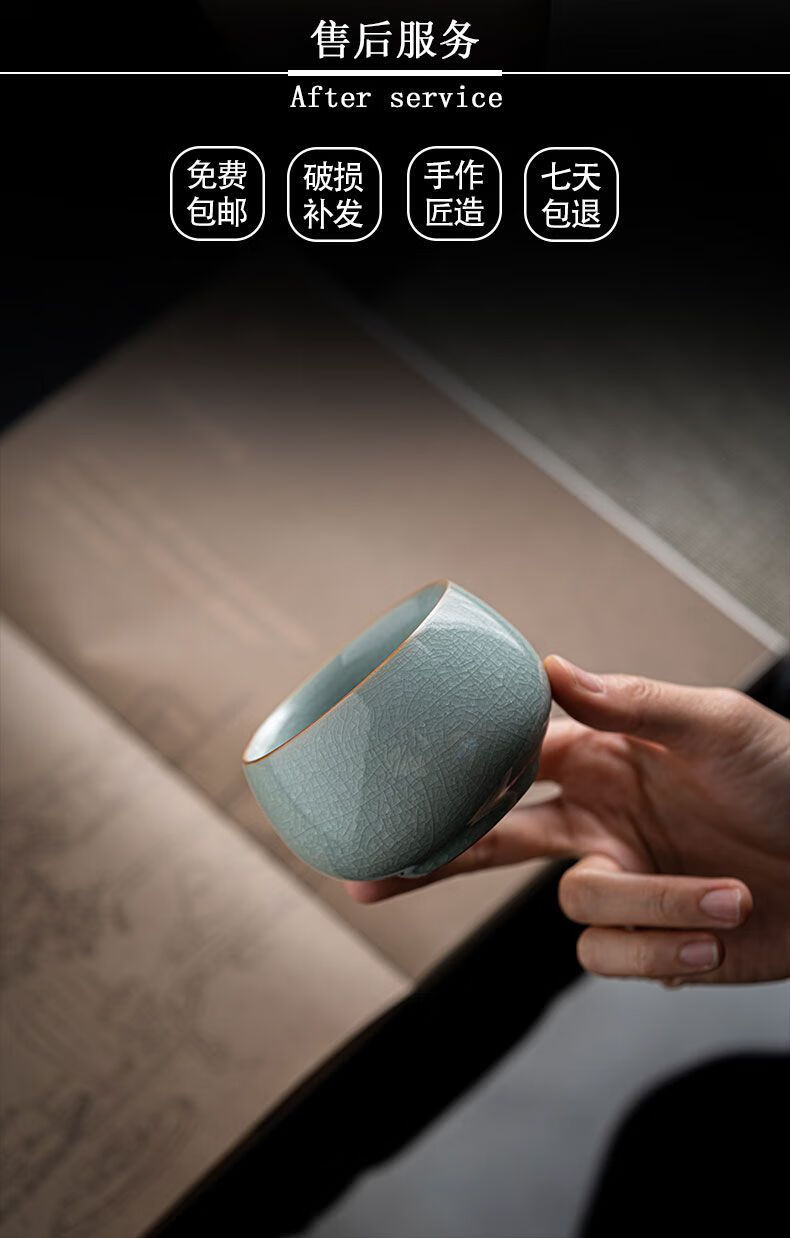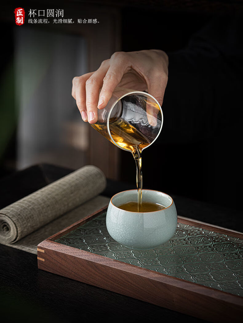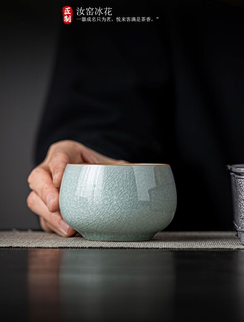 Ru kiln ice flower master cup single cup open slice personal tea cup ceramic tea cup kung fu tea set tea cup home use Ru kiln open slice master cup yuanrong cup 140ml