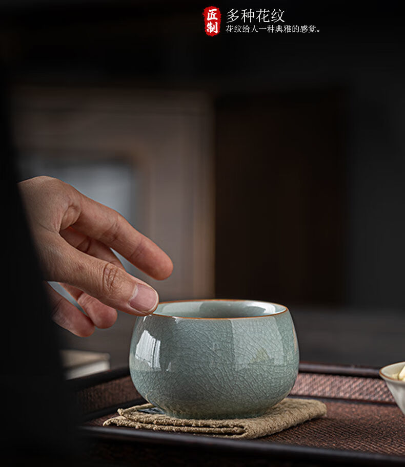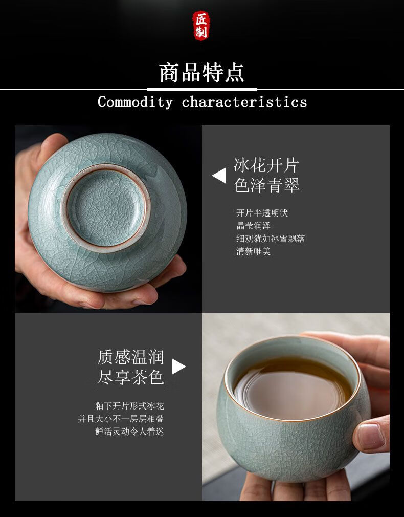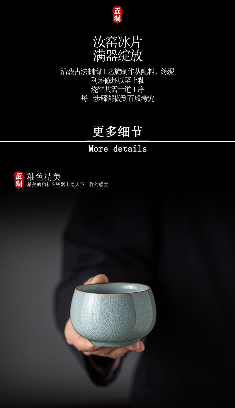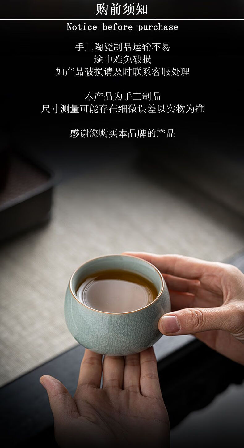 Ru kiln ice flower master cup single cup open slice personal tea cup ceramic tea cup kung fu tea set tea cup home use Ru kiln open slice master cup yuanrong cup 140ml