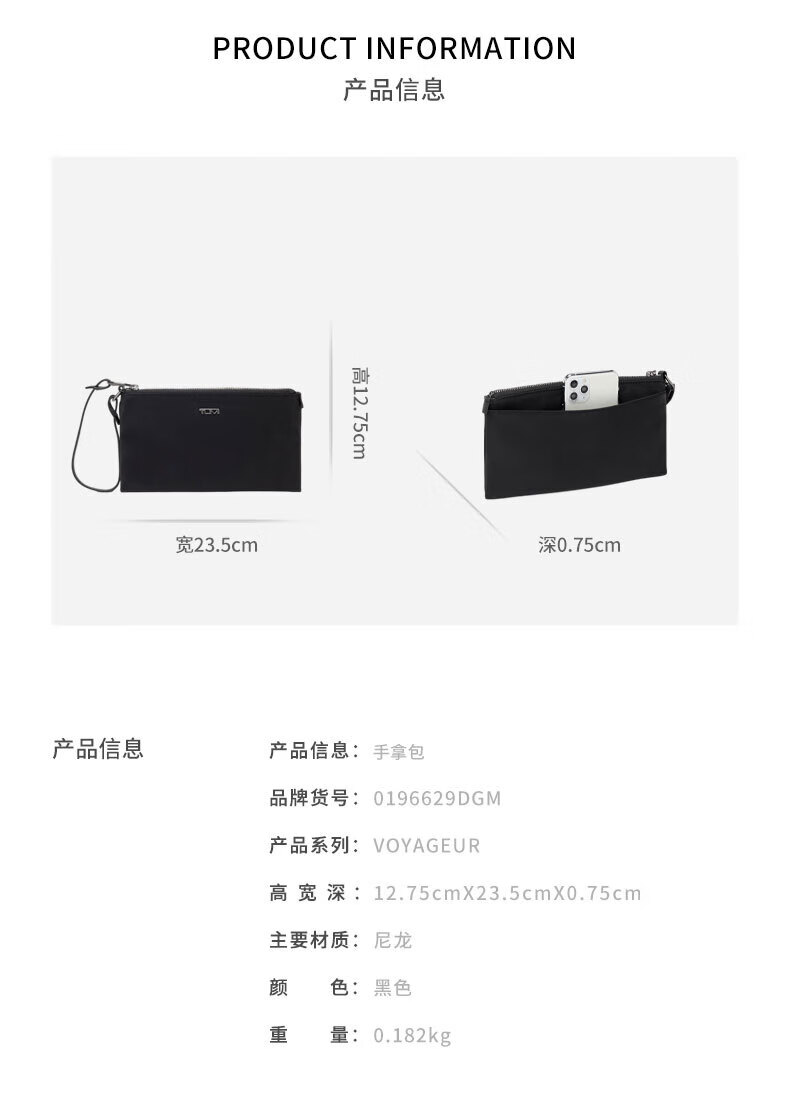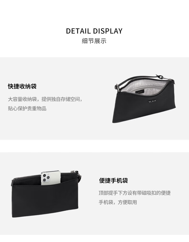 TUMI JD Outlet VOYAGEUR women's high-end fashion clutch black with smoke gun color