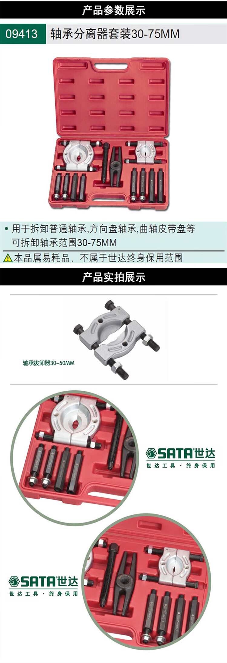 Starstar (SATA) Star Tools 30-75MM Bearing Separator Set 09413 09413