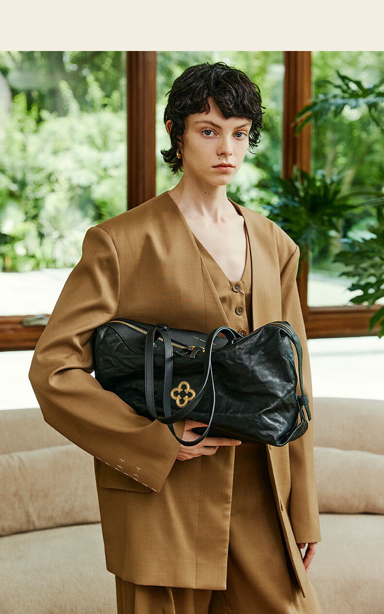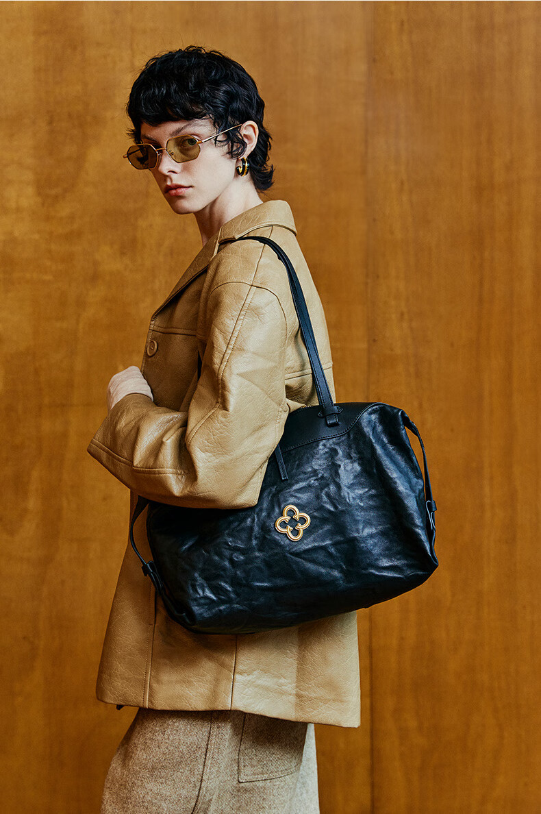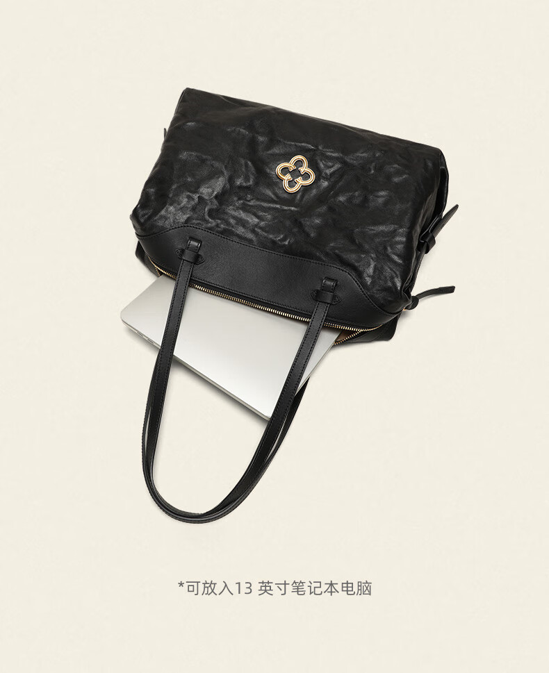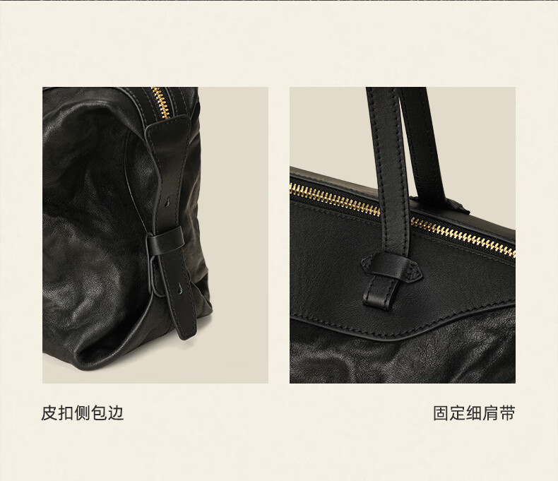 CASSILE women's handbag vegetable tanned sheepskin commuter light luxury large capacity tote bag birthday Valentine's Day gift black