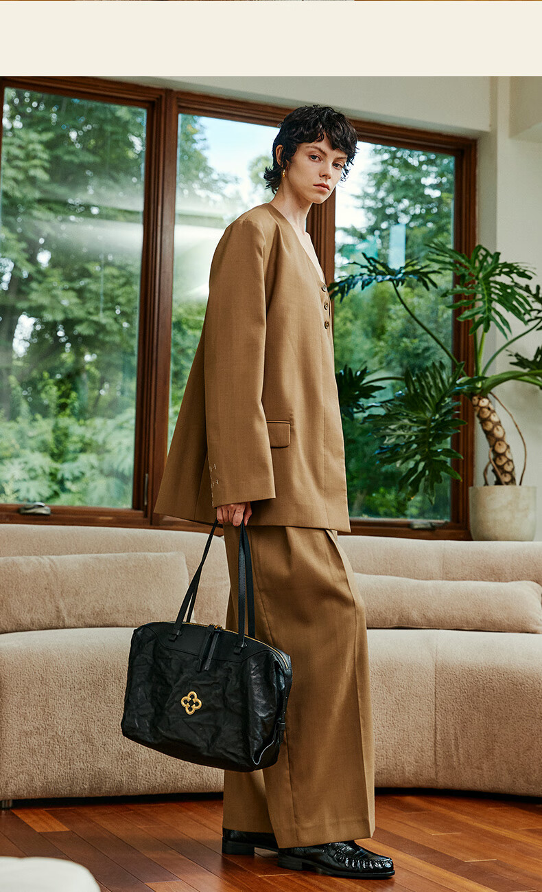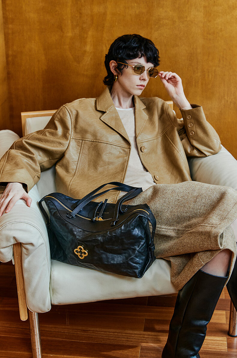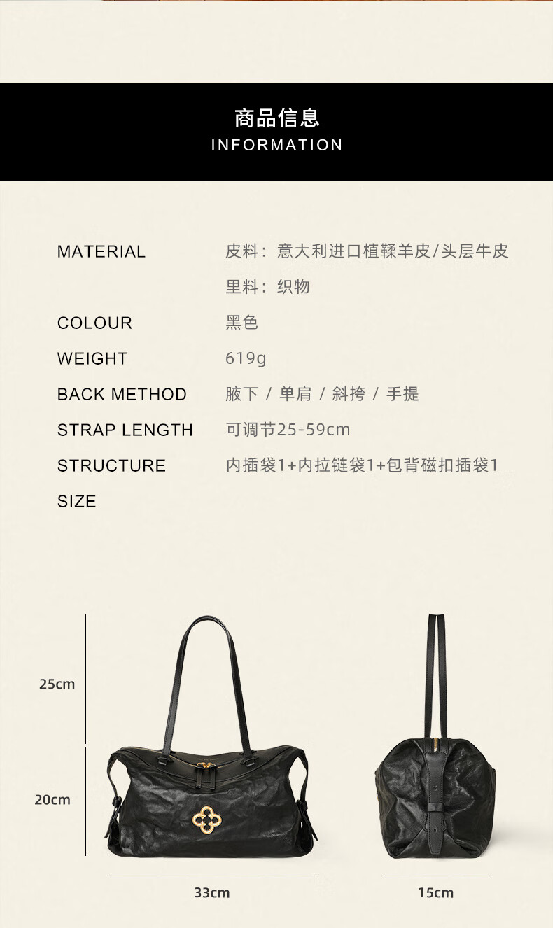 CASSILE women's handbag vegetable tanned sheepskin commuter light luxury large capacity tote bag birthday Valentine's Day gift black