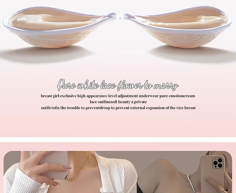 Special breast patch for wedding dress, underwear for women, thickened small breasts, gathered to make flat chest, special invisible silicone breast patch, black lace silicone breast patch, 1 pair, A cup