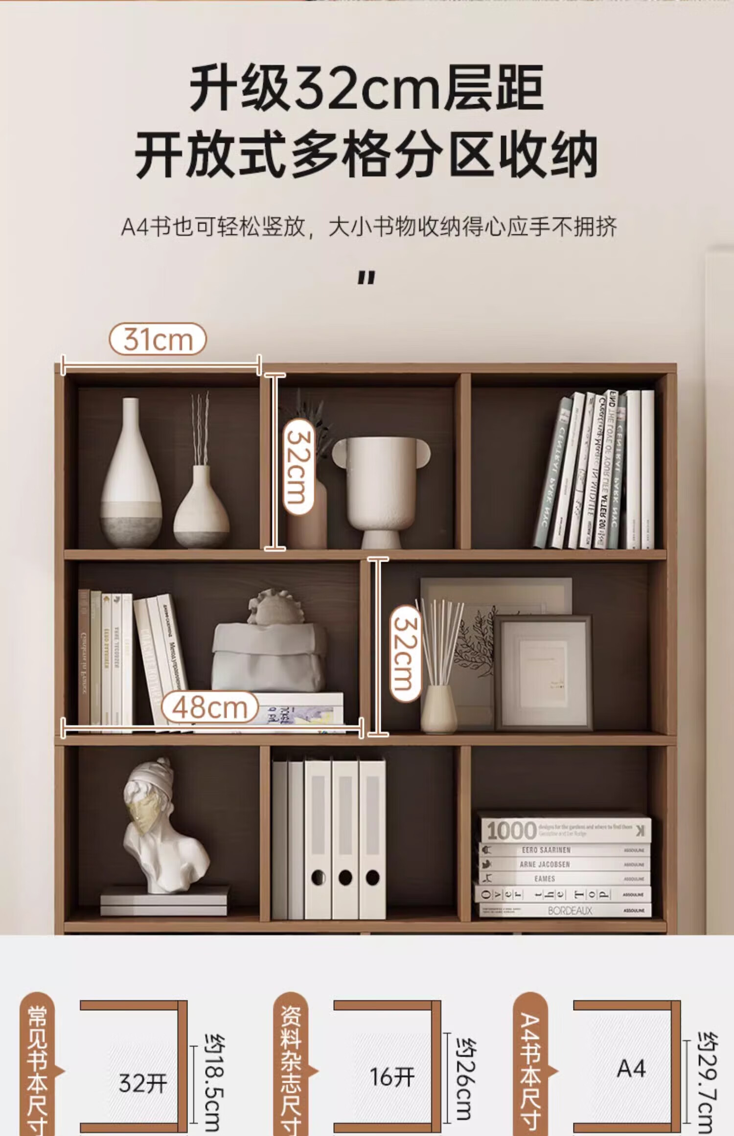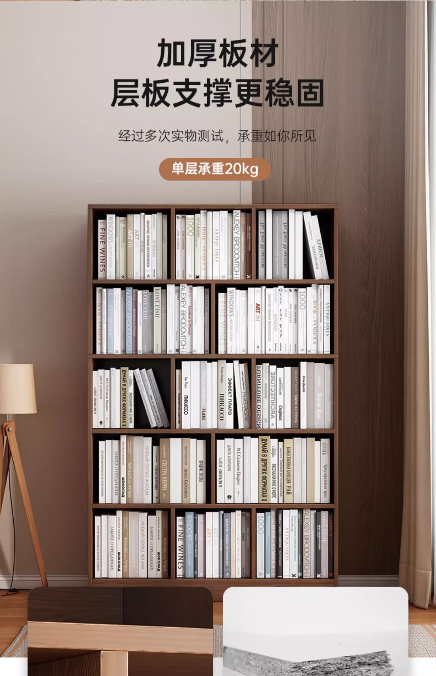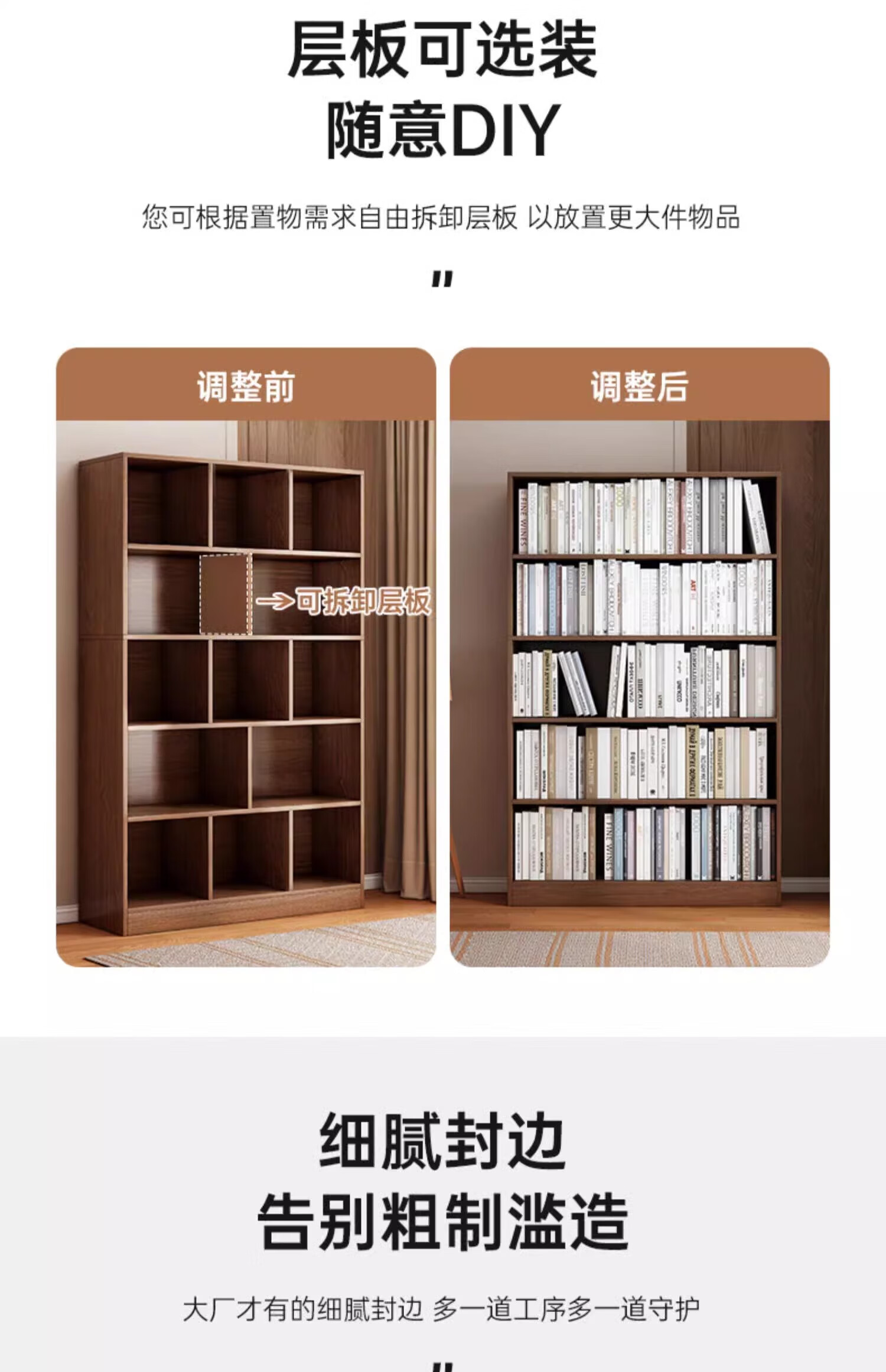 Bookshelf floor-standing whole wall cabinet solid wood color household bookcase integrated wall living room storage cabinet grid cabinet 5 layers 8 compartments wild oak color 60cm