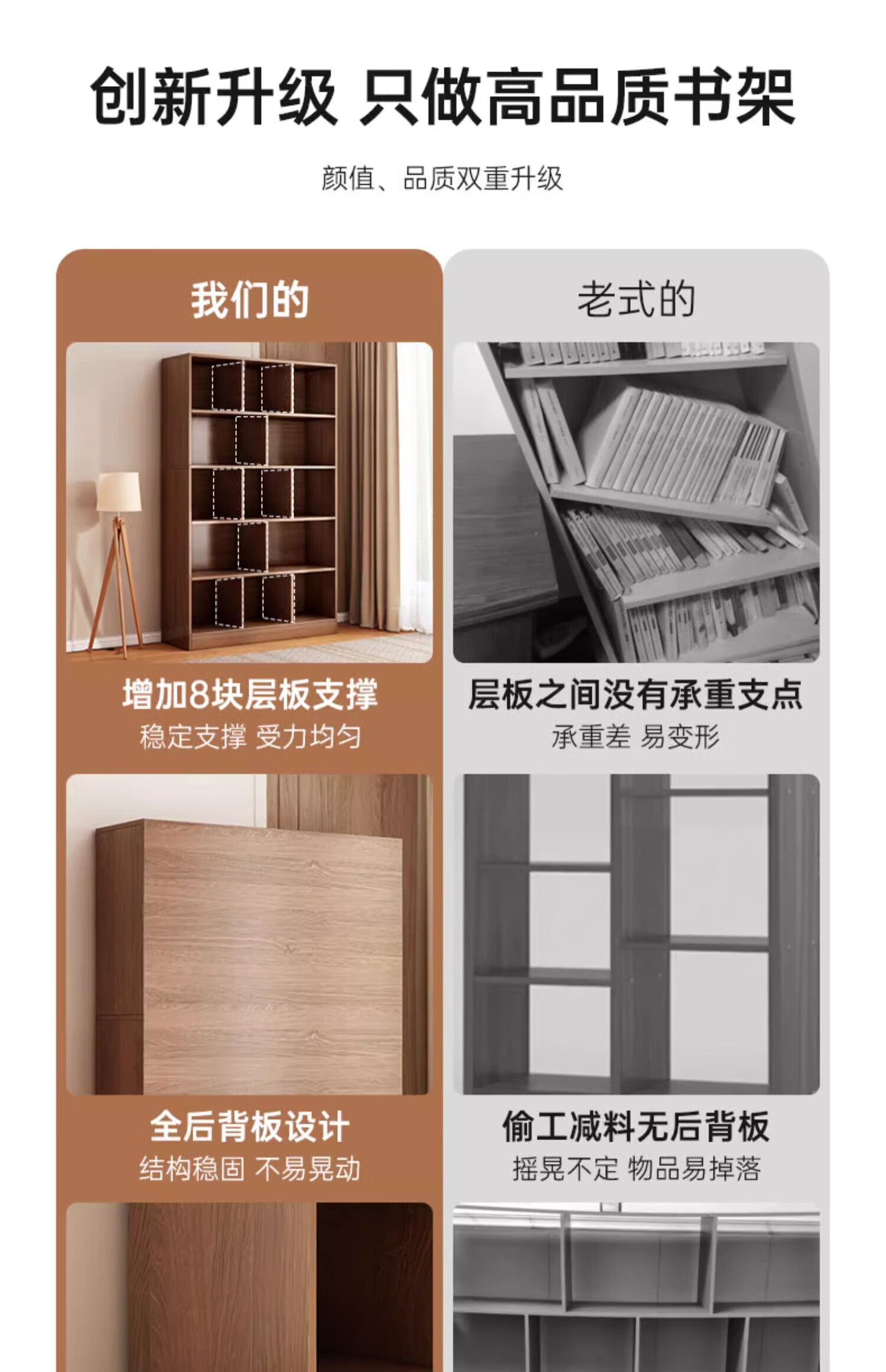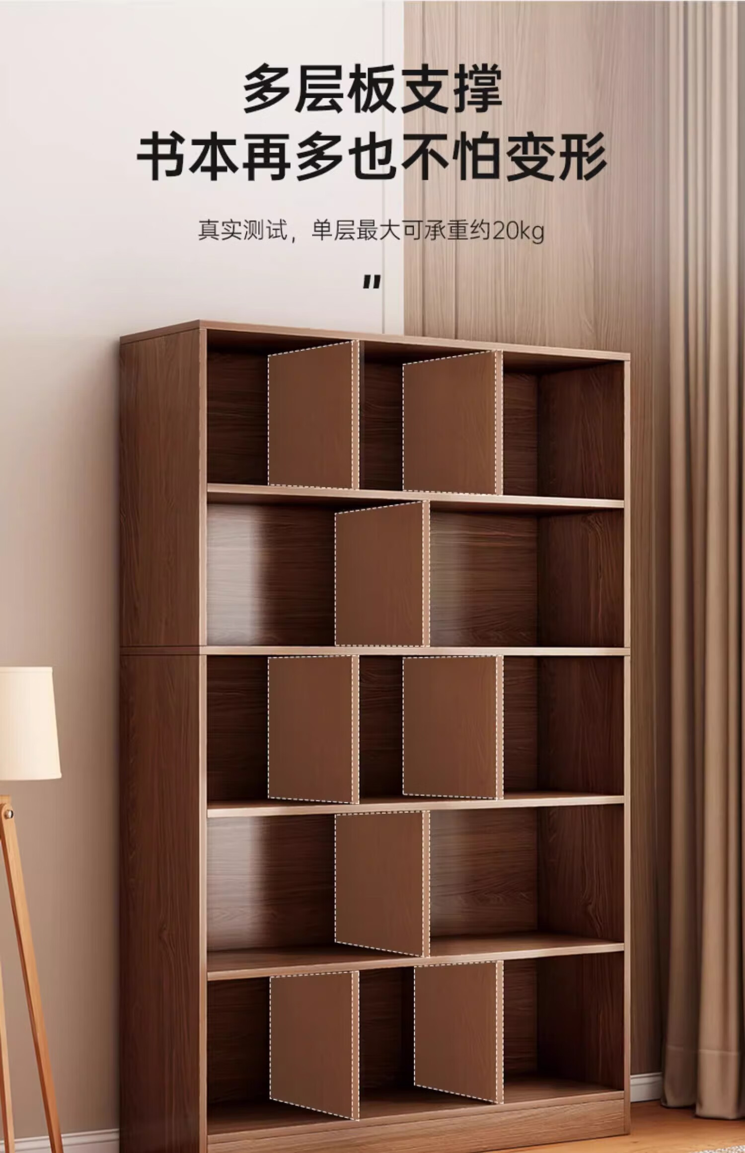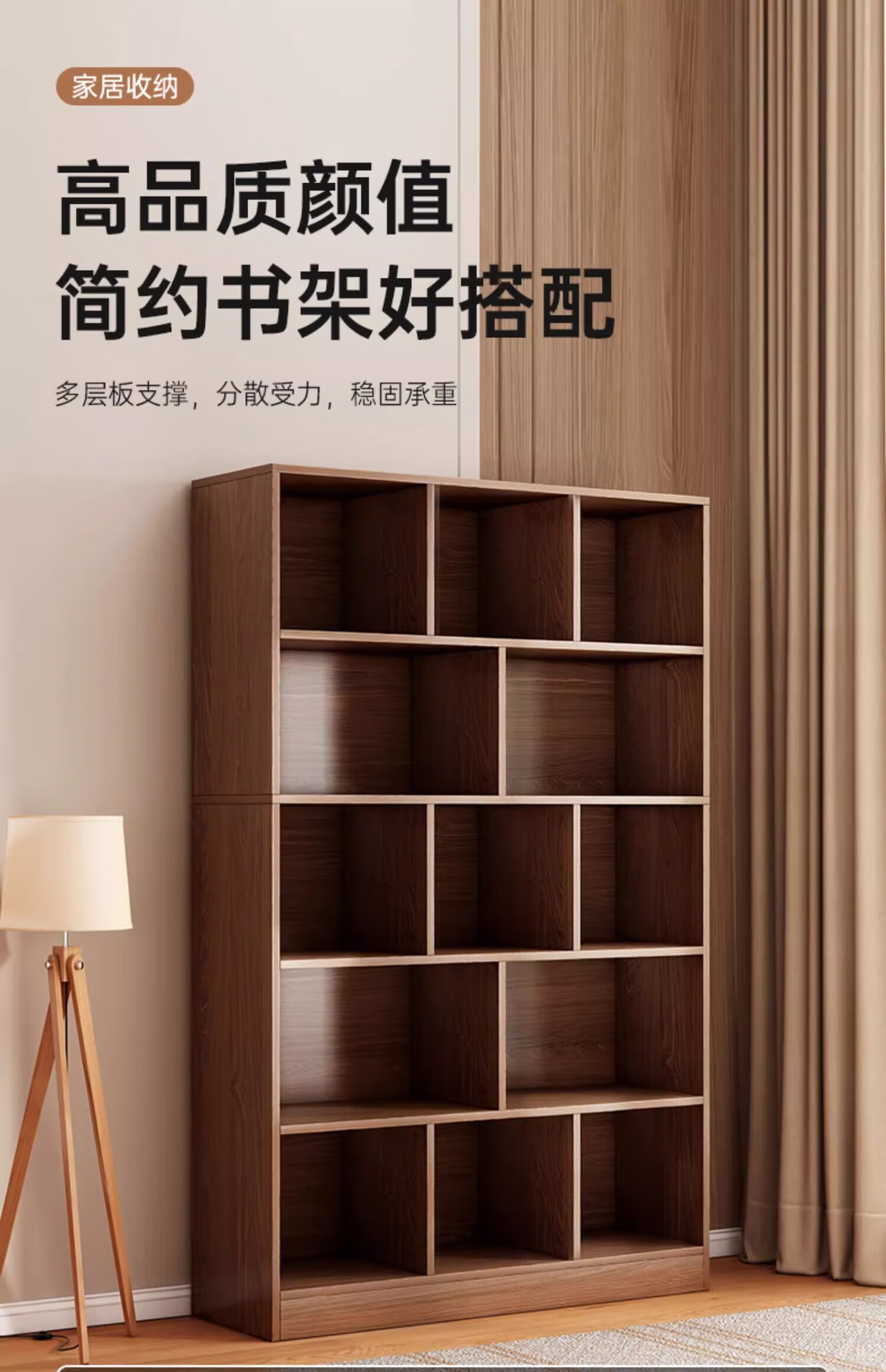 Bookshelf floor-standing whole wall cabinet solid wood color household bookcase integrated wall living room storage cabinet grid cabinet 5 layers 8 compartments wild oak color 60cm