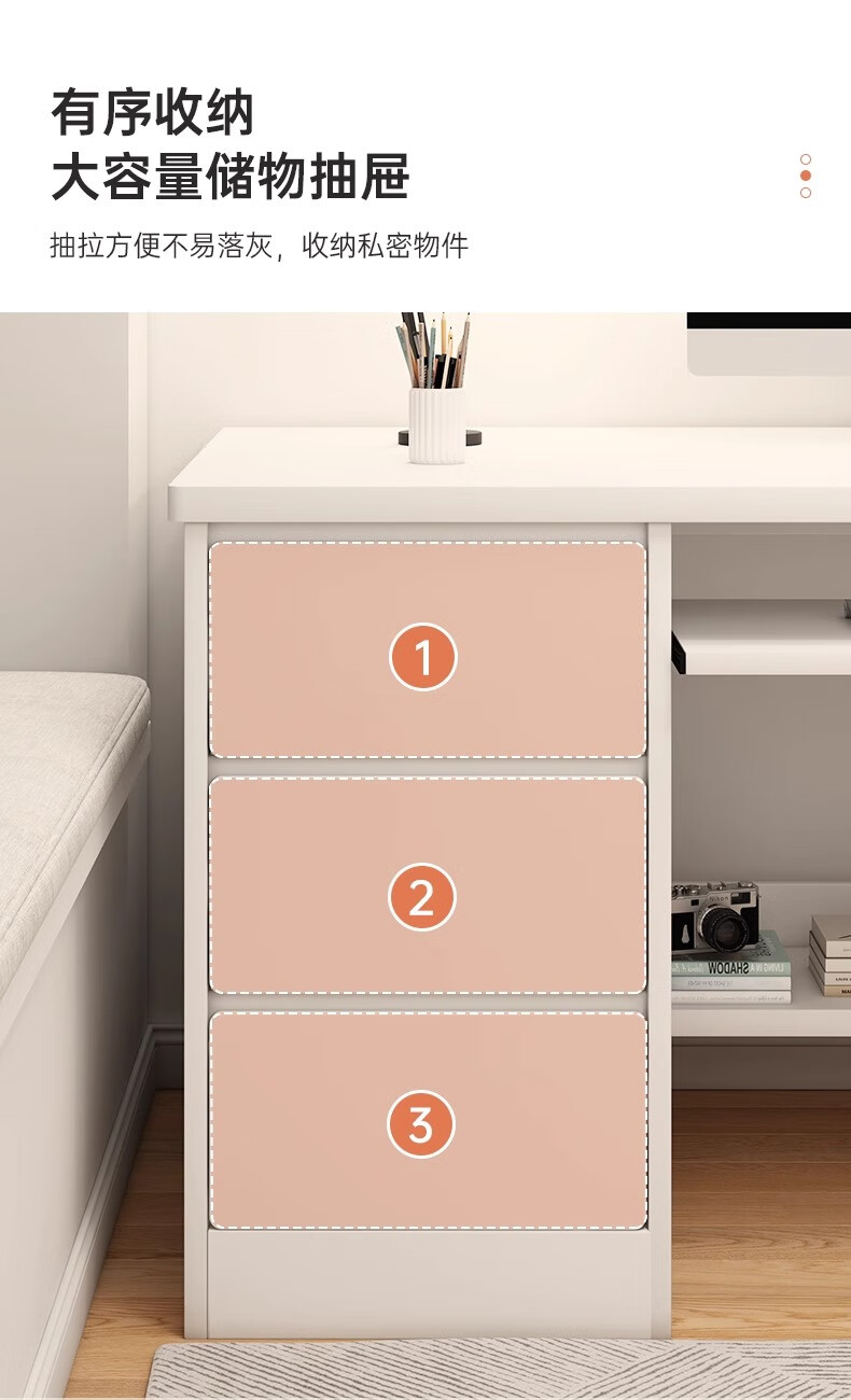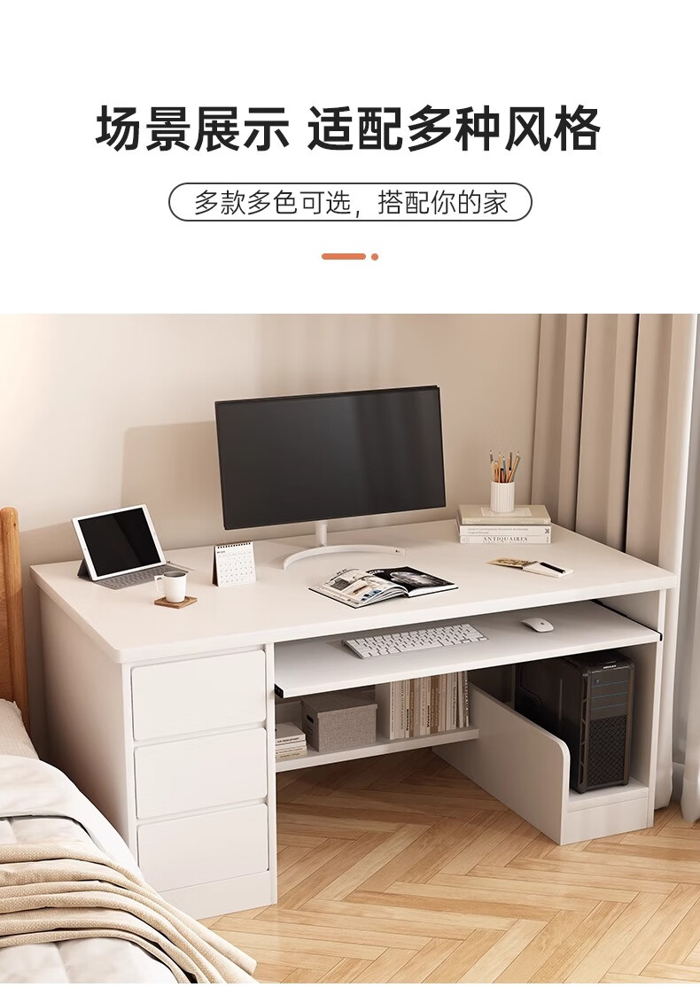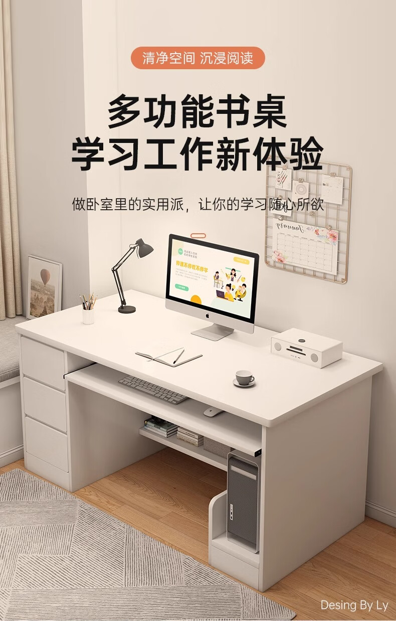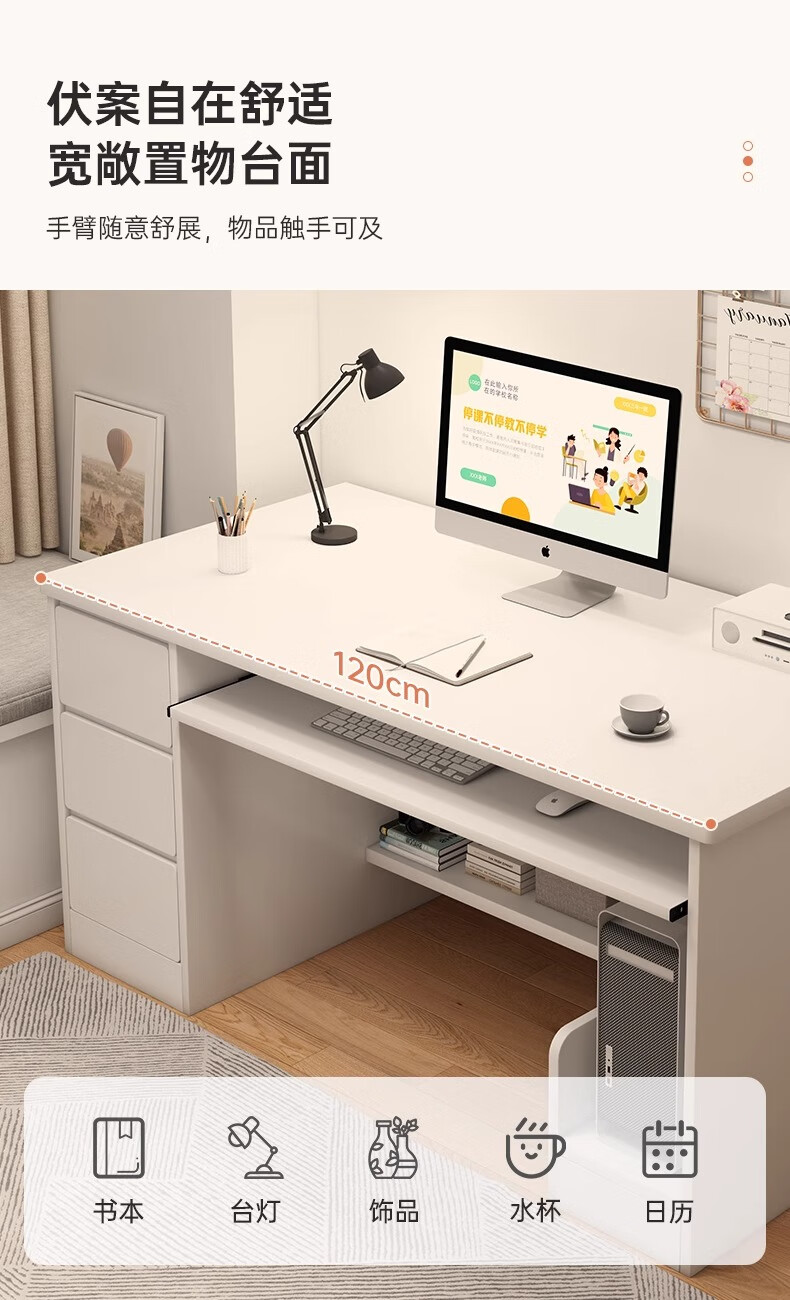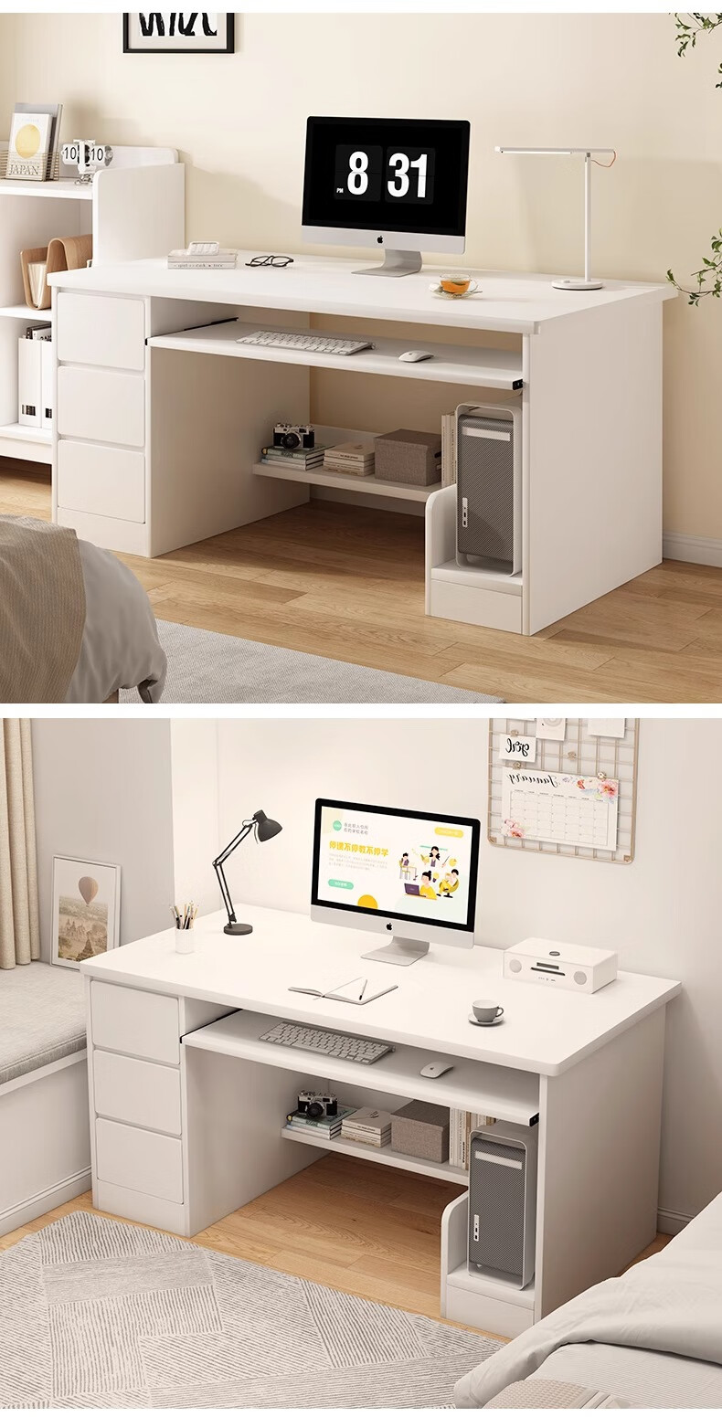 Desk student home computer desk bedroom study desk writing desk rental house simple bedside table with drawer table three drawer main unit 120cm warm white