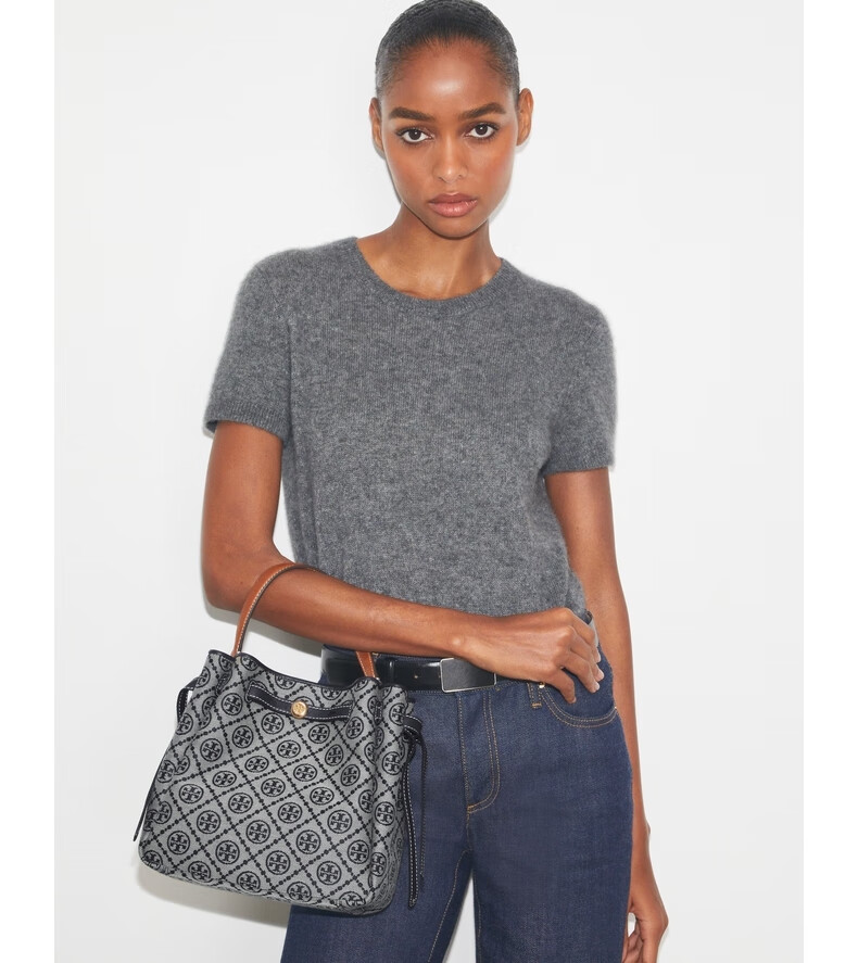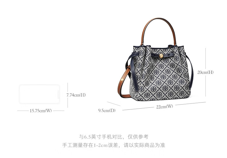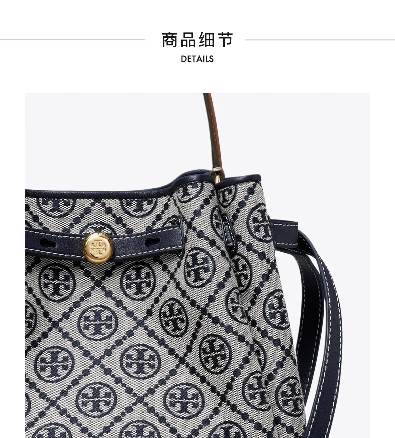 Tory Burch New Year's gift ROMY T MONOGRAM crossbody bucket bag TB 178016 Tory navy blue 405 OS OS