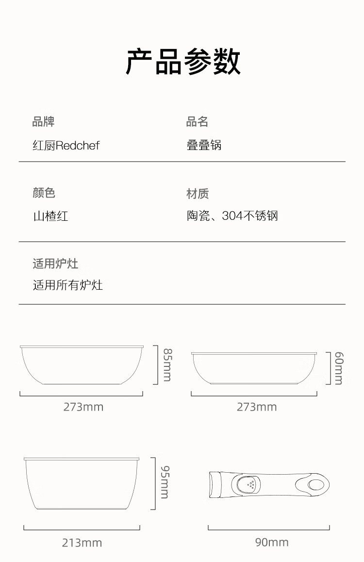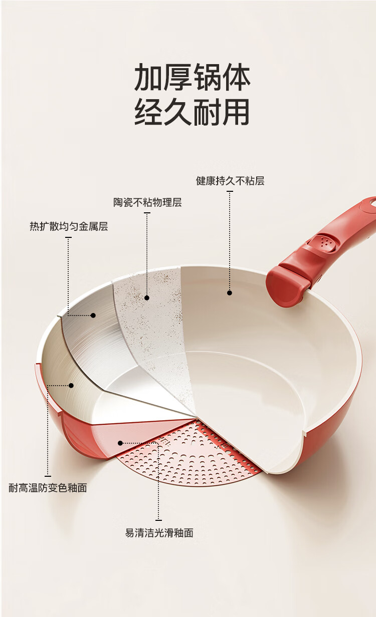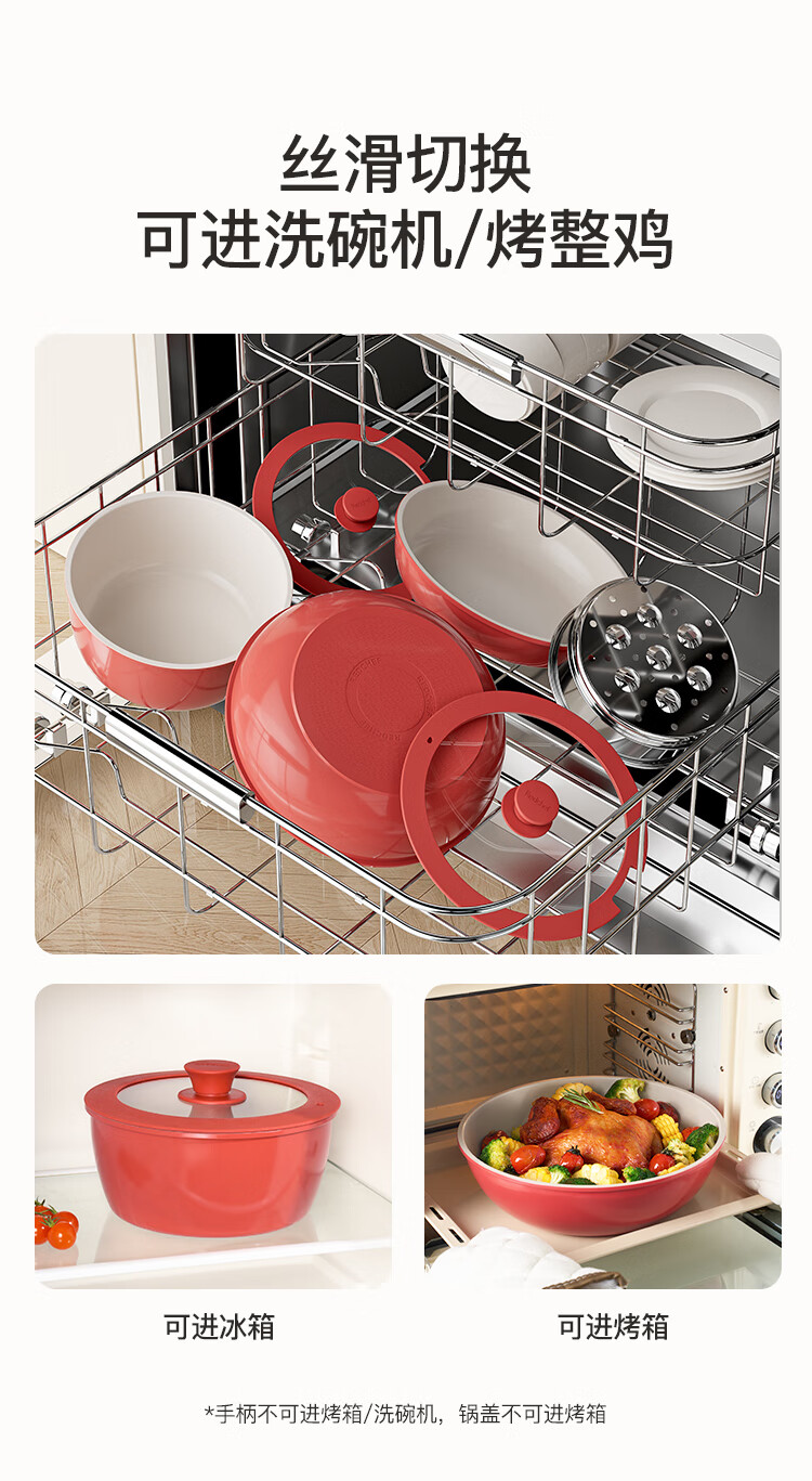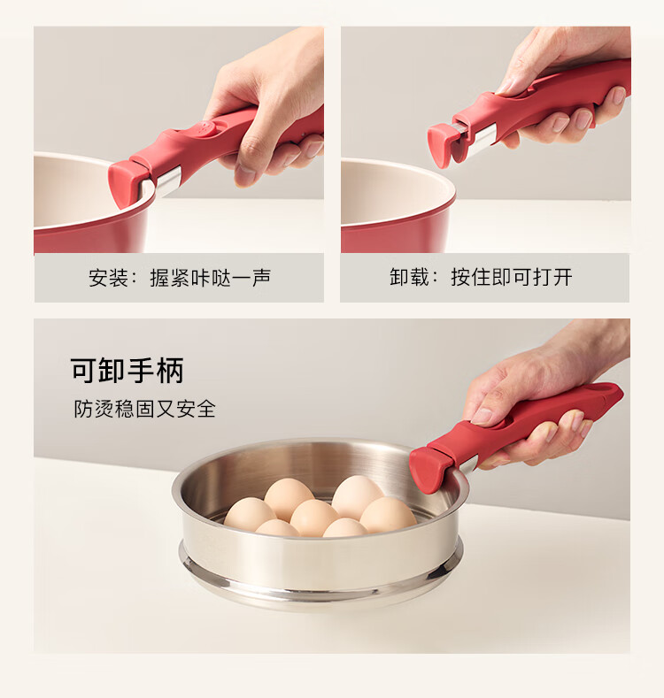 Hongchu ceramic removable handle pot household pot set non-stick pot full set soup milk pot wok frying pan gas universal wok + frying pan + milk pot red 7-piece set