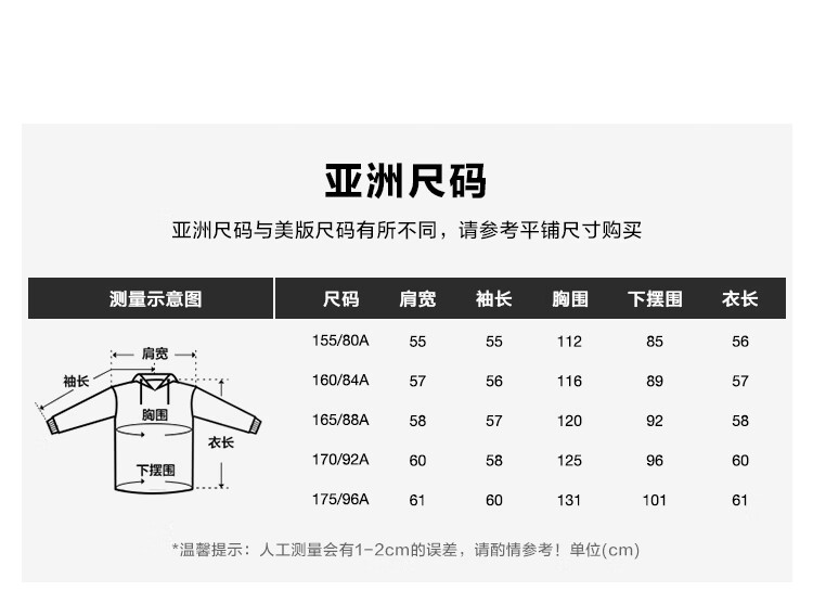 China (cm) 160-165/84-86 165-170 / 88-90 167-172 / 92-96 168-173 / 98-102 170-176 / 106-110