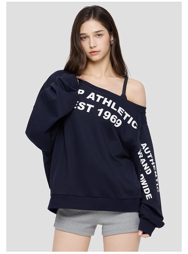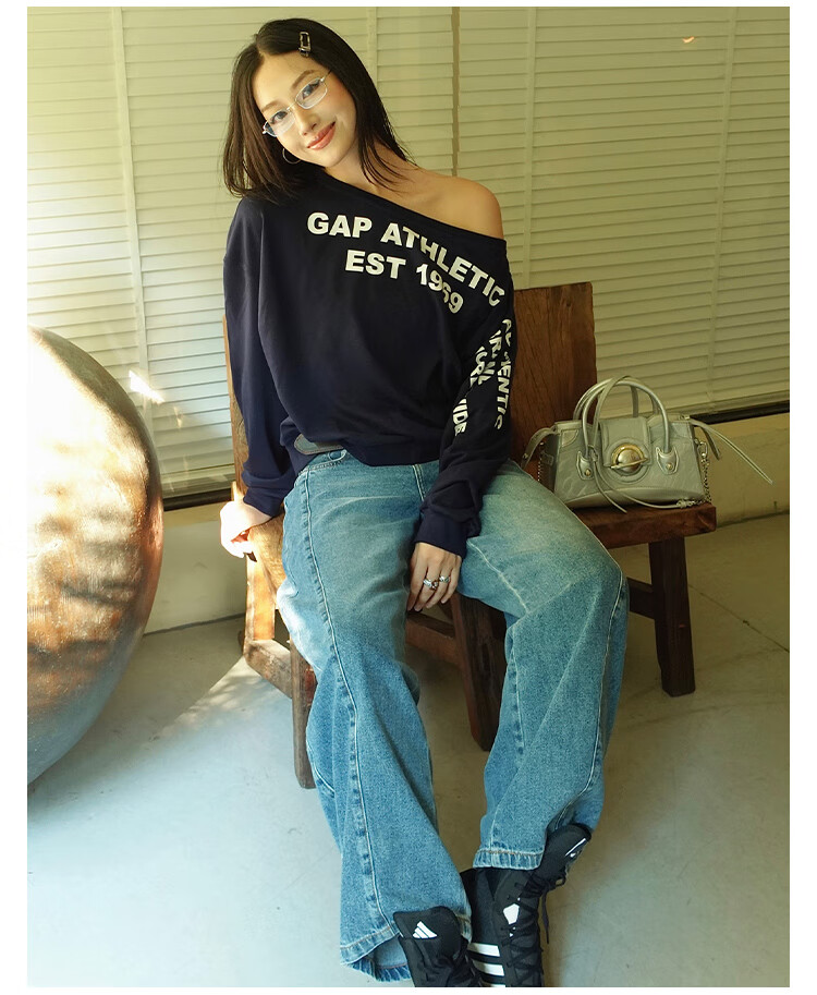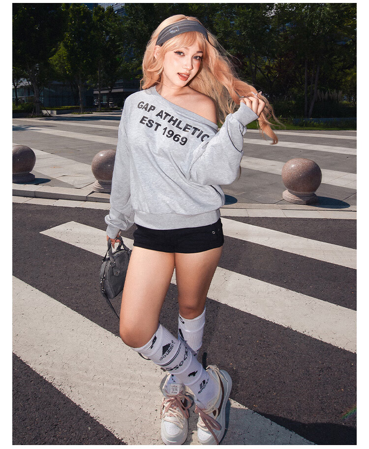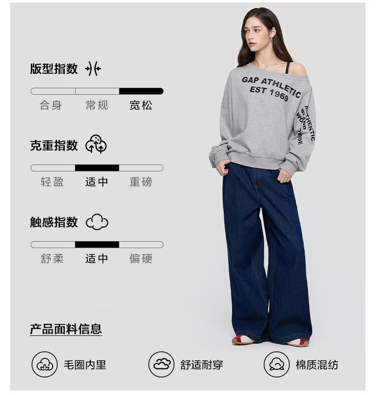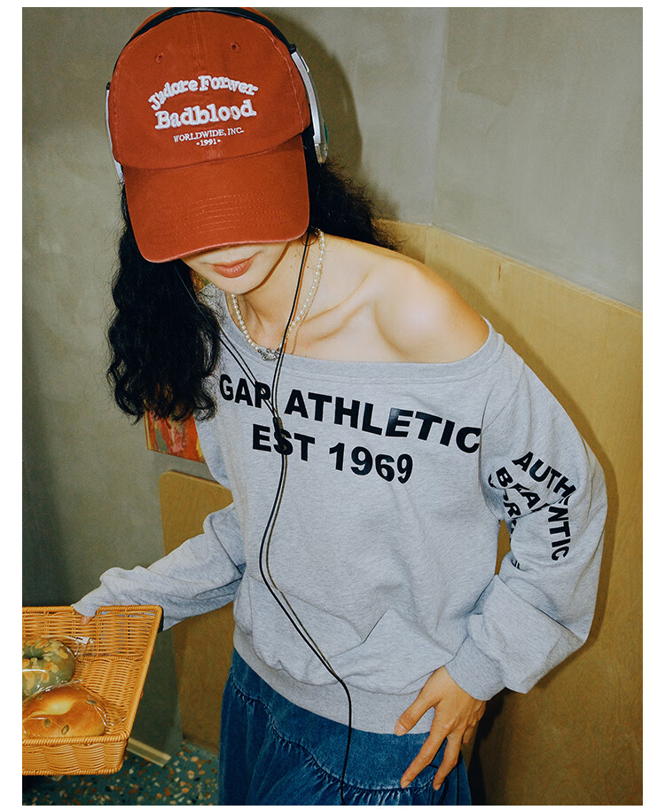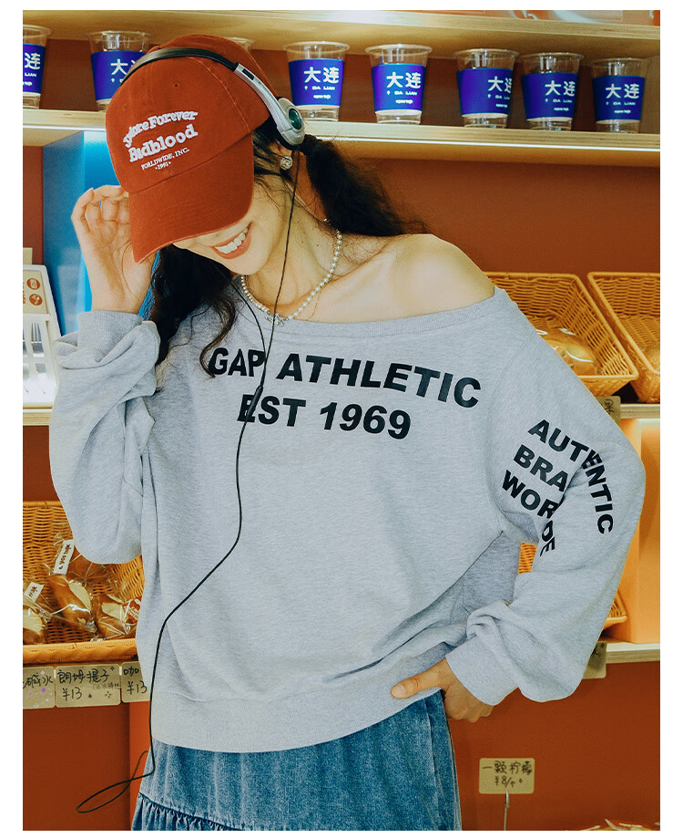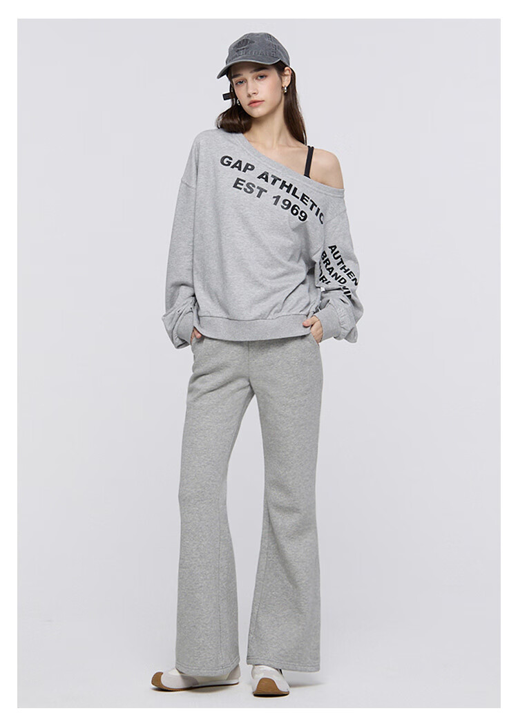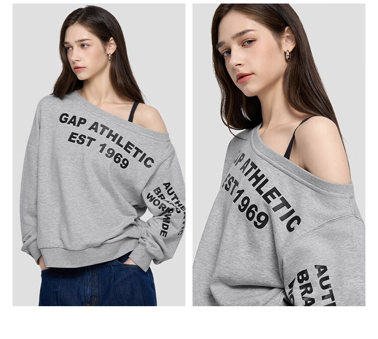 GAP Women's 2025 Autumn New Logo Offset Loose Terry Cloth Off-Shoulder Sweatshirt Casual Top 829367 Light Gray M (165/88A) Asian Size