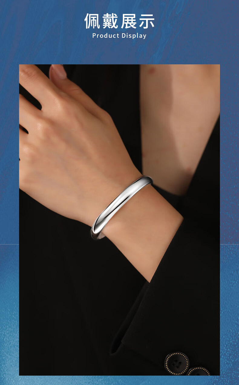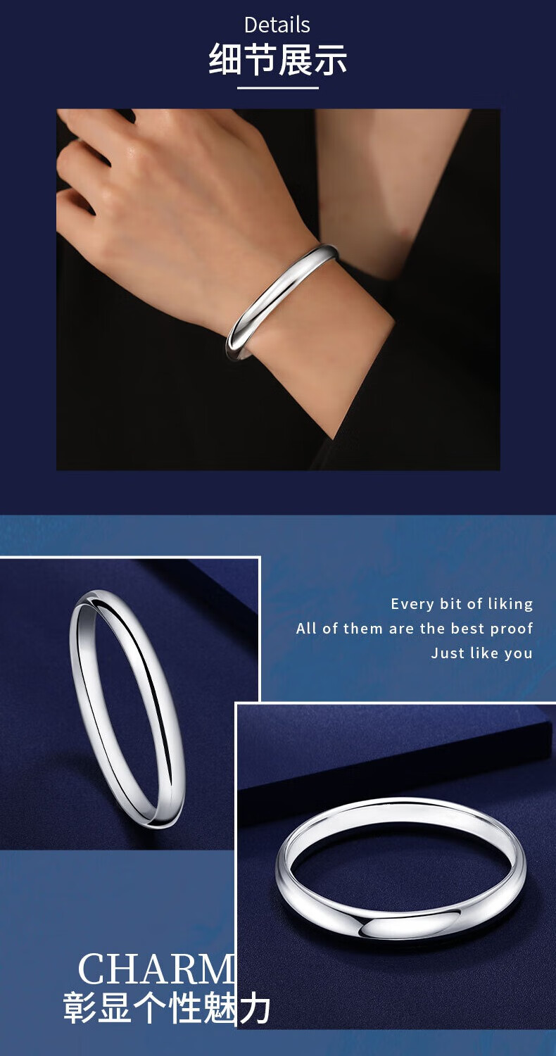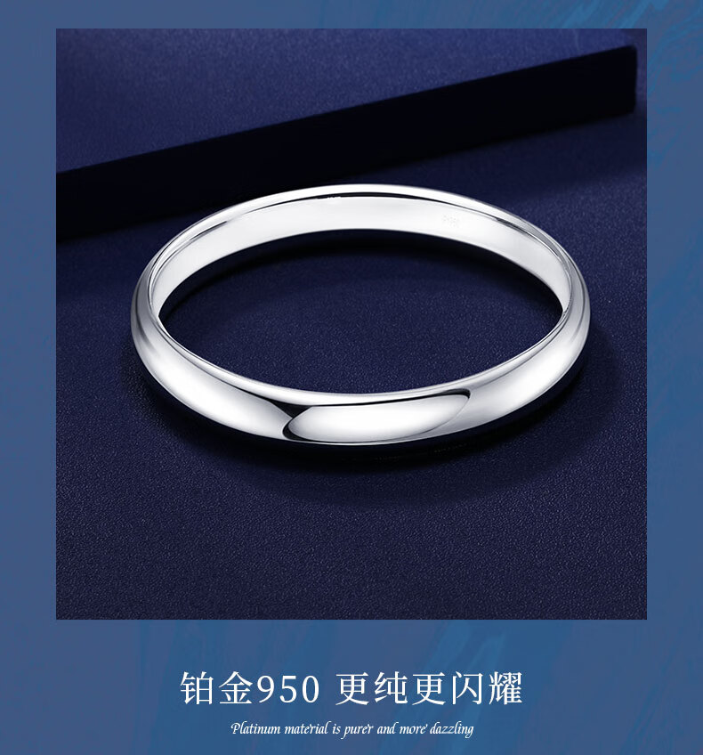 Shengshi Qiyuan platinum bracelet for women pt950 pure platinum bracelet platinum bracelet glossy loach back bracelet semi-solid round spot inner diameter 54mm weight 23.04g thick about 7mm