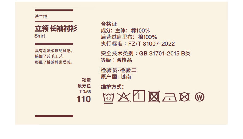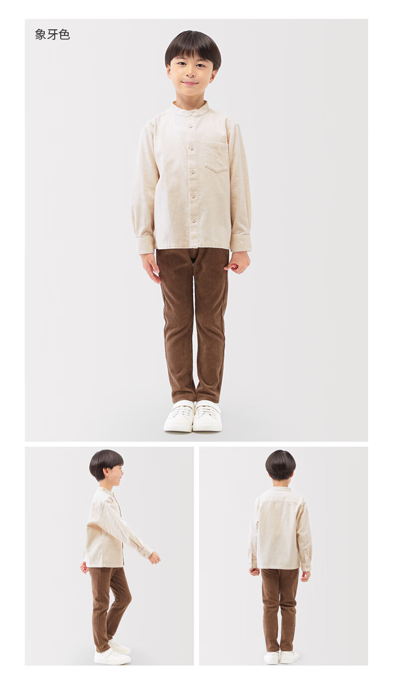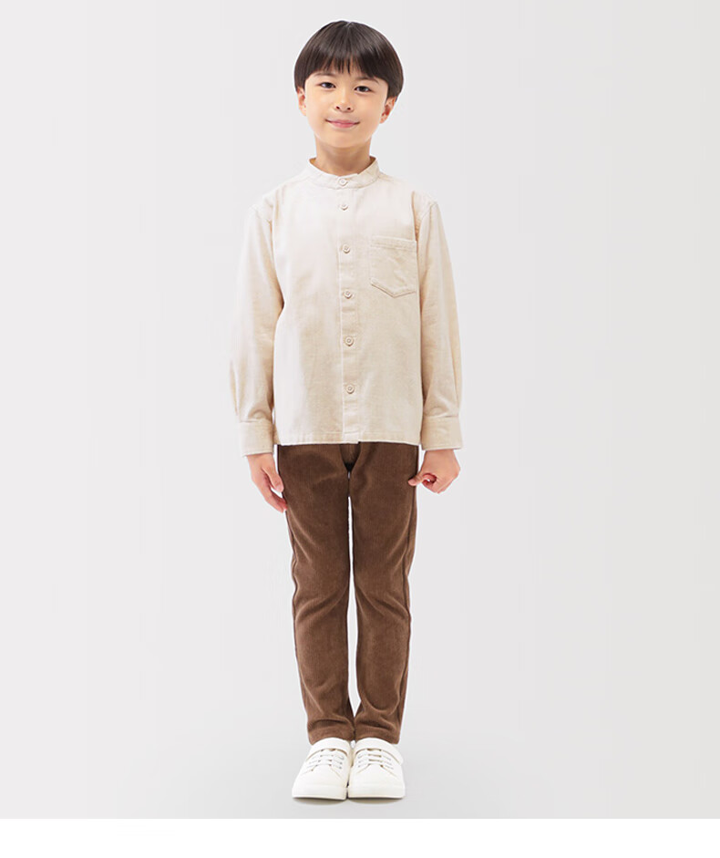 MUJI big children's flannel stand-up collar long-sleeved shirt children's shirt boys and girls children's clothing 25 years winter ivory 150 /76A