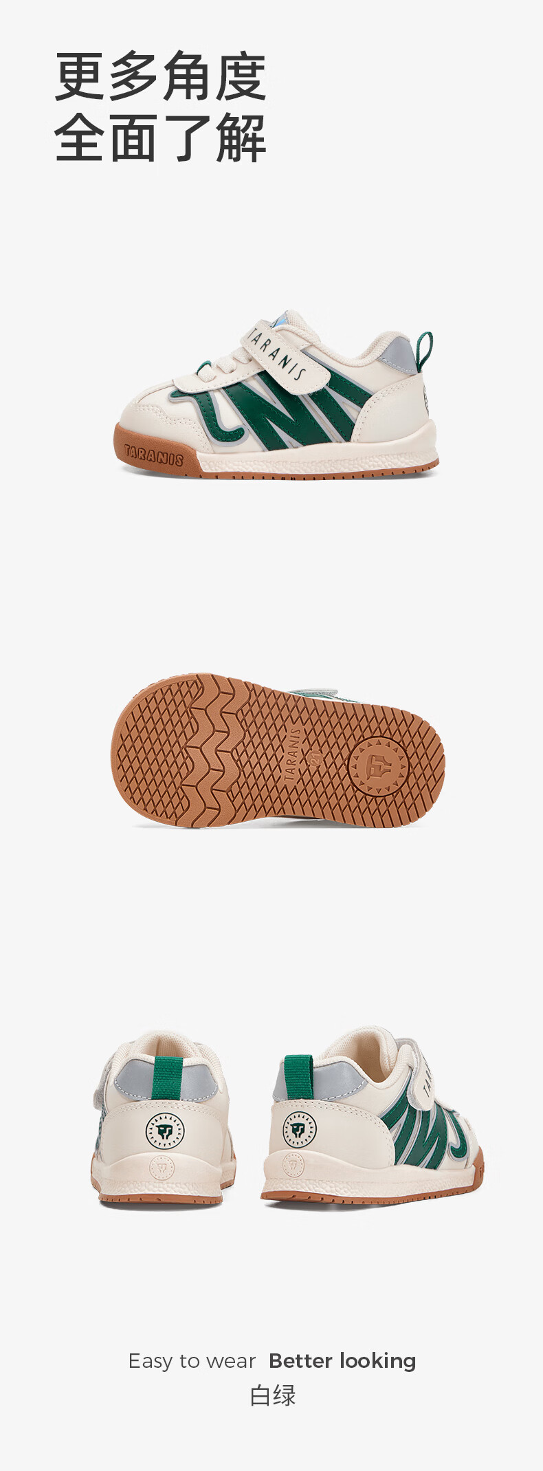 Terranis Autumn and Winter Baby Toddler Shoes Mesh Breathable Anti-Kick and Anti-Slip Bread Shoes 1-3 Years Old Male and Female Baby Functional Children's Shoes White/Green Autumn Microfiber 23 Inner Shoe Length 15.0cm Suitable for Foot Length 14.0