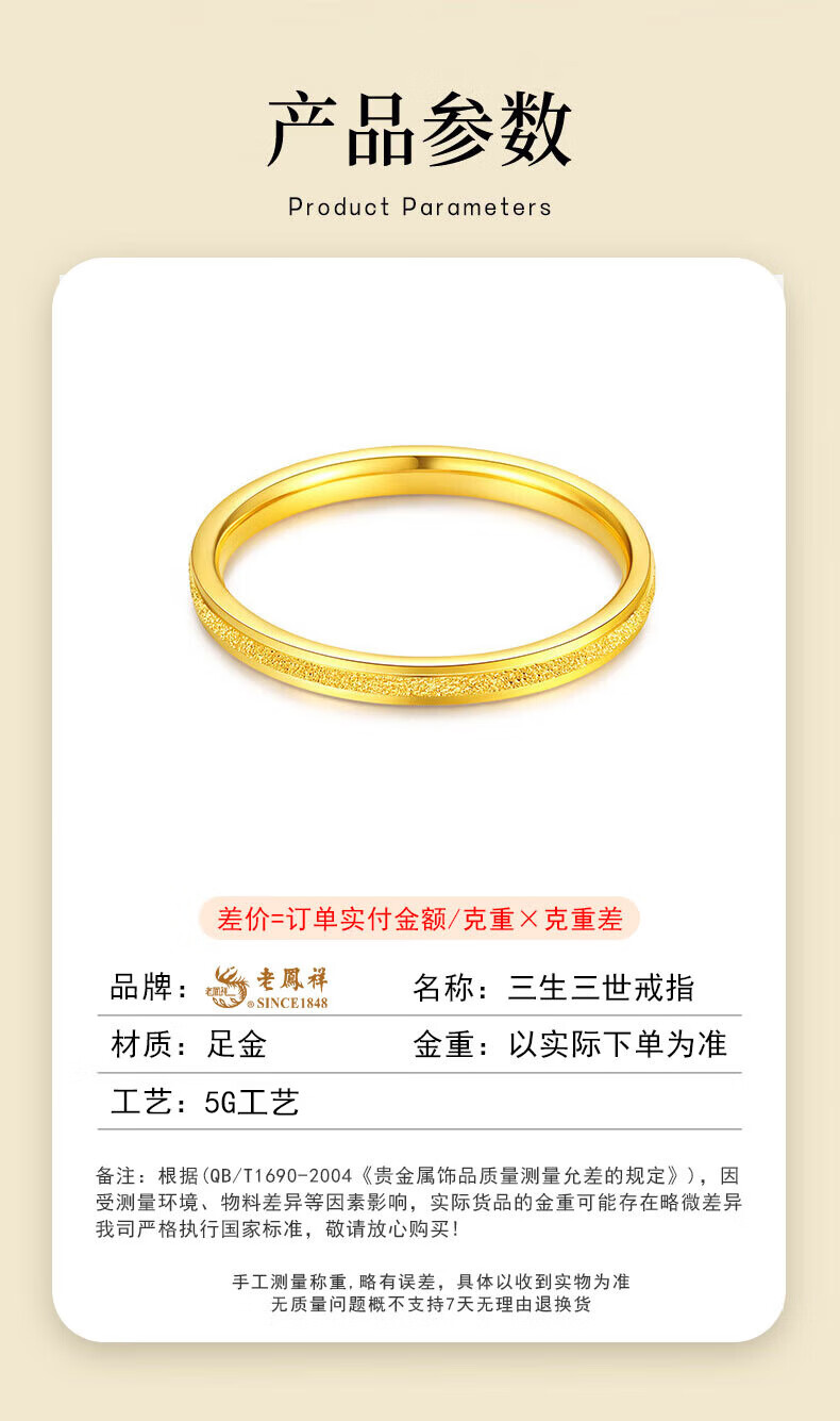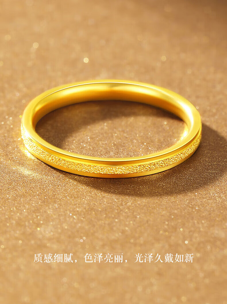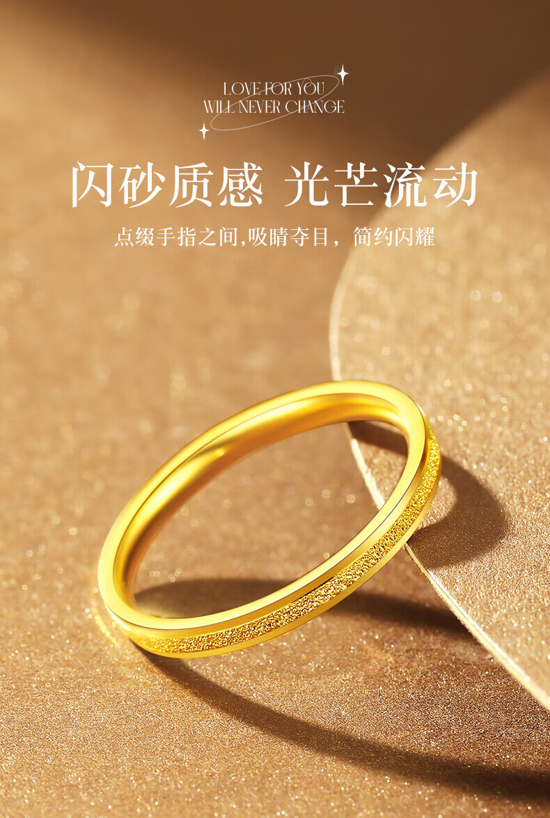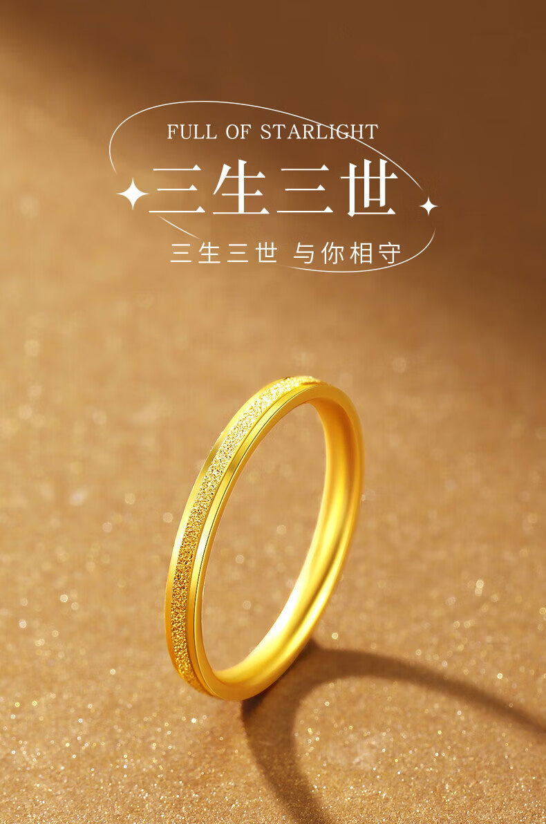 Lao Fengxiang gold three lives and three generations frosted ring for men and women, solid gold ring ring jewelry, Valentine's Day birthday gift for girlfriend, frosted plain ring, narrow version, ring number 16, about 1g