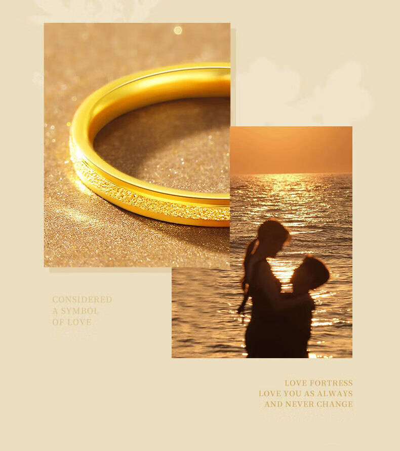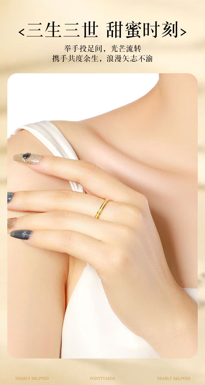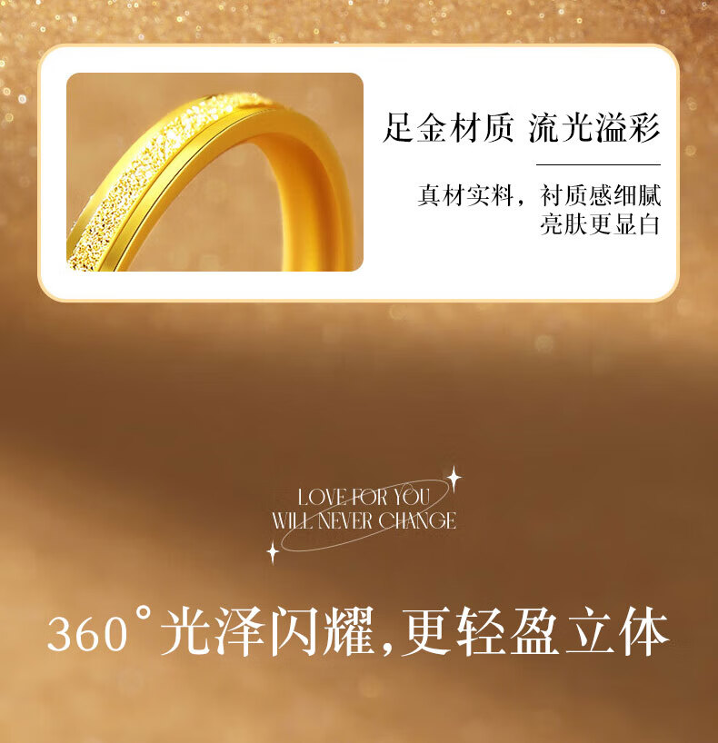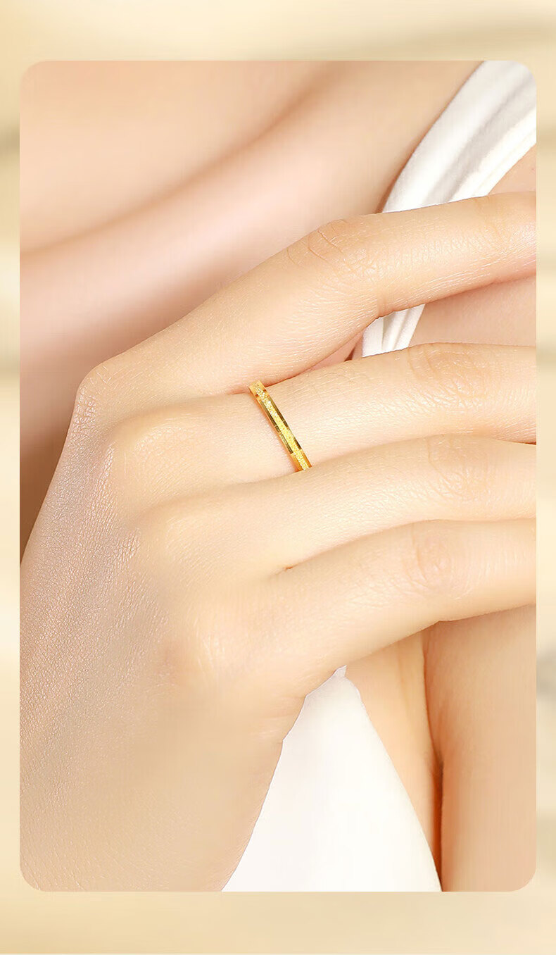 Lao Fengxiang gold three lives and three generations frosted ring for men and women, solid gold ring ring jewelry, Valentine's Day birthday gift for girlfriend, frosted plain ring, narrow version, ring number 16, about 1g